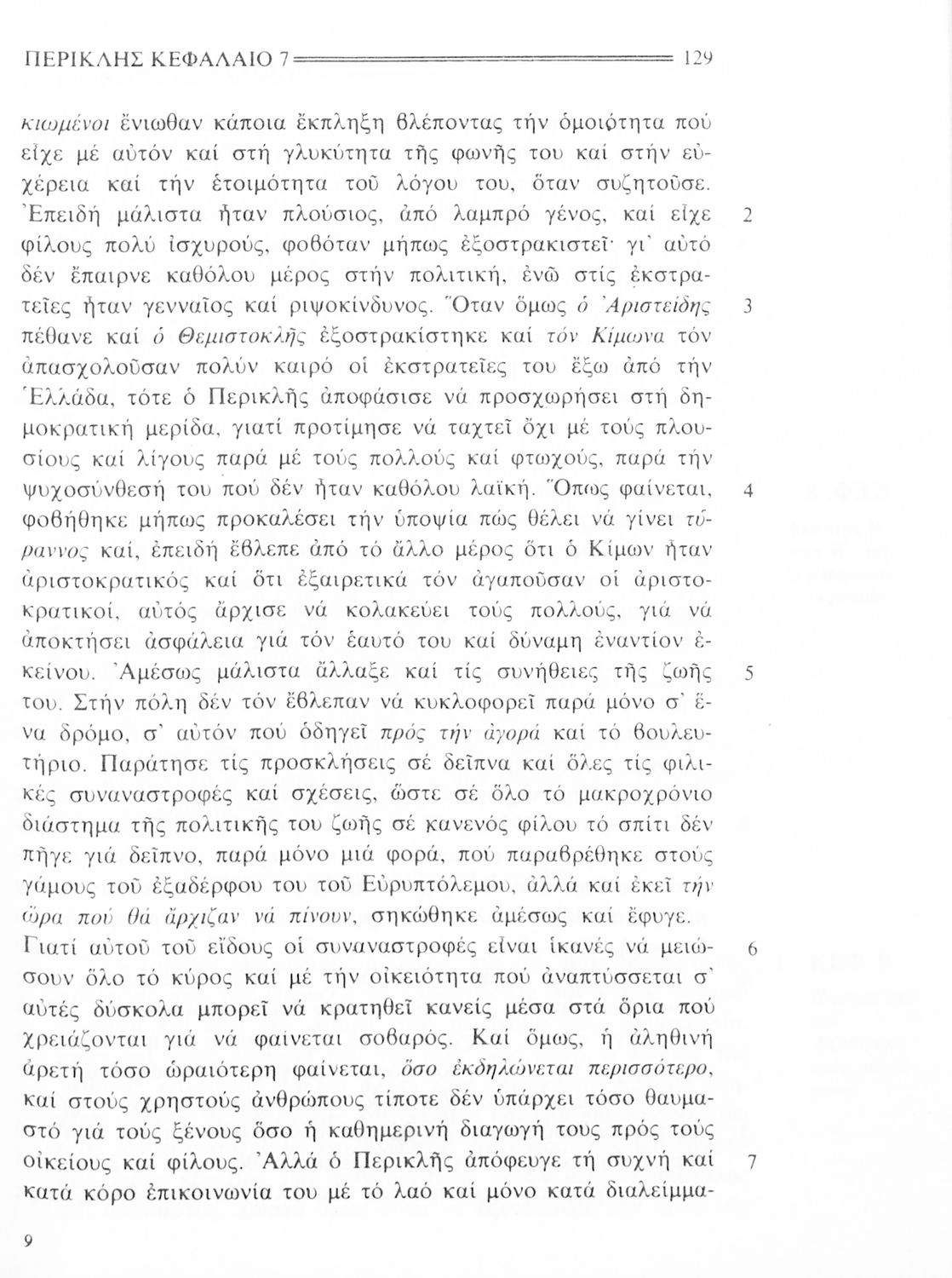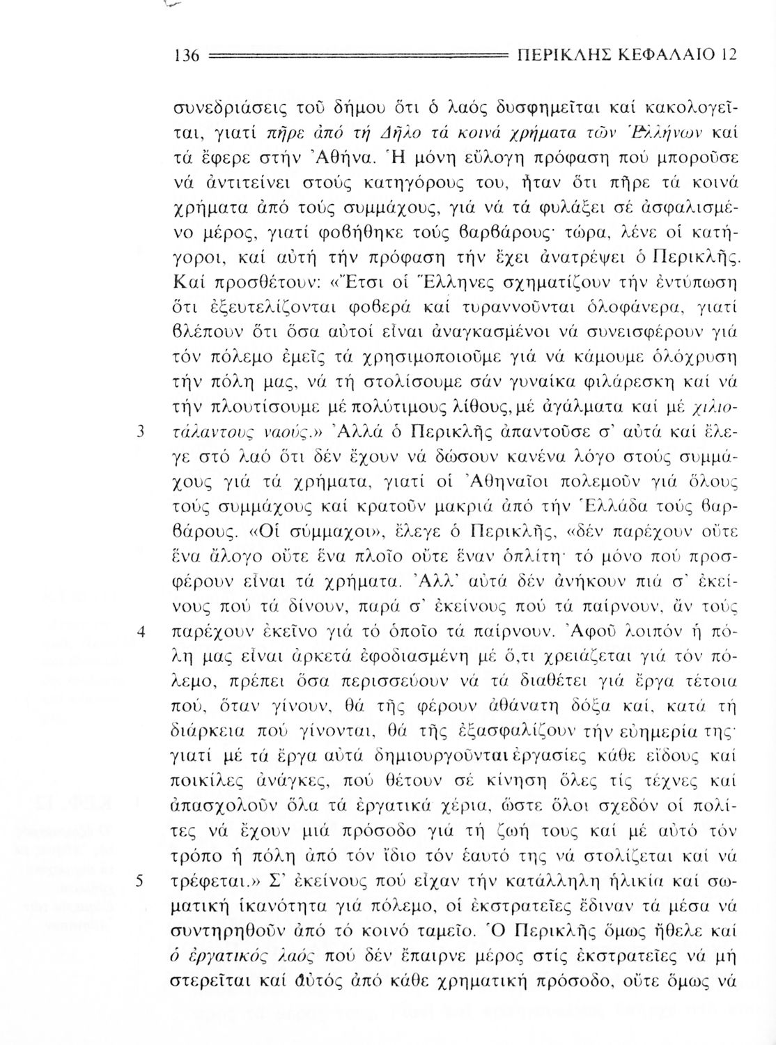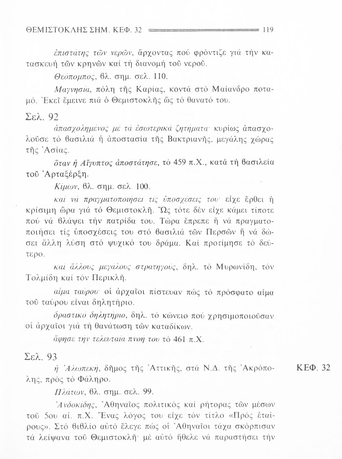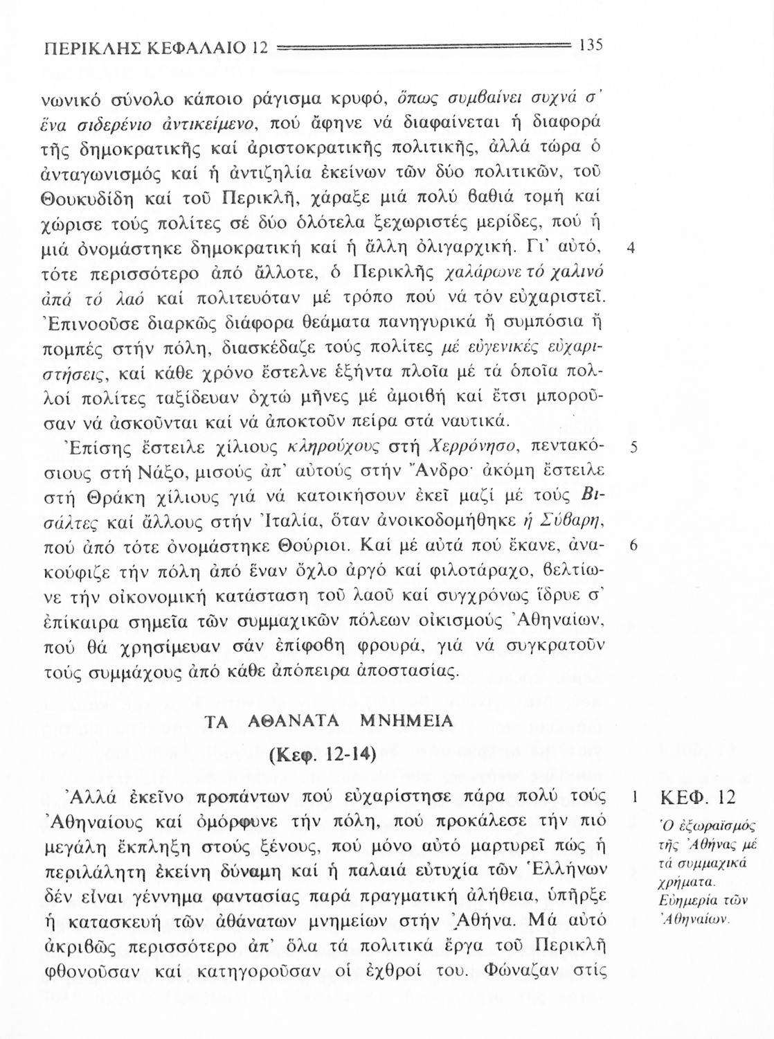 Σχολικό εγχειρίδιο Αρχαίων Ελληνικών Β΄ Γυμνασίου που περιέχει μετάφραση του έργο του Πλούταρχου Θεμιστοκλής και Περικλής, εισαγωγή και ερμηνευτικά σχόλια.