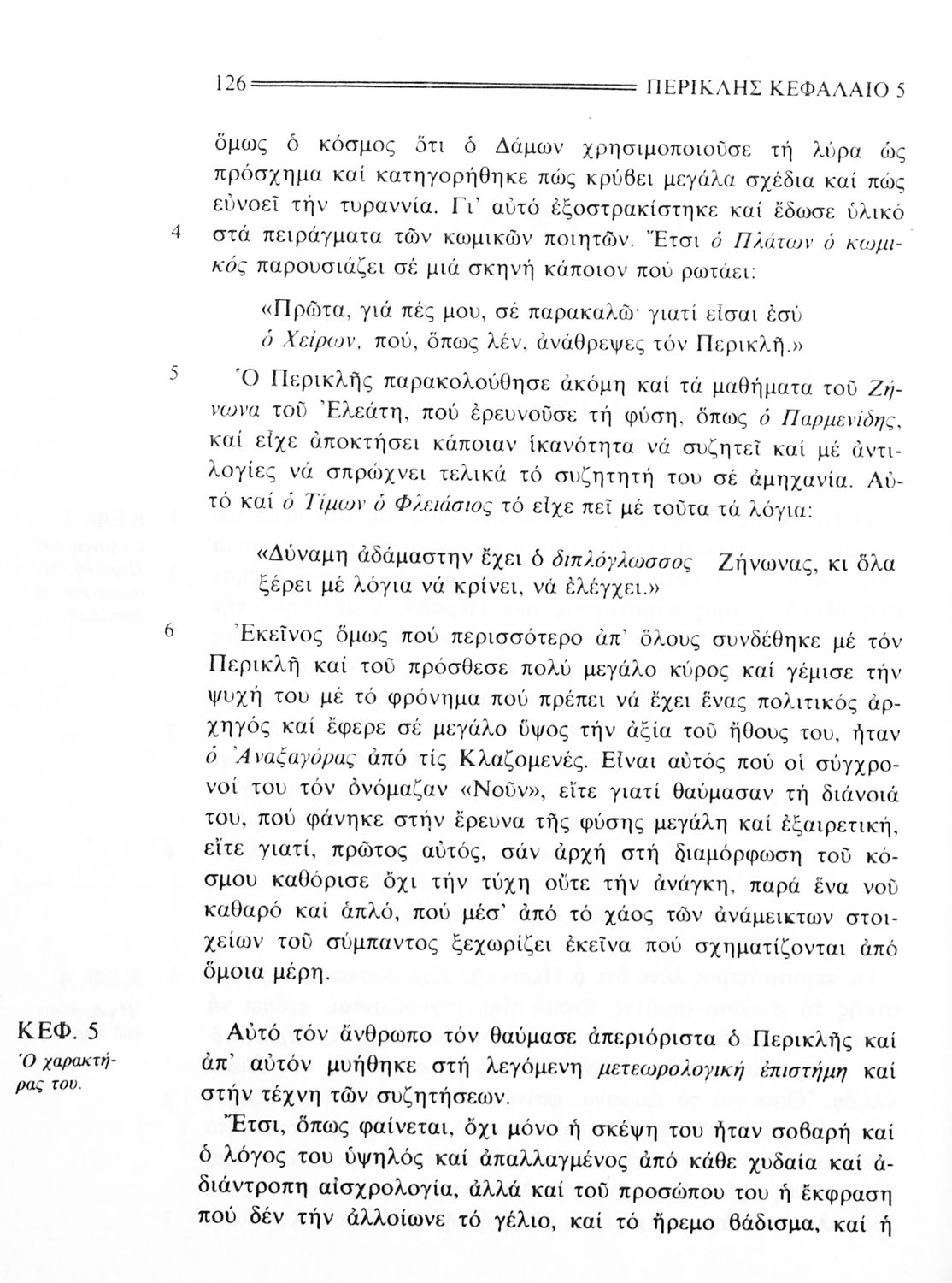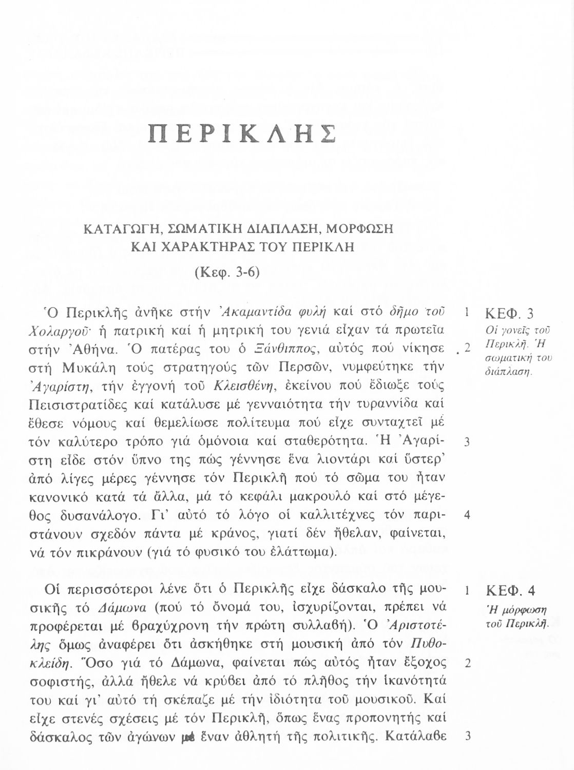 Σχολικό εγχειρίδιο Αρχαίων Ελληνικών της Β΄ Γυμνασίου το οποίο περιέχει το έργο του Πλούταρχου 'Βίοι' όπου παρουσιάζει τους βίους επιφανών ανδρών της αρχαιότητας του Σόλωνα, του Θεμιστοκλή, του Περικλή και του