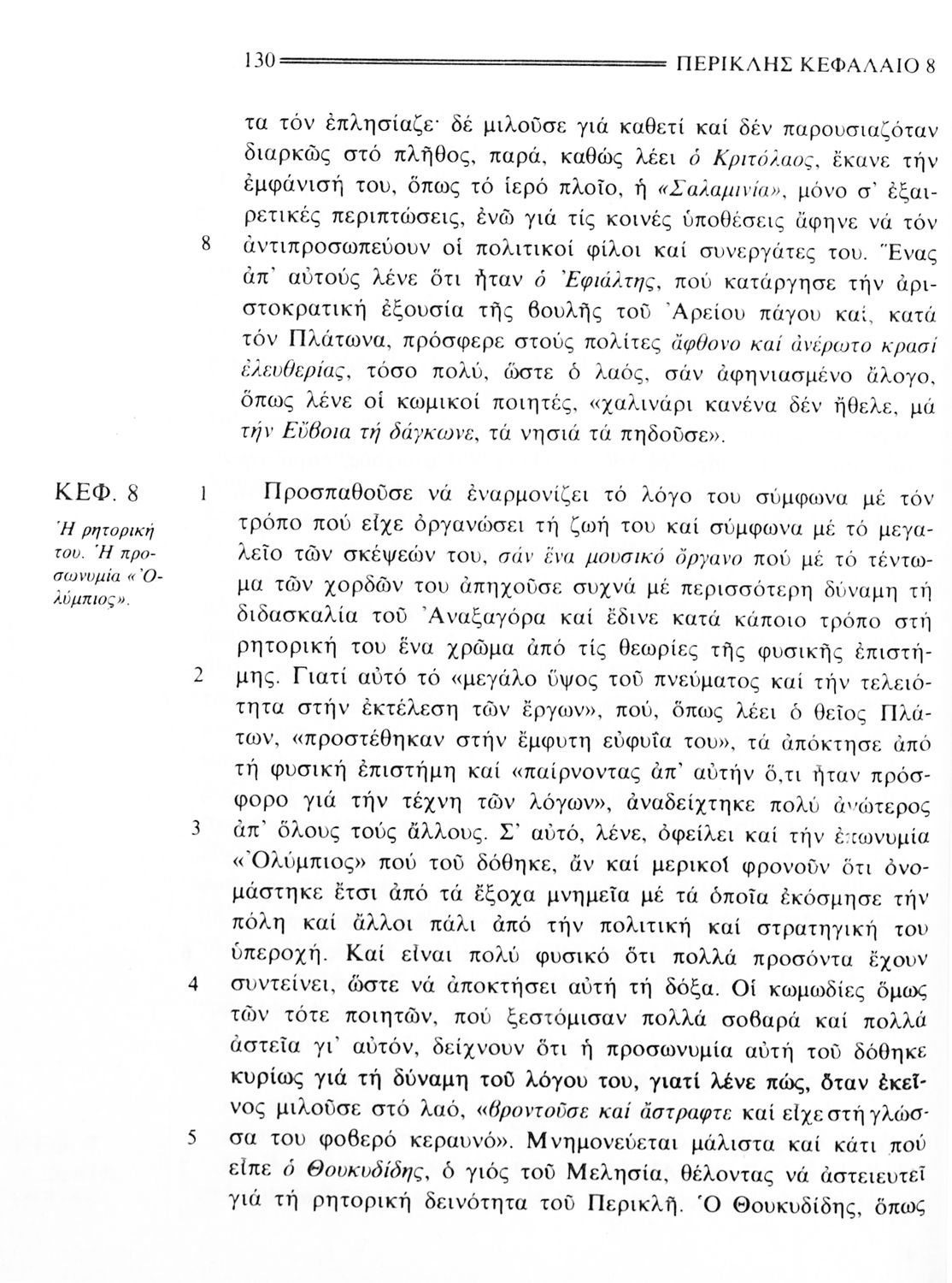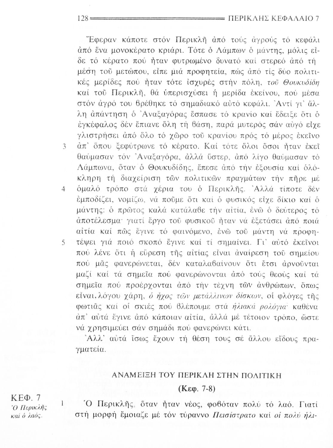 Σχολικό εγχειρίδιο Αρχαίων Ελληνικών της Β' Γυμνασίου. Το βιβλίο περιλαμβάνει τέσσερις από τους “Βίους” του Πλούταρχου: του Σόλωνα, του Θεμιστοκλή, του Περικλή και του Φωκίωνα