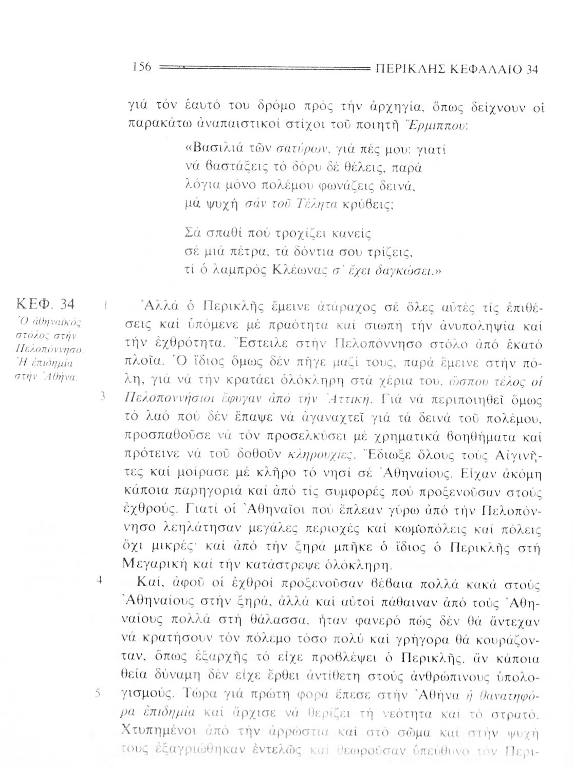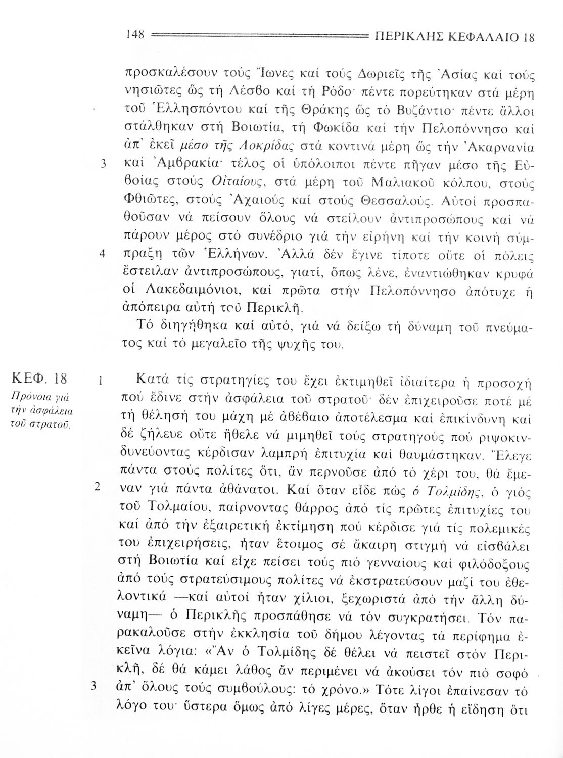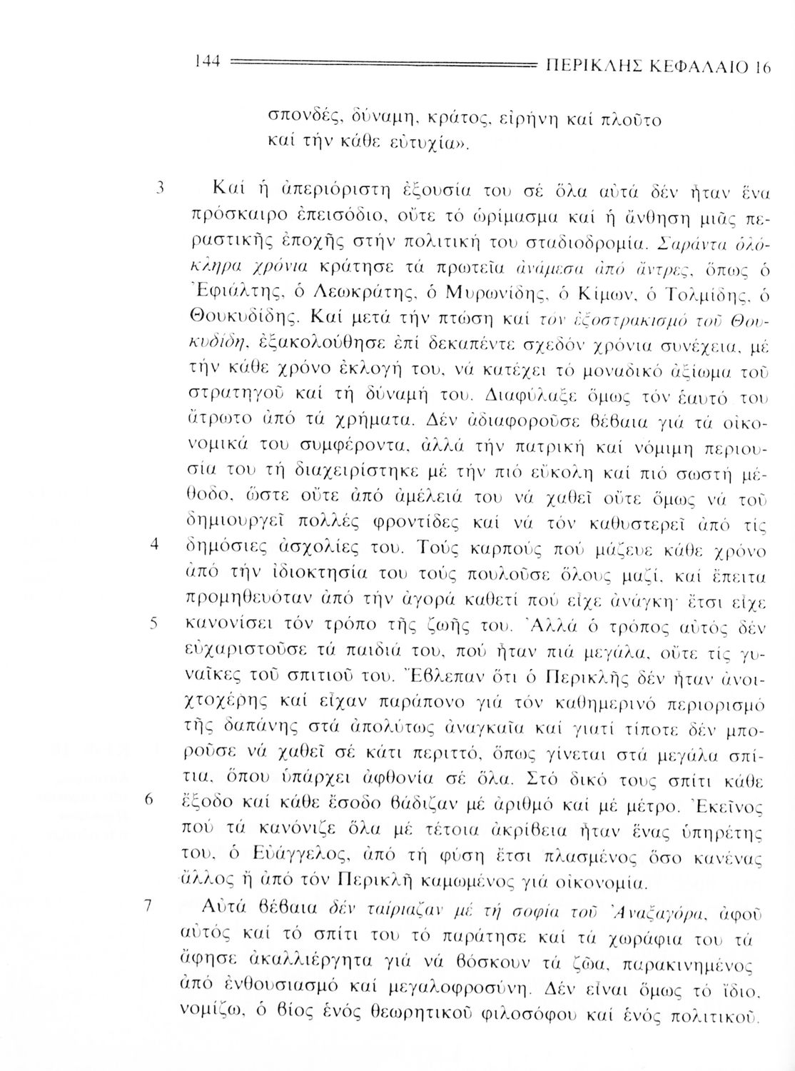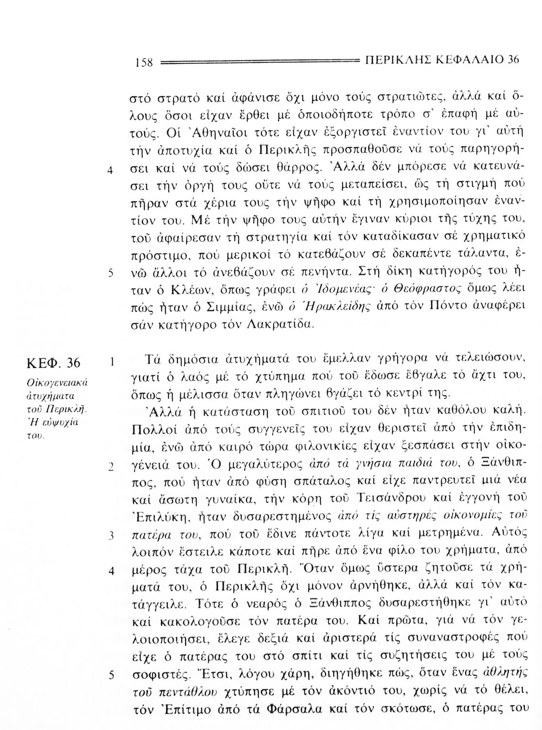 Σχολικό εγχειρίδιο Αρχαίων Ελληνικών Β΄ Γυμνασίου που περιέχει μετάφραση του έργο του Πλούταρχου Θεμιστοκλής και Περικλής, εισαγωγή και ερμηνευτικά σχόλια.