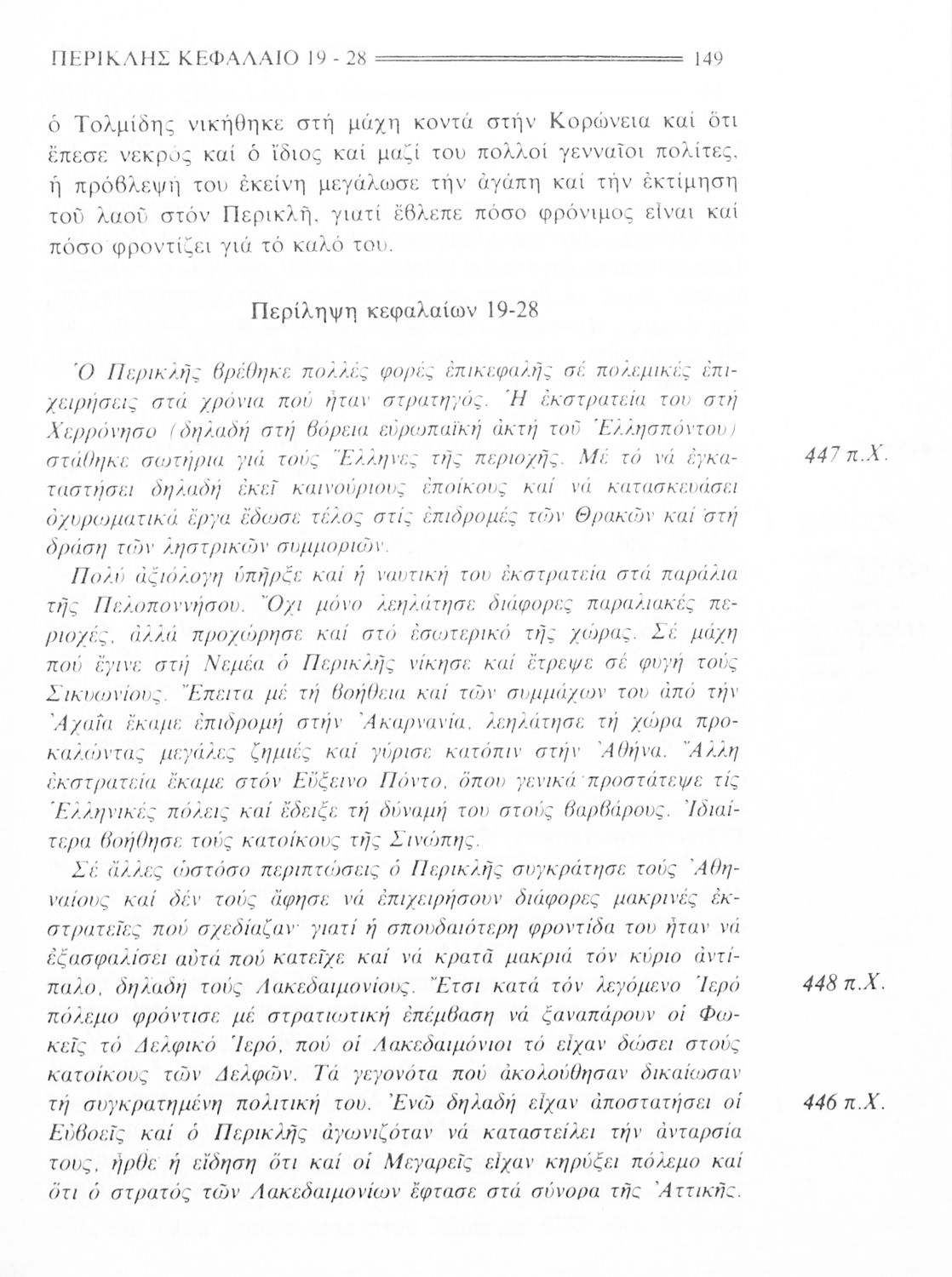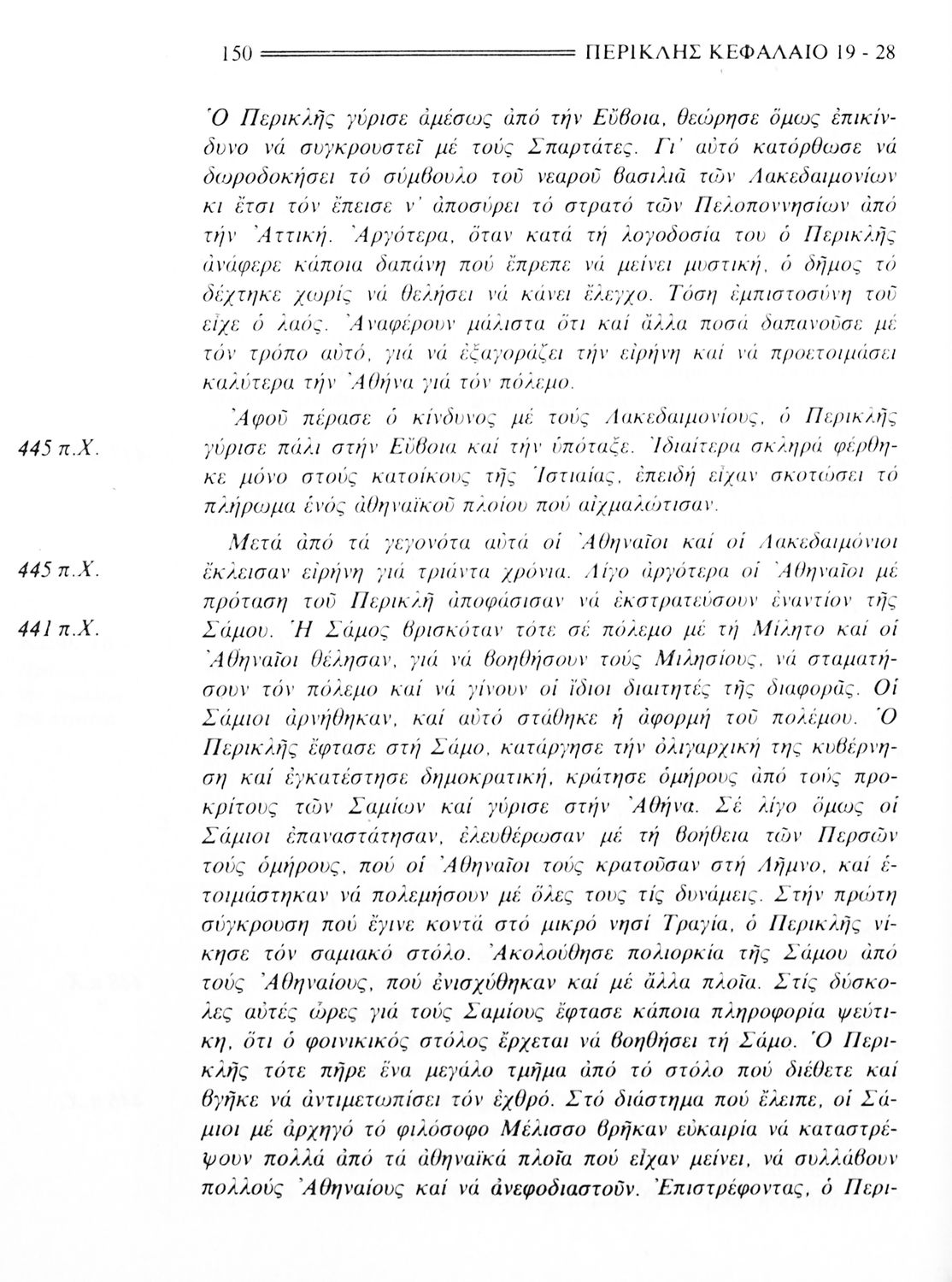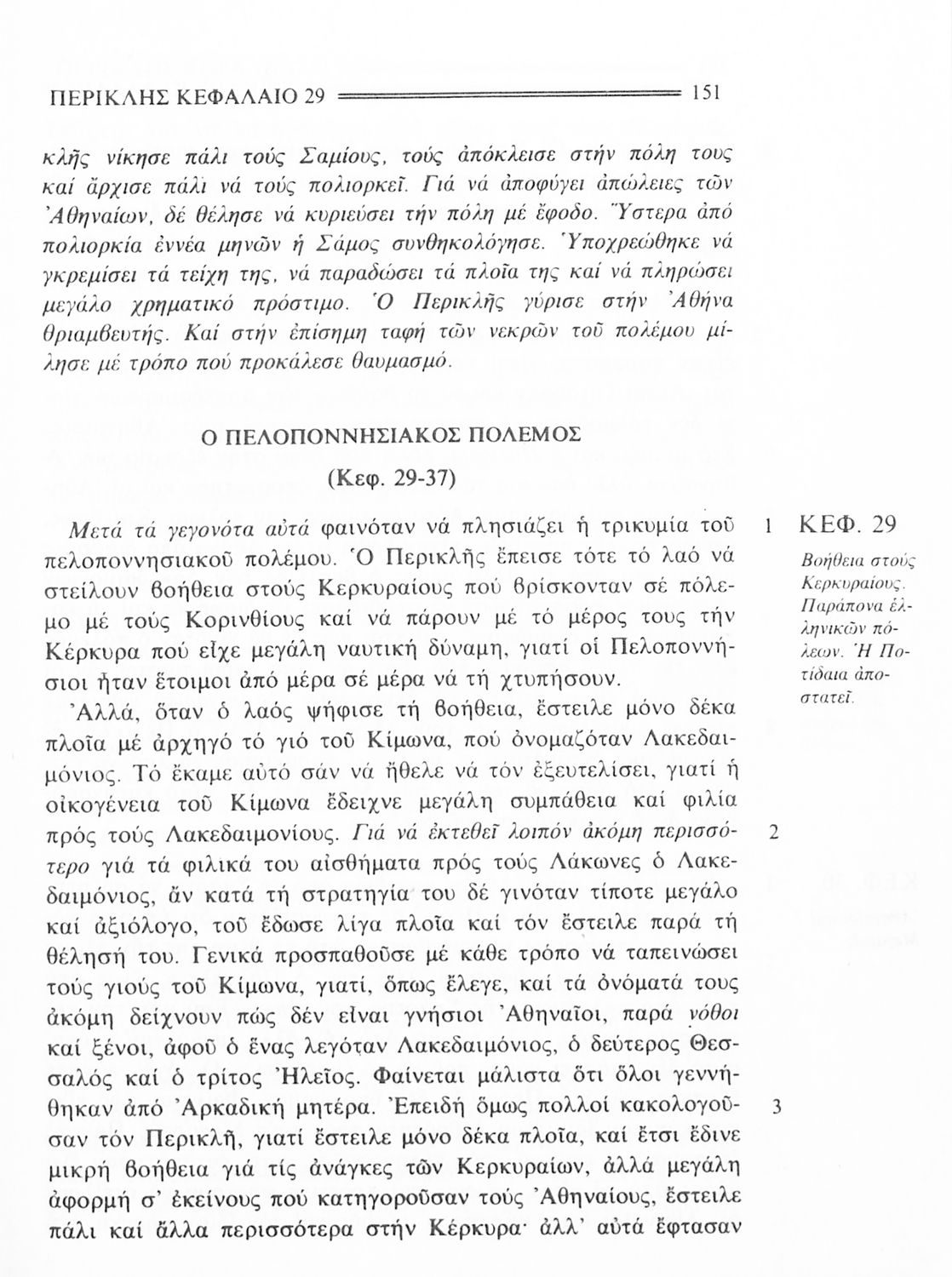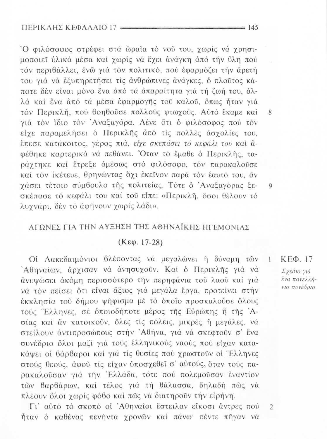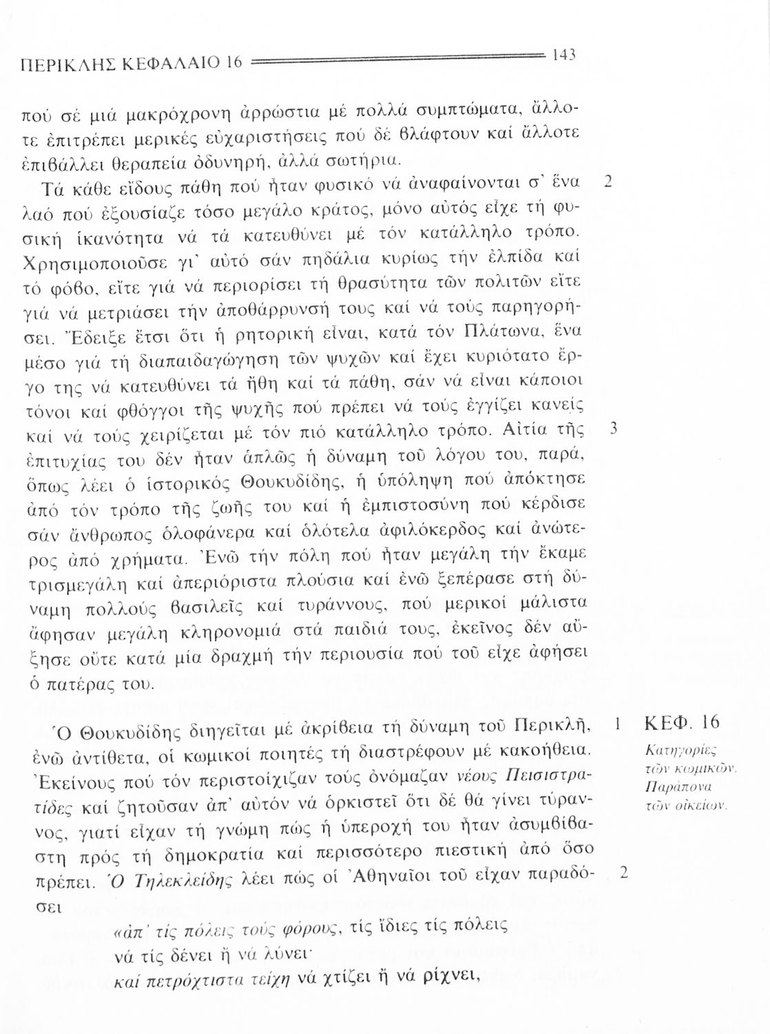 Σχολικό εγχειρίδιο Αρχαίων Ελληνικών Β΄ Γυμνασίου που περιέχει μετάφραση του έργο του Πλούταρχου Θεμιστοκλής και Περικλής, εισαγωγή και ερμηνευτικά σχόλια.