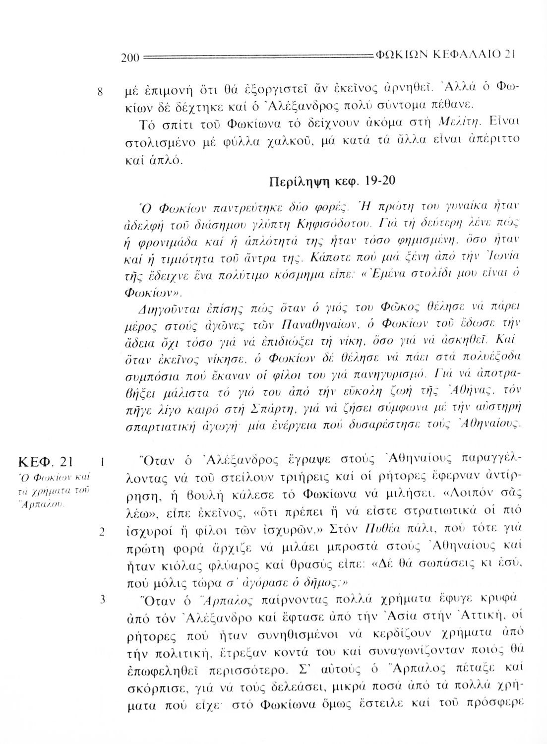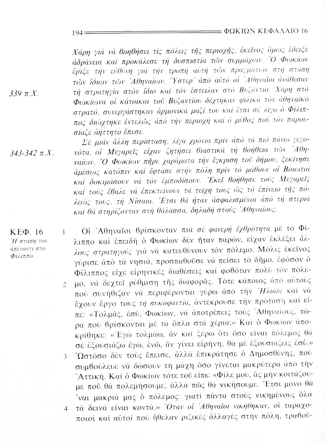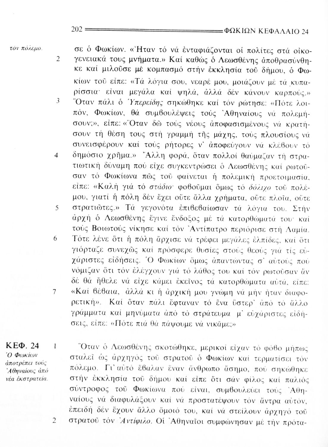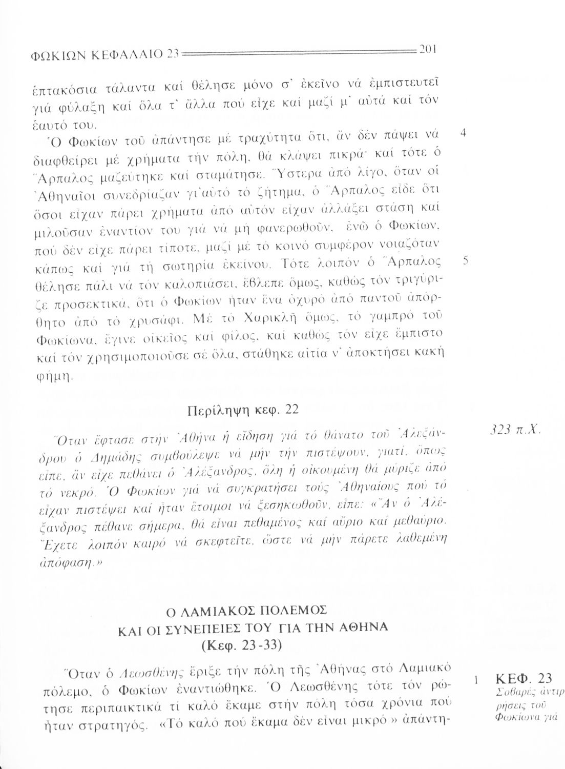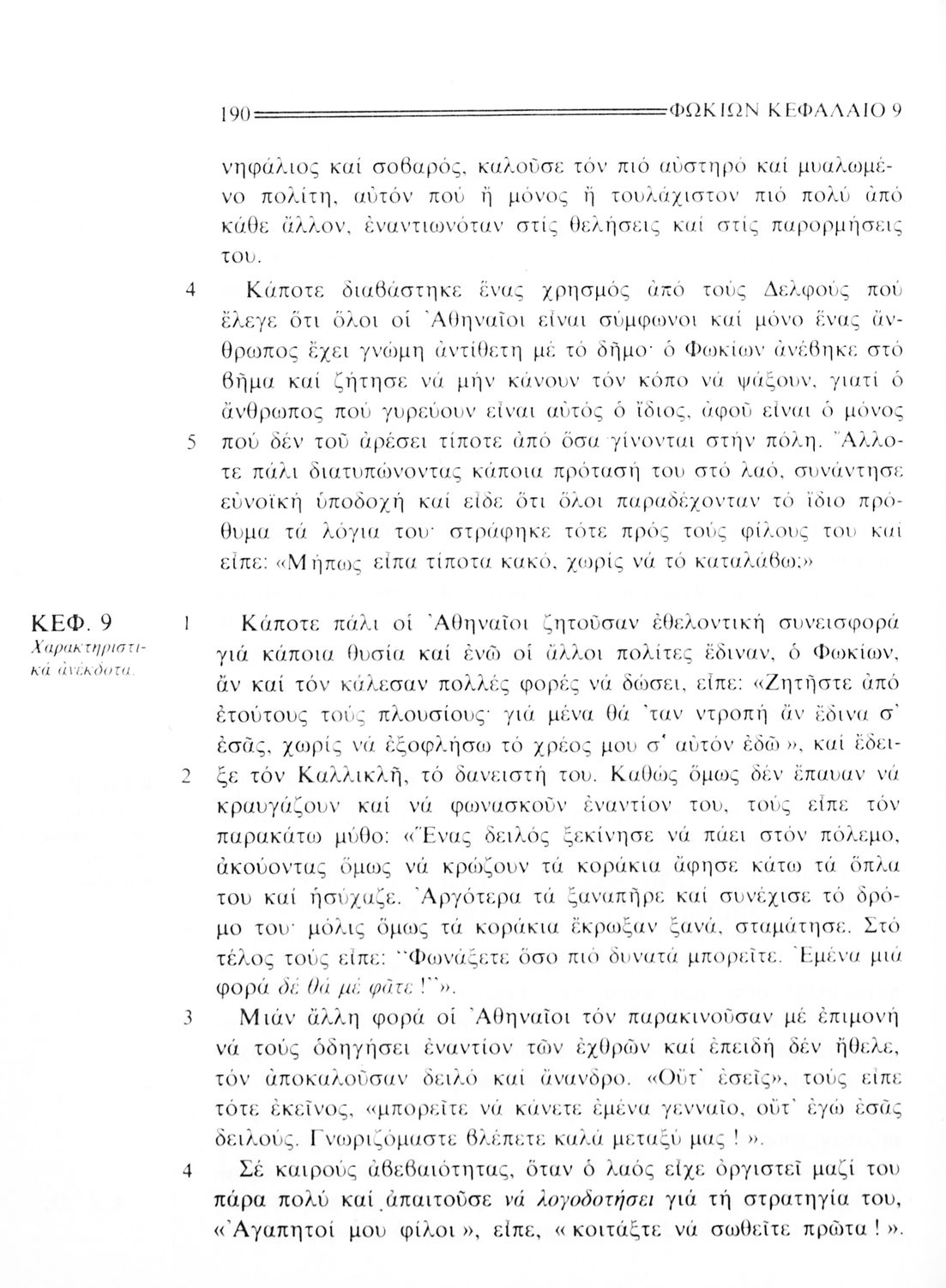 Σχολικό εγχειρίδιο Αρχαίων Ελληνικών της Β΄ Γυμνασίου το οποίο περιέχει το έργο του Πλούταρχου 'Βίοι' όπου παρουσιάζει τους βίους επιφανών ανδρών της αρχαιότητας του Σόλωνα, του Θεμιστοκλή, του Περικλή και του Φωκίωνα. Τα κείμενα συνοδεύονται από γλωσσικές και ερμηνευτικές σημειώσεις.