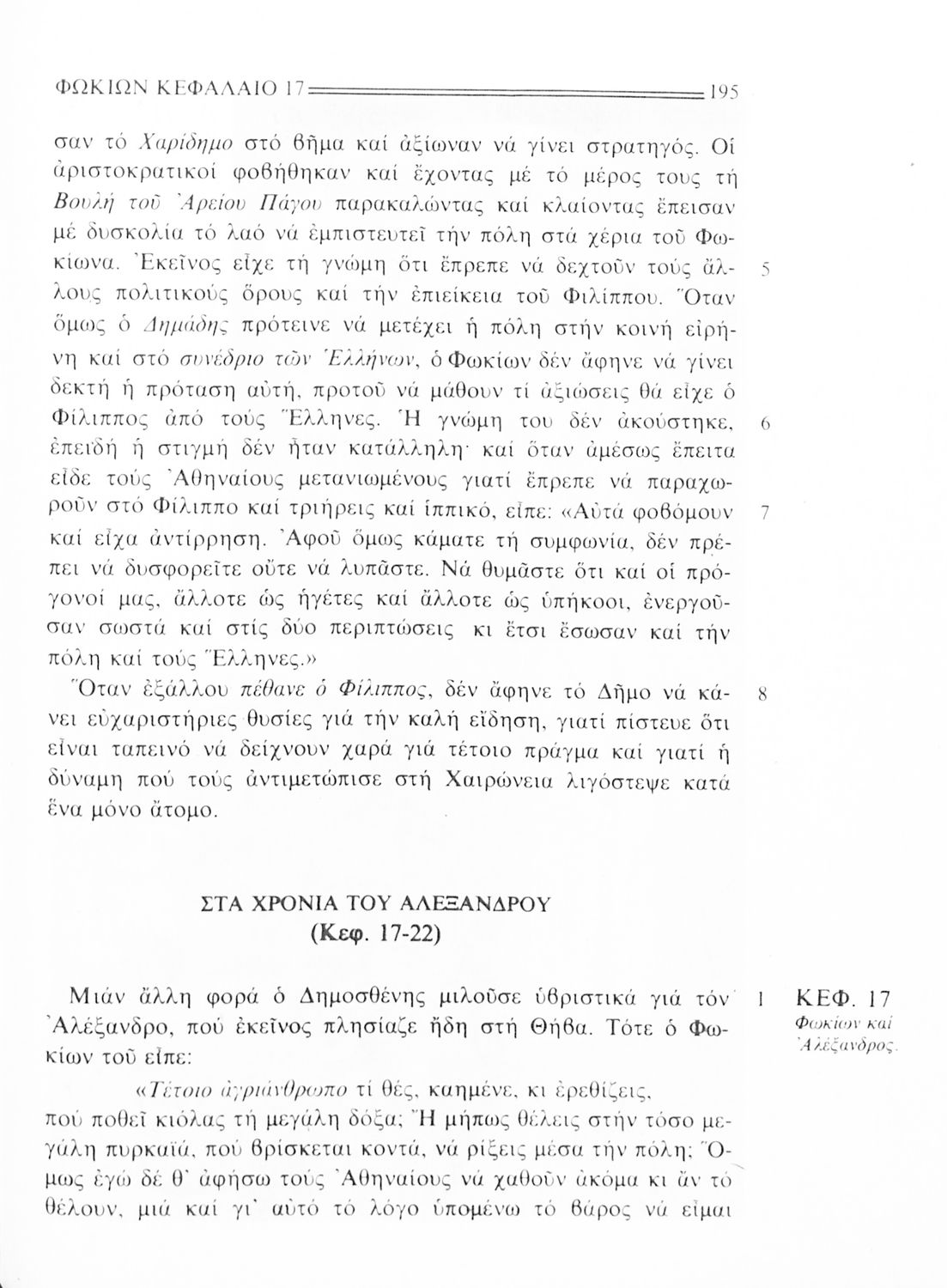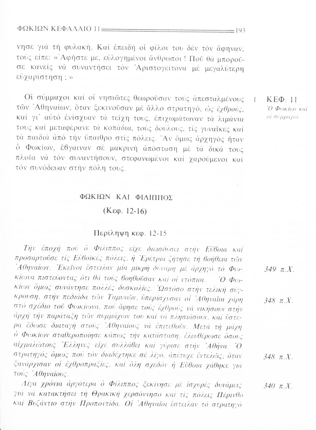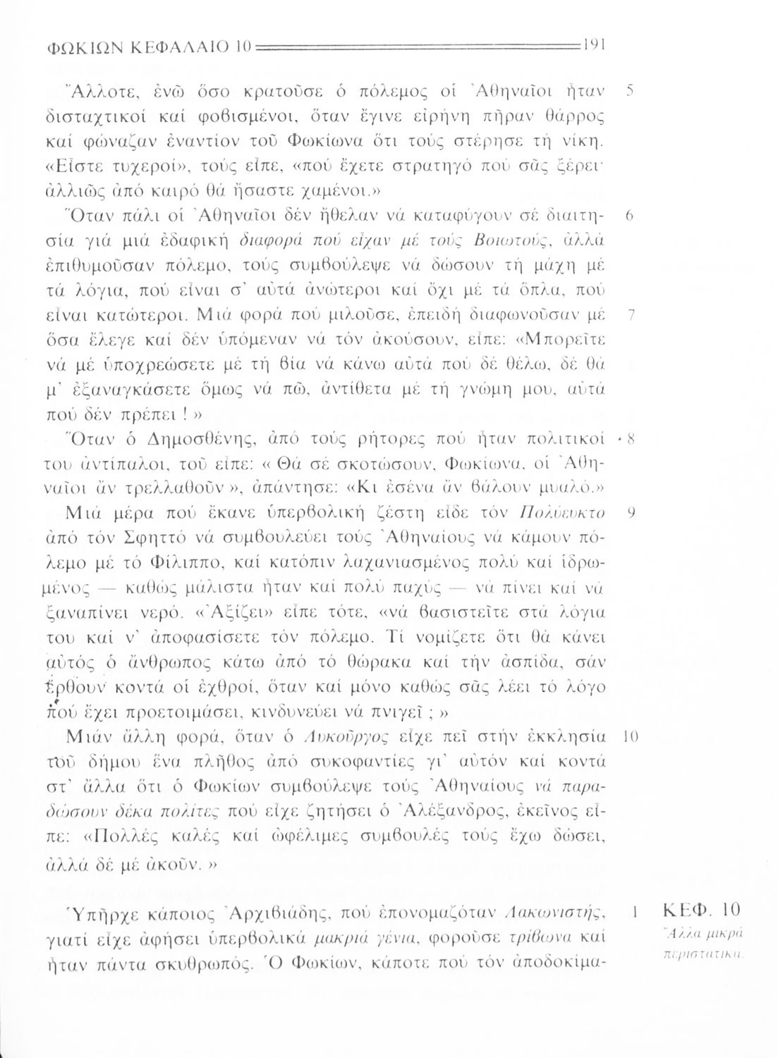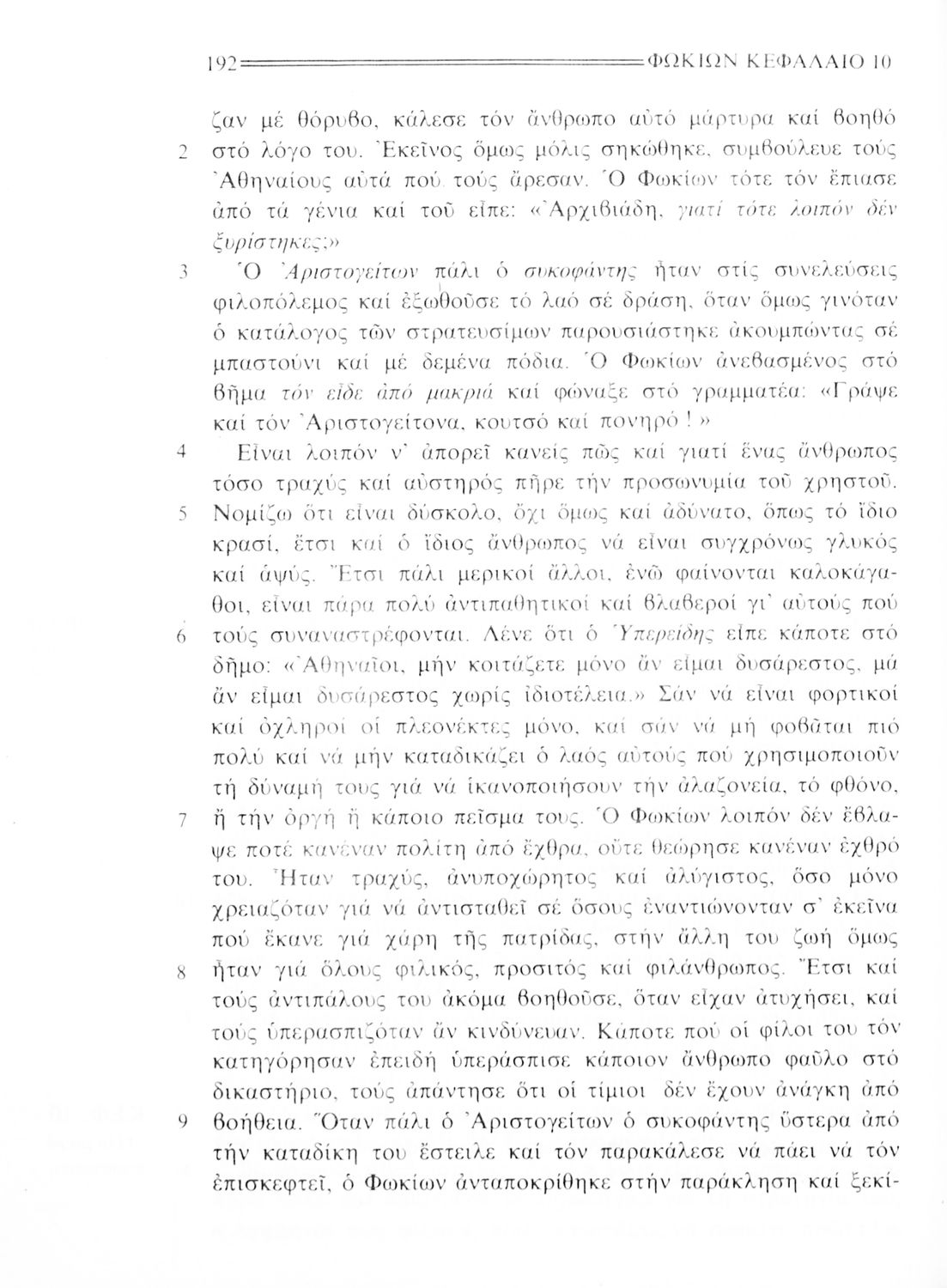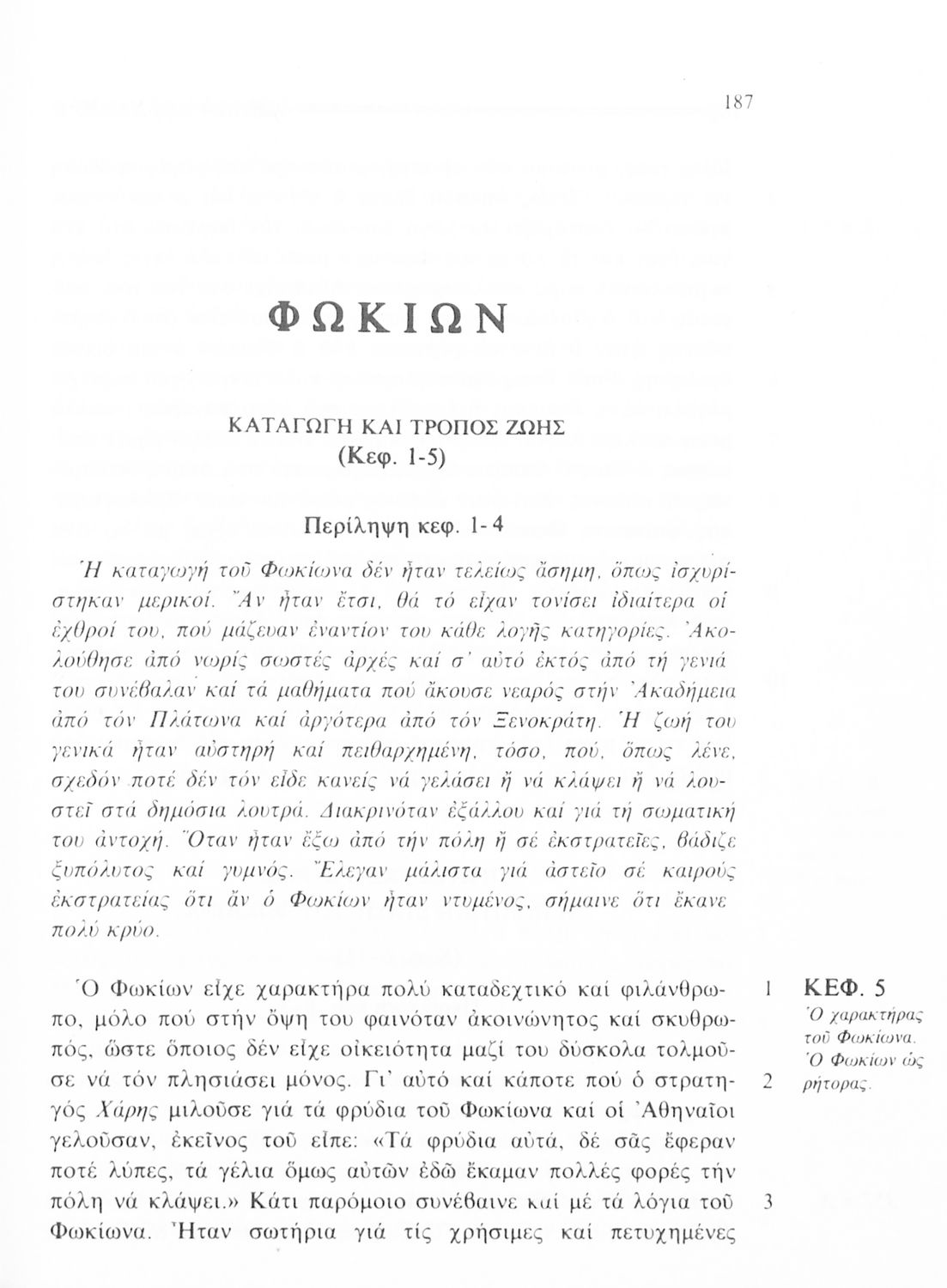 Σχολικό εγχειρίδιο Αρχαίων Ελληνικών της Β΄ Γυμνασίου το οποίο περιέχει το έργο του Πλούταρχου 'Βίοι' όπου παρουσιάζει τους βίους επιφανών ανδρών της αρχαιότητας του Σόλωνα, του Θεμιστοκλή, του Περικλή και του Φωκίωνα. Τα κείμενα συνοδεύονται από γλωσσικές και ερμηνευτικές σημειώσεις.