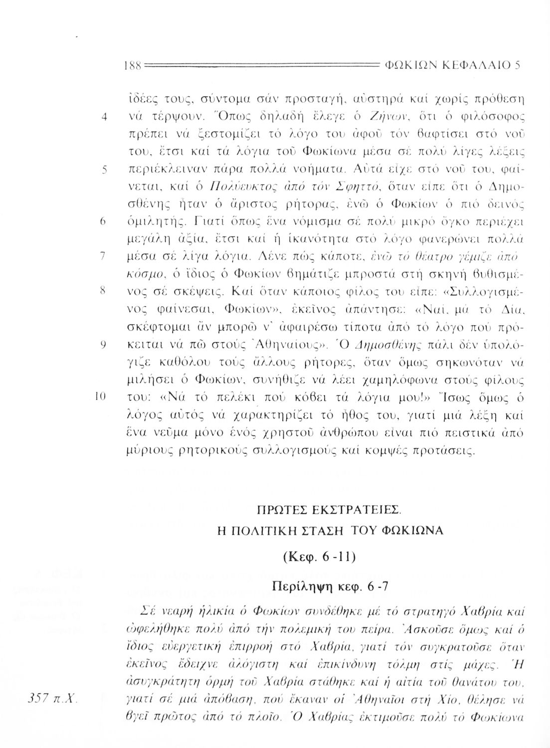 Σχολικό εγχειρίδιο Αρχαίων Ελληνικών της Β' Γυμνασίου. Το βιβλίο περιλαμβάνει τέσσερις από τους “Βίους” του Πλούταρχου: του Σόλωνα, του Θεμιστοκλή, του Περικλή και του Φωκίωνα