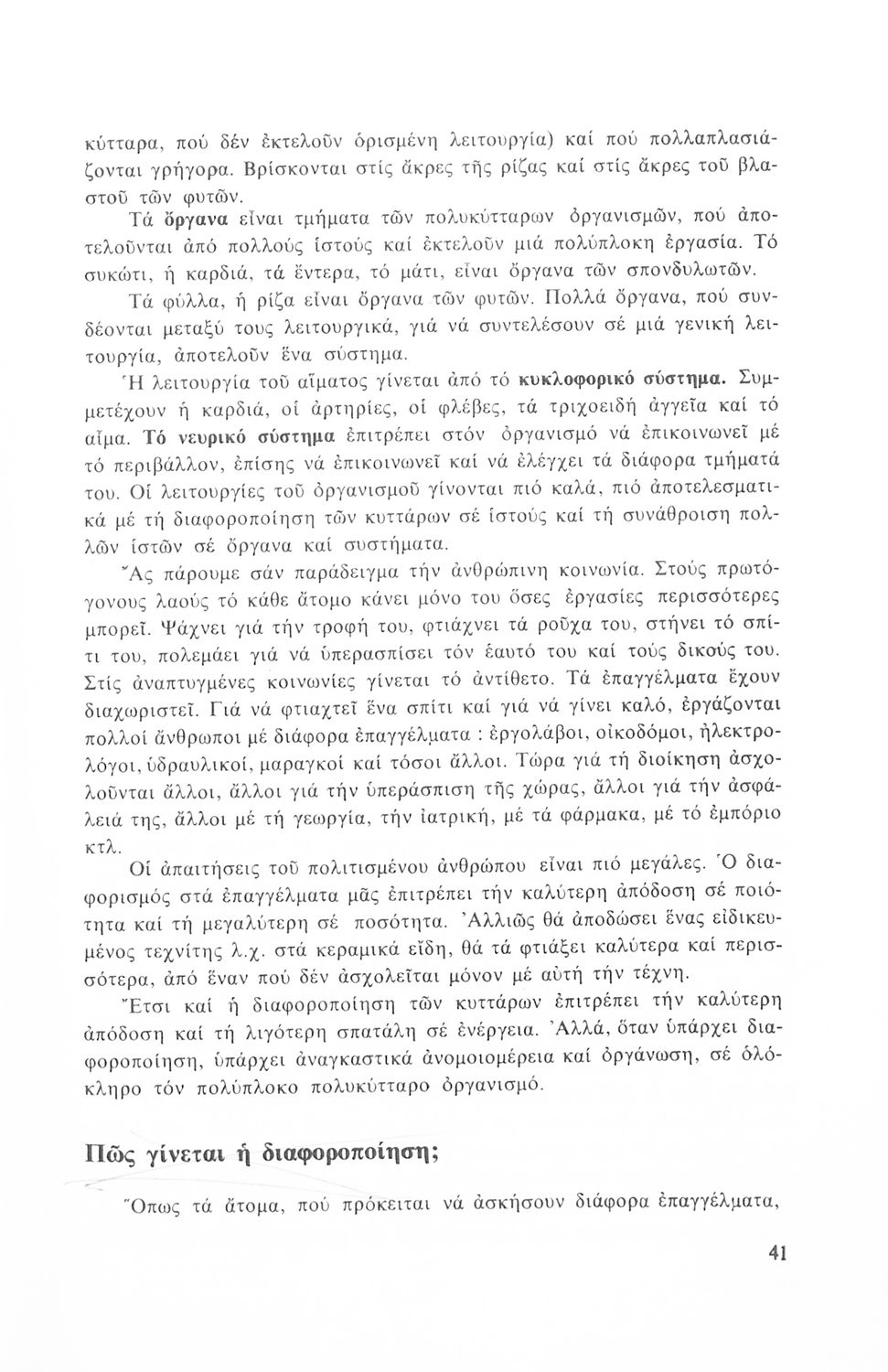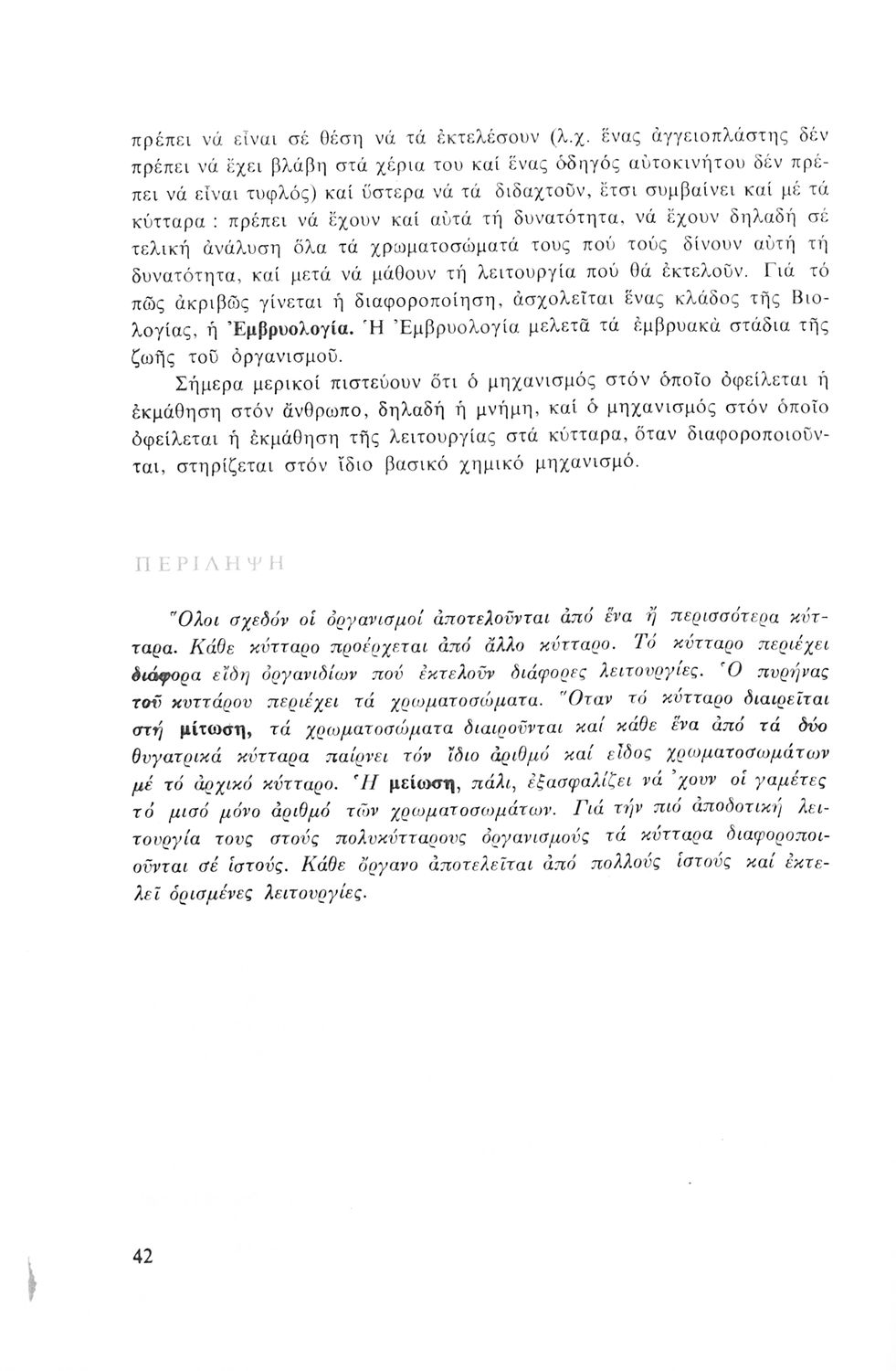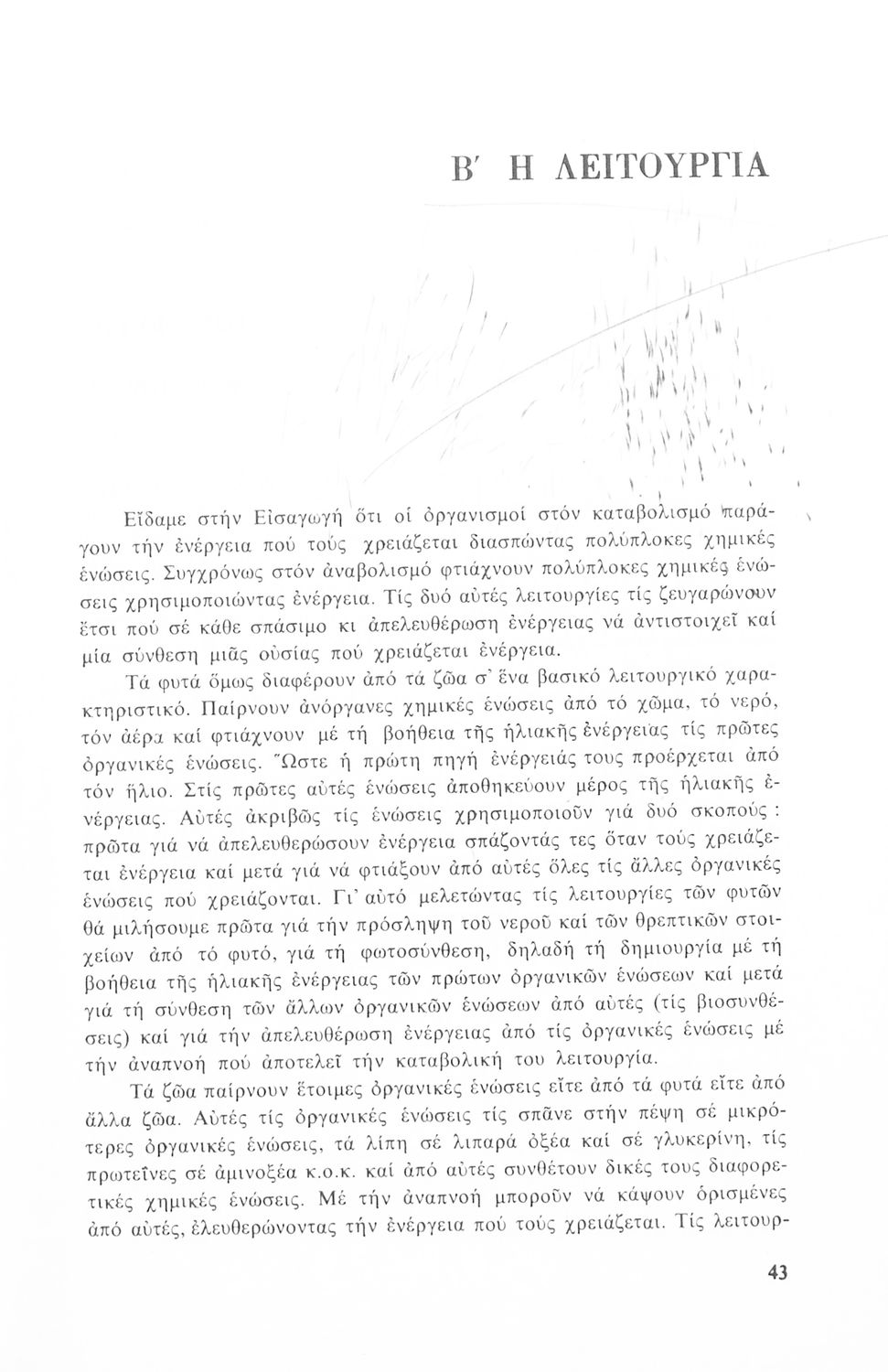 Σχολικό εγχειρίδιο Βιολογίας ΣΤ΄ Γυμνασίου που εστιάζει στις συνθήκες γέννησης, μεταβολής και θανάτου των έμβιων οργανισμών. Φέρει το σύμβολο της δικτατορίας. Ο συγγραφέας ήταν υφηγητής του Πανεπιστημίου ...