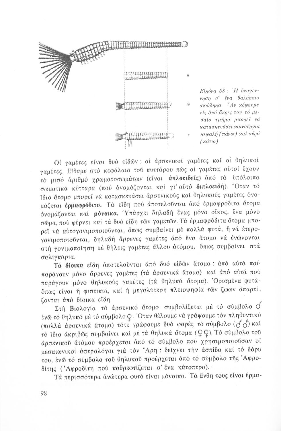 Σχολικό εγχειρίδιο Βιολογίας Γ΄ Γυμνασίου που εστιάζει στις συνθήκες γέννησης, μεταβολής και θανάτου των έμβιων οργανισμών. Φέρει το σύμβολο της δικτατορίας.