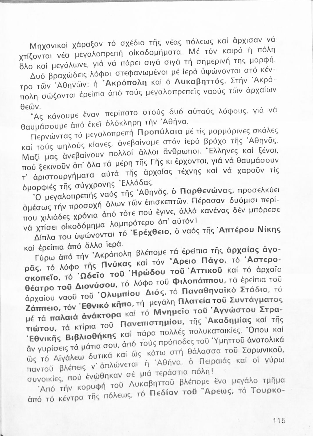 Σχολικό εγχειρίδιο Γεωγραφίας Γ ΄ και Δ' Δημοτικού. Το πρώτο μέρος του βιβλίου απευθύνεται σε μαθητές της Γ' Δημοτικού και αποτελεί μια εισαγωγή στην πατριδογνωσία με έμφαση στις παραδόσεις της ελληνικής επαρχίας. Το δεύτερο μέρος αφορά την Δ' Δημοτικού και εξετάζει την οικονομική, πολιτική και γεωφυσική γεωγραφία της Ελλάδας.