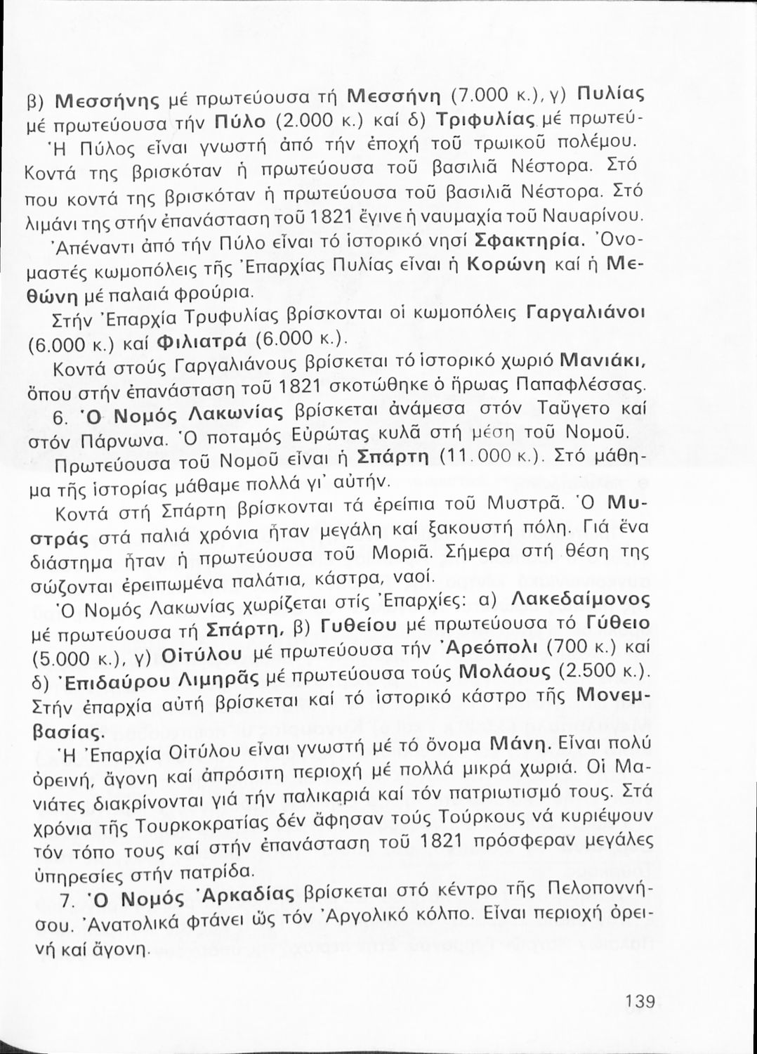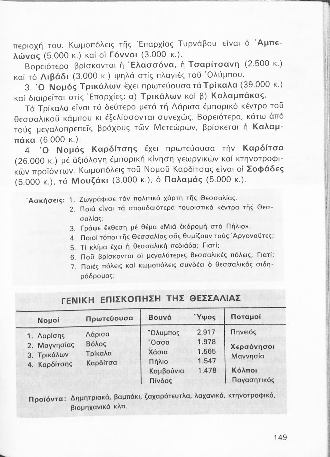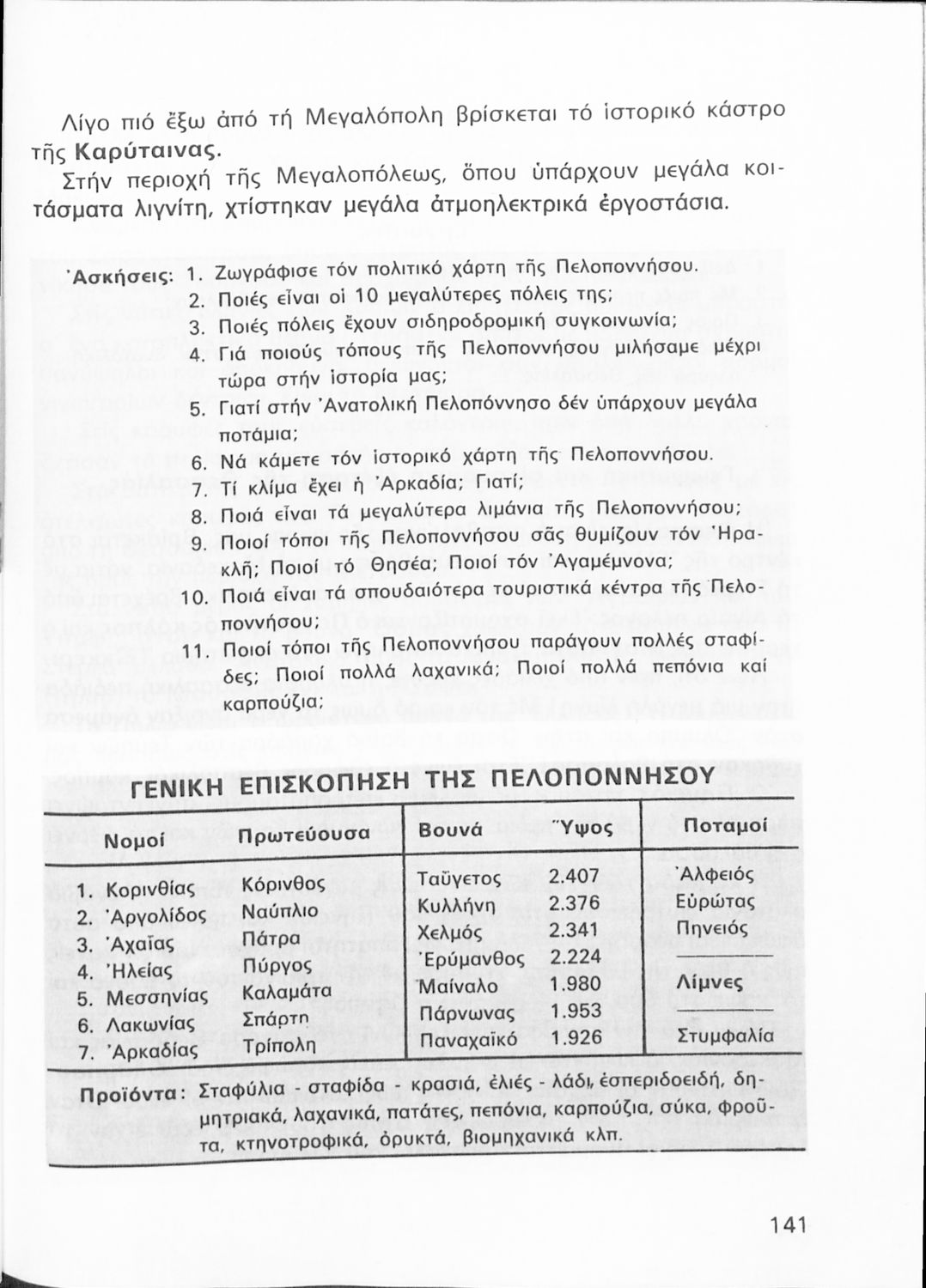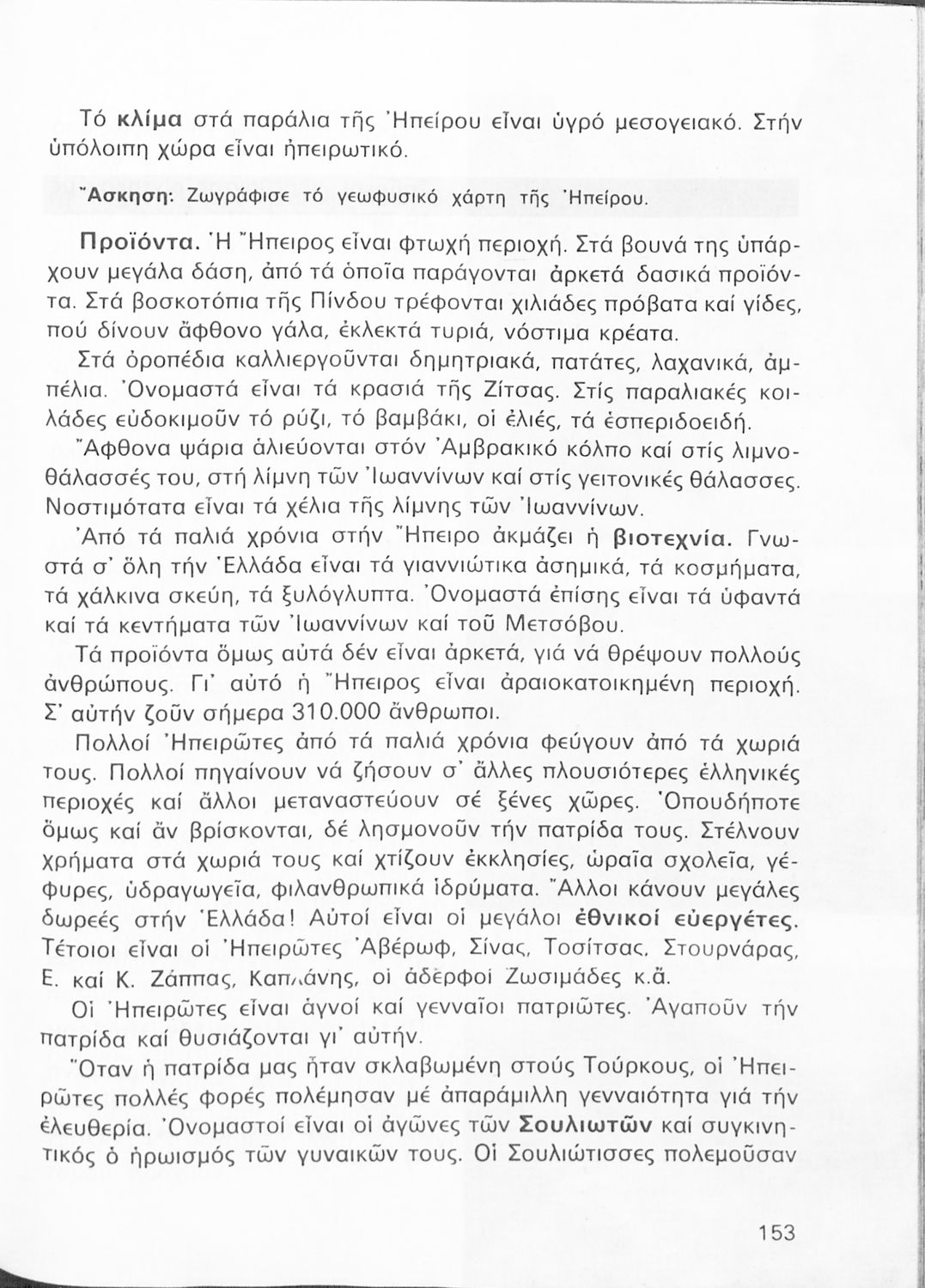 Βαθμίδα εκπαίδευσης: Πρωτοβάθμια Τάξη: Γ' Δημοτικού / Δ' Δημοτικού Μάθημα: Γεωγραφία Γλώσσα: Δημοτική Παρουσίαση περιεχομένου: Σχολικό εγχειρίδιο Γεωγραφίας Γ ΄ και Δ' Δημοτικού. Το πρώτο μέρος του βιβλίου απευθύνεται σε μαθητές της Γ' Δημοτικού και αποτελεί μια εισαγωγή στην πατριδογνωσία με έμφαση στις παραδόσεις της ελληνικής επαρχίας. Το δεύτερο μέρος αφορά την Δ' Δημοτικού και εξετάζει την οικονομική, πολιτική και γεωφυσική γεωγραφία της Ελλάδας. |