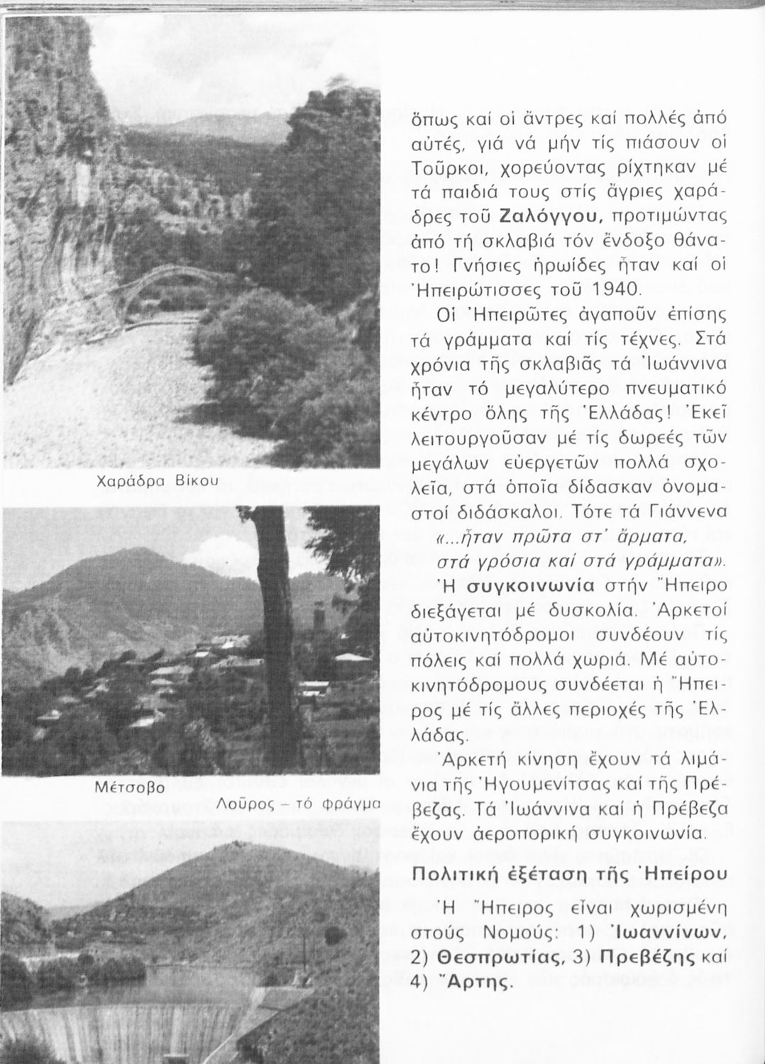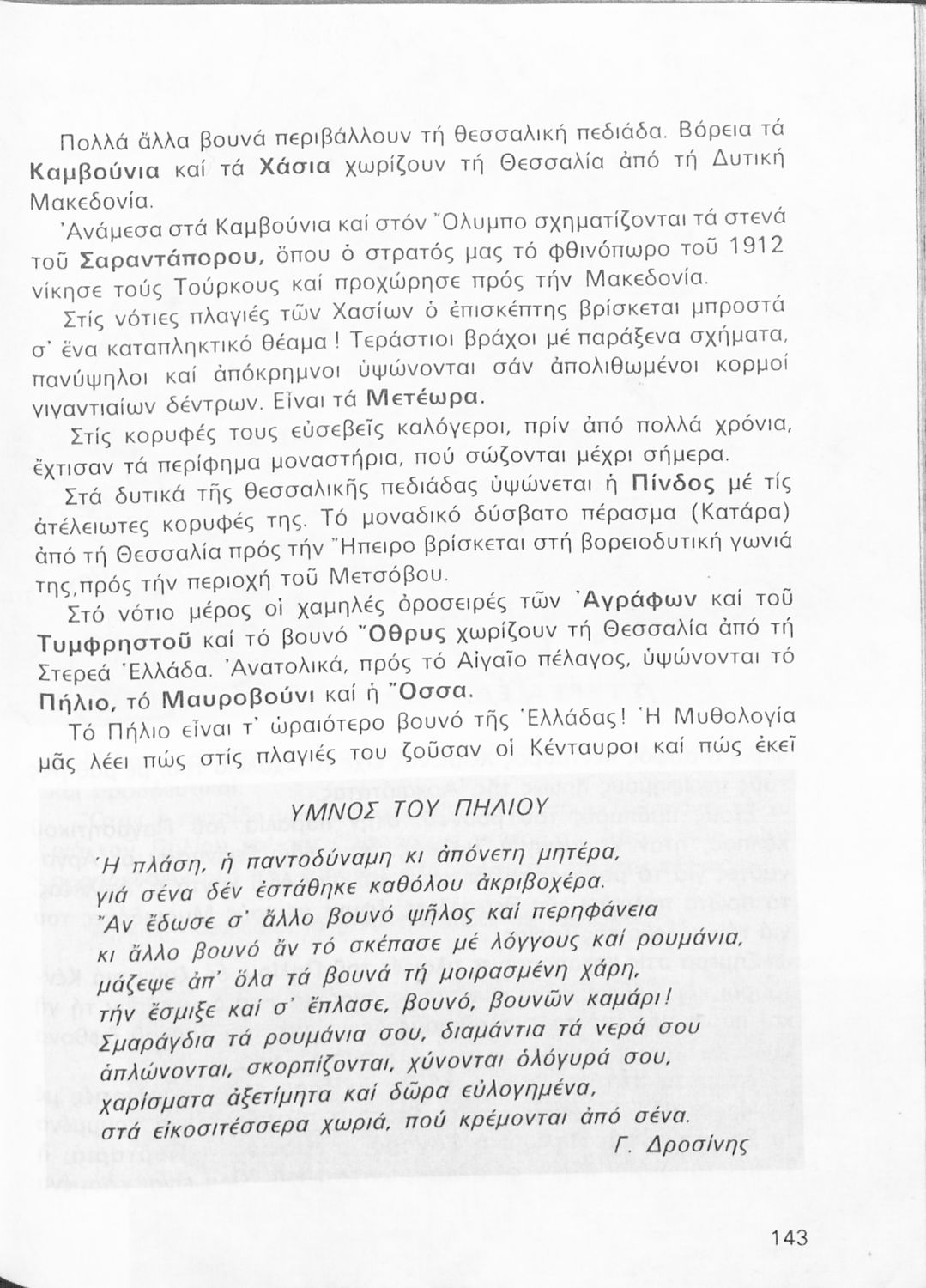 Σχολικό εγχειρίδιο Γεωγραφίας Γ ΄ και Δ' Δημοτικού. Το πρώτο μέρος του βιβλίου απευθύνεται σε μαθητές της Γ' Δημοτικού και αποτελεί μια εισαγωγή στην πατριδογνωσία με έμφαση στις παραδόσεις της ελληνικής επαρχίας. Το δεύτερο μέρος αφορά την Δ' Δημοτικού και εξετάζει την οικονομική, πολιτική και γεωφυσική γεωγραφία της Ελλάδας.