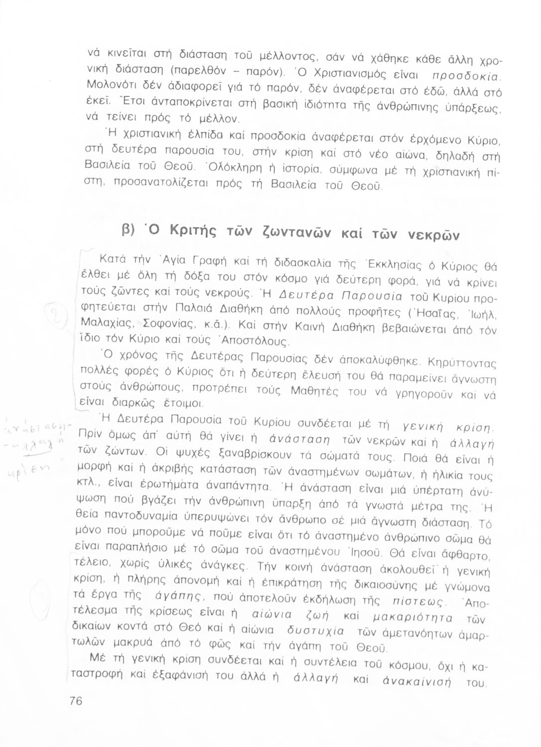 520 ## _aΣχολικό εγχειρίδιο Θρησκευτικών Γ΄ Γυμνασίου που περιλαμβάνει θέματα όπως η συμβολική διάσταση των Αγγέλων στη χριστιανική παράδοση, η ζωή και διδασκαλία του Ιησού Χριστού, η σημασία της Δευτέρας Παρουσίας και της Θείας χάρης και τα μυστήρια της Εκκλησίας