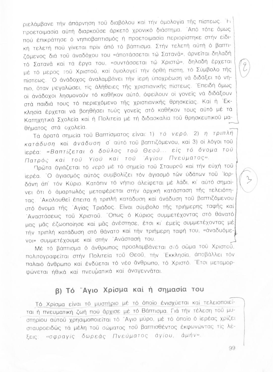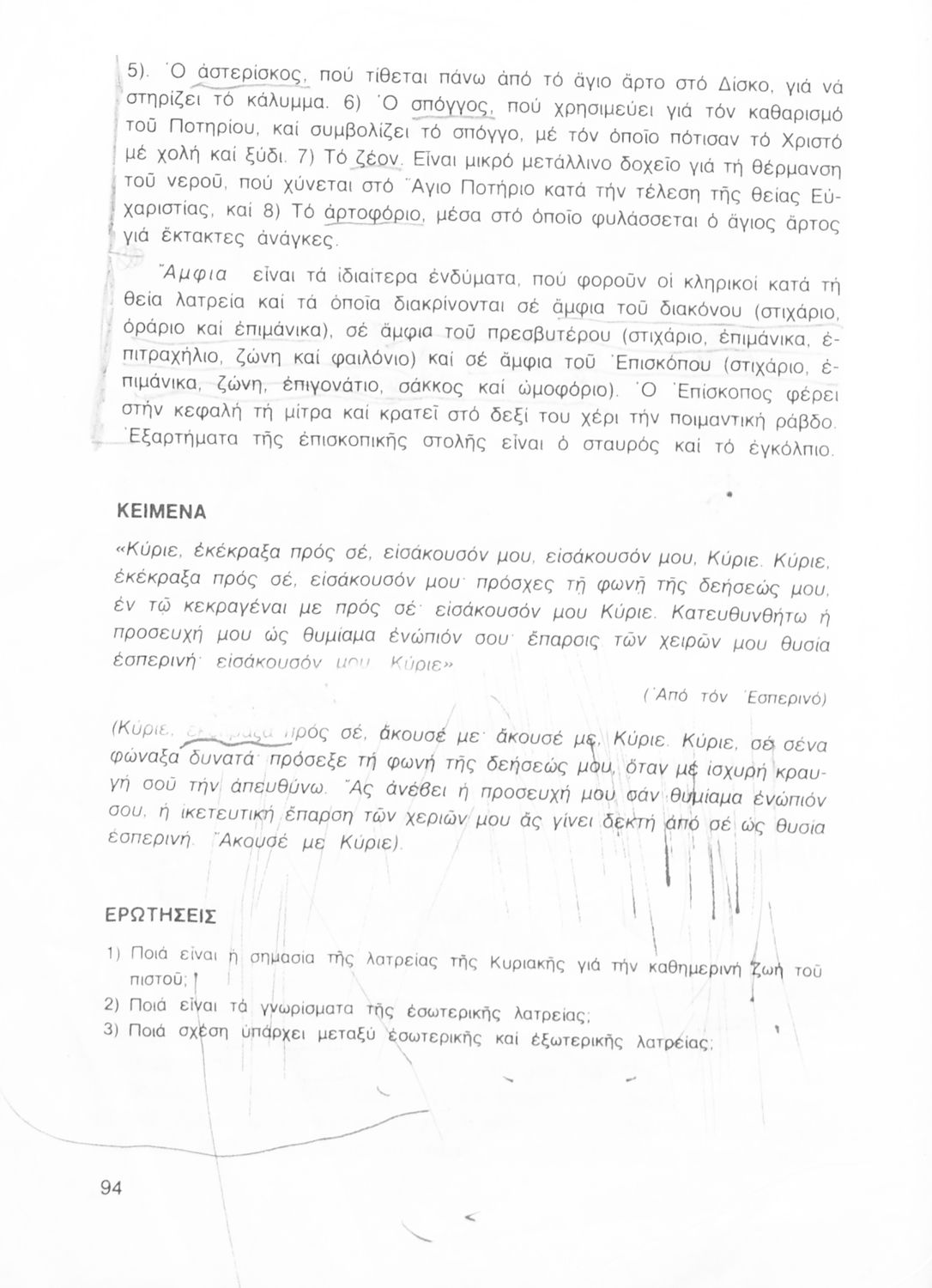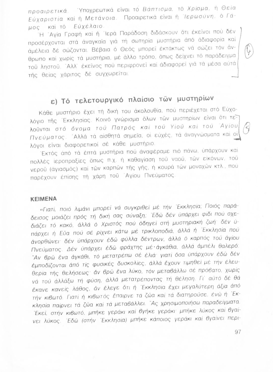 Σχολικό εγχειρίδιο Θρησκευτικών Γ΄ και Ε΄ Γυμνασίου που περιλαμβάνει εισαγωγή στην ορθόδοξη χριστιανική παράδοση και ηθική και εστιάζει στο δογματικό και το λειτουργικό μέρος της χριστιανικής πίστης και ...