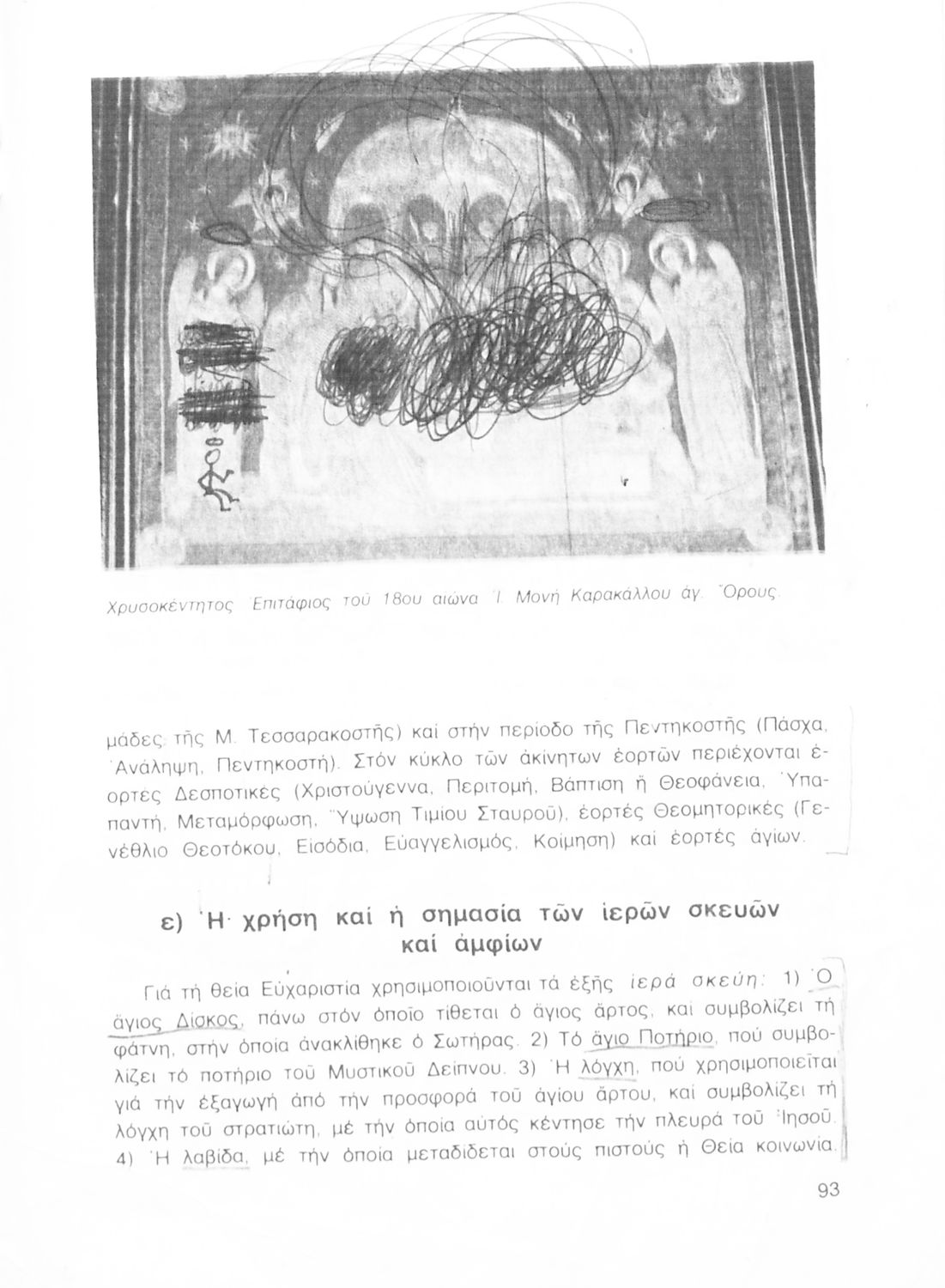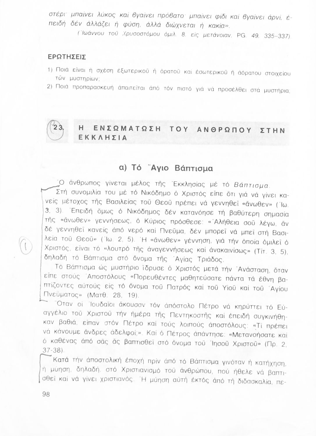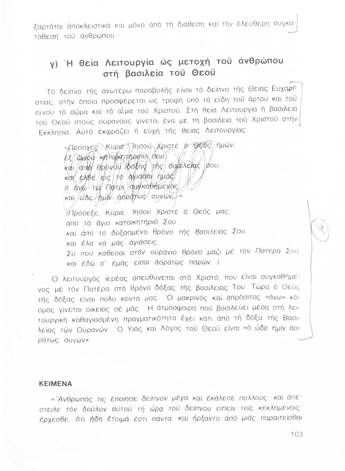 Σχολικό εγχειρίδιο Θρησκευτικών Γ΄ και Ε΄ Γυμνασίου που περιλαμβάνει εισαγωγή στην ορθόδοξη χριστιανική παράδοση και ηθική και εστιάζει στο δογματικό και το λειτουργικό μέρος της χριστιανικής πίστης και ...