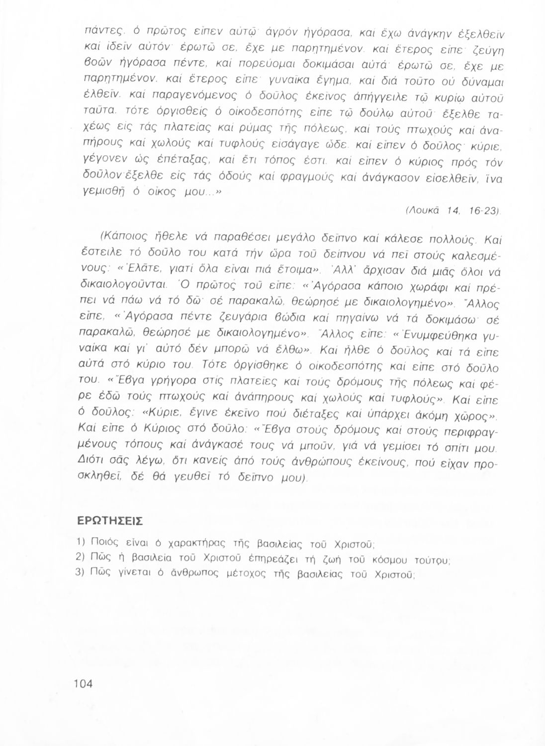 Σχολικό εγχειρίδιο Θρησκευτικών Γ΄ Γυμνασίου που περιλαμβάνει θέματα όπως η συμβολική διάσταση των Αγγέλων στη χριστιανική παράδοση, η ζωή και διδασκαλία του Ιησού Χριστού, η σημασία της Δευτέρας Παρουσίας και της Θείας χάρης και τα μυστήρια της Εκκλησίας
