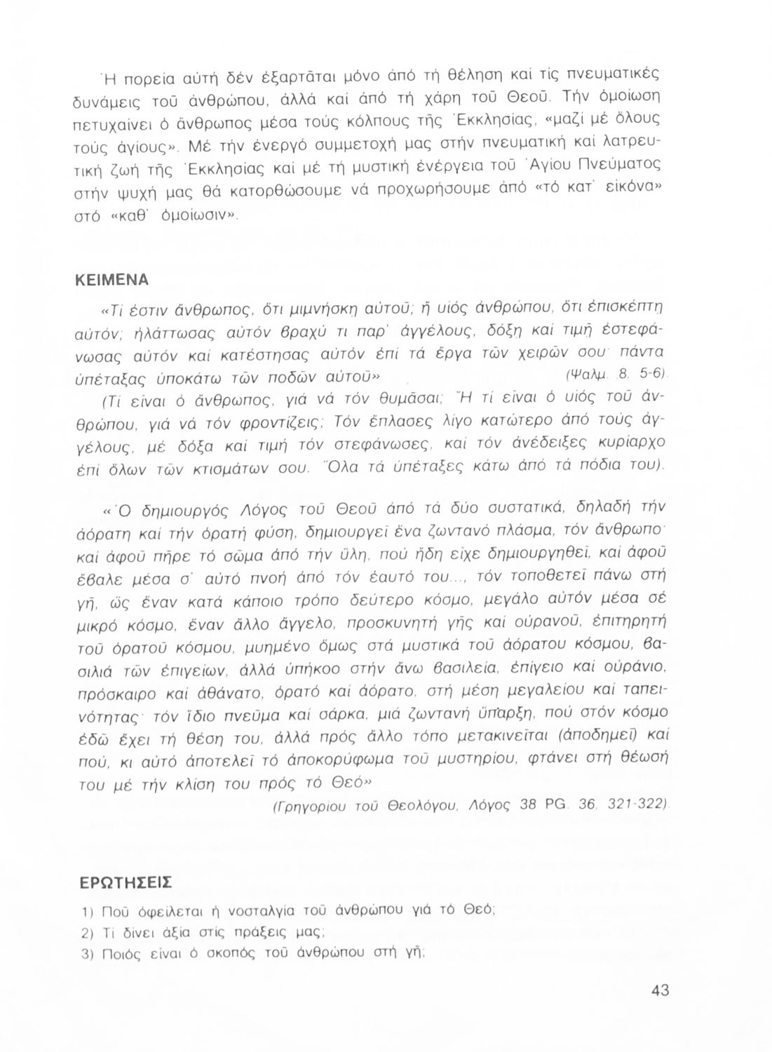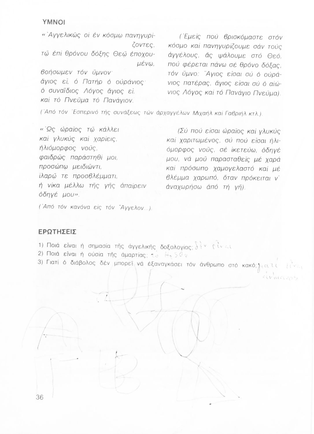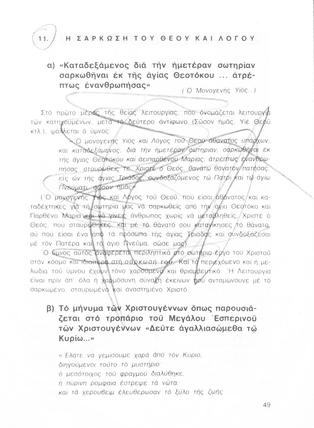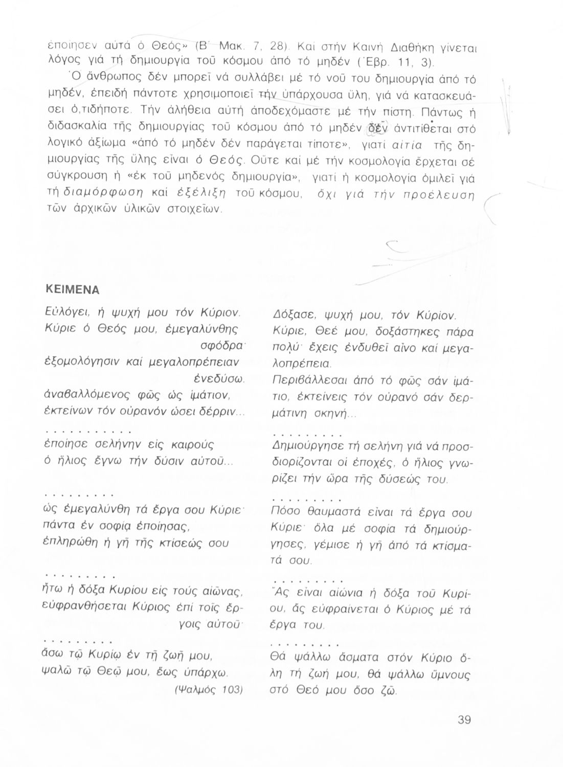 Σχολικό εγχειρίδιο Θρησκευτικών Γ΄ Γυμνασίου που περιλαμβάνει θέματα όπως η συμβολική διάσταση των Αγγέλων στη χριστιανική παράδοση, η ζωή και διδασκαλία του Ιησού Χριστού, η σημασία της Δευτέρας Παρουσίας και της Θείας χάρης και τα μυστήρια της Εκκλησίας