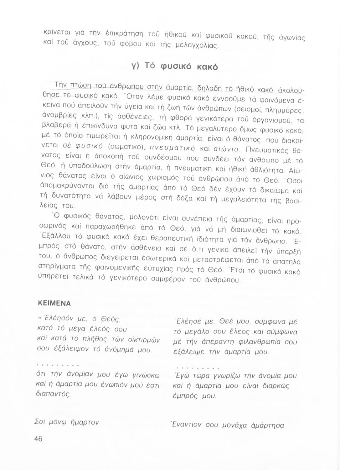 Κωδικός αναγνώρισης: 02-00401 Τίτλος: Ορθόδοξη πίστη και ζωή Γ΄ Γυμνασίου Συγγραφέας: Χρίστος Ν. Μπούκης Μέγεθος και υπόστρωμα: Σχολικό εγχειρίδιο, μαλακό εξώφυλλο, 166 σελίδες. Σκίτσα (ασπρόμαυρα), εικόνες (ασπρόμαυρες). |