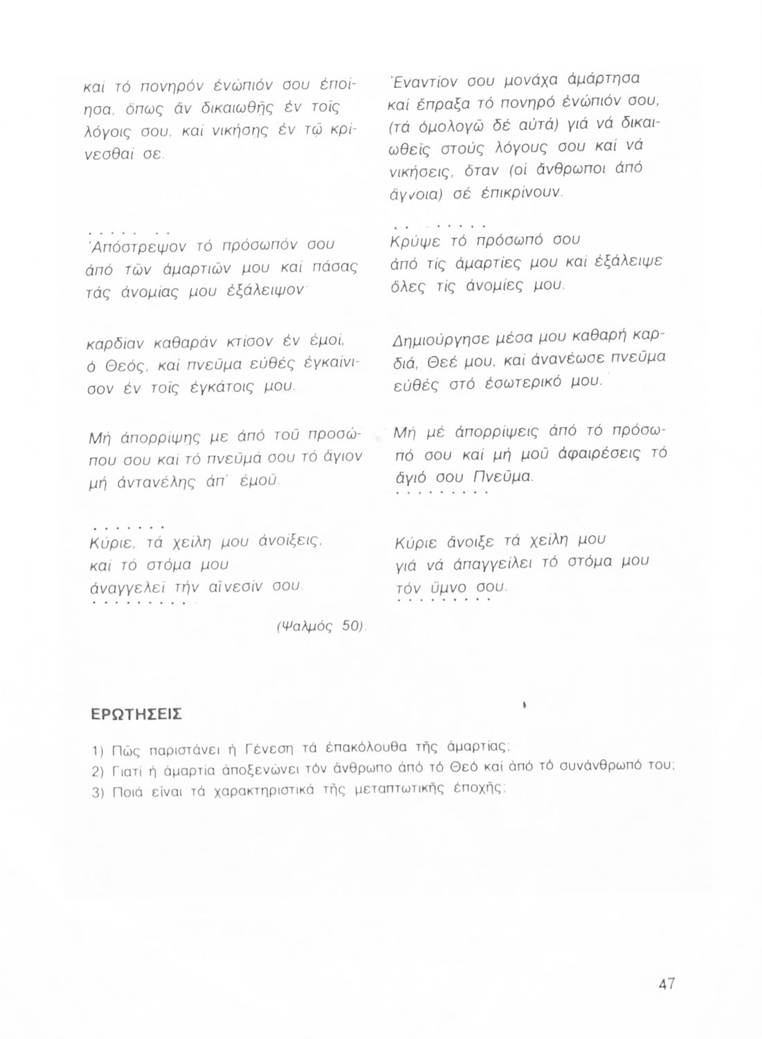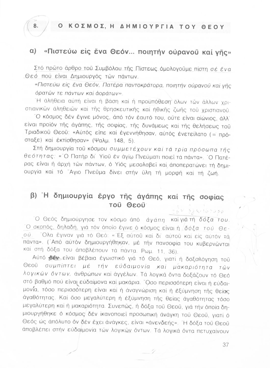 Βαθμίδα εκπαίδευσης: Δευτεροβάθμια Τάξη: Γ' Γυμνασίου Μάθημα: Θρησκευτικά Γλώσσα: Δημοτική Παρουσίαση περιεχομένου: Σχολικό εγχειρίδιο Θρησκευτικών Γ΄ Γυμνασίου που περιλαμβάνει θέματα όπως η συμβολική διάσταση των Αγγέλων στη χριστιανική παράδοση, η ζωή και διδασκαλία του Ιησού Χριστού, η σημασία της Δευτέρας Παρουσίας και της Θείας χάρης και τα μυστήρια της Εκκλησίας |