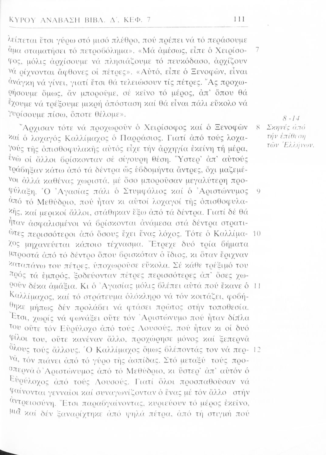 Ξενοφών, Νικόλαος Ζαφειρίου (σχόλια)
