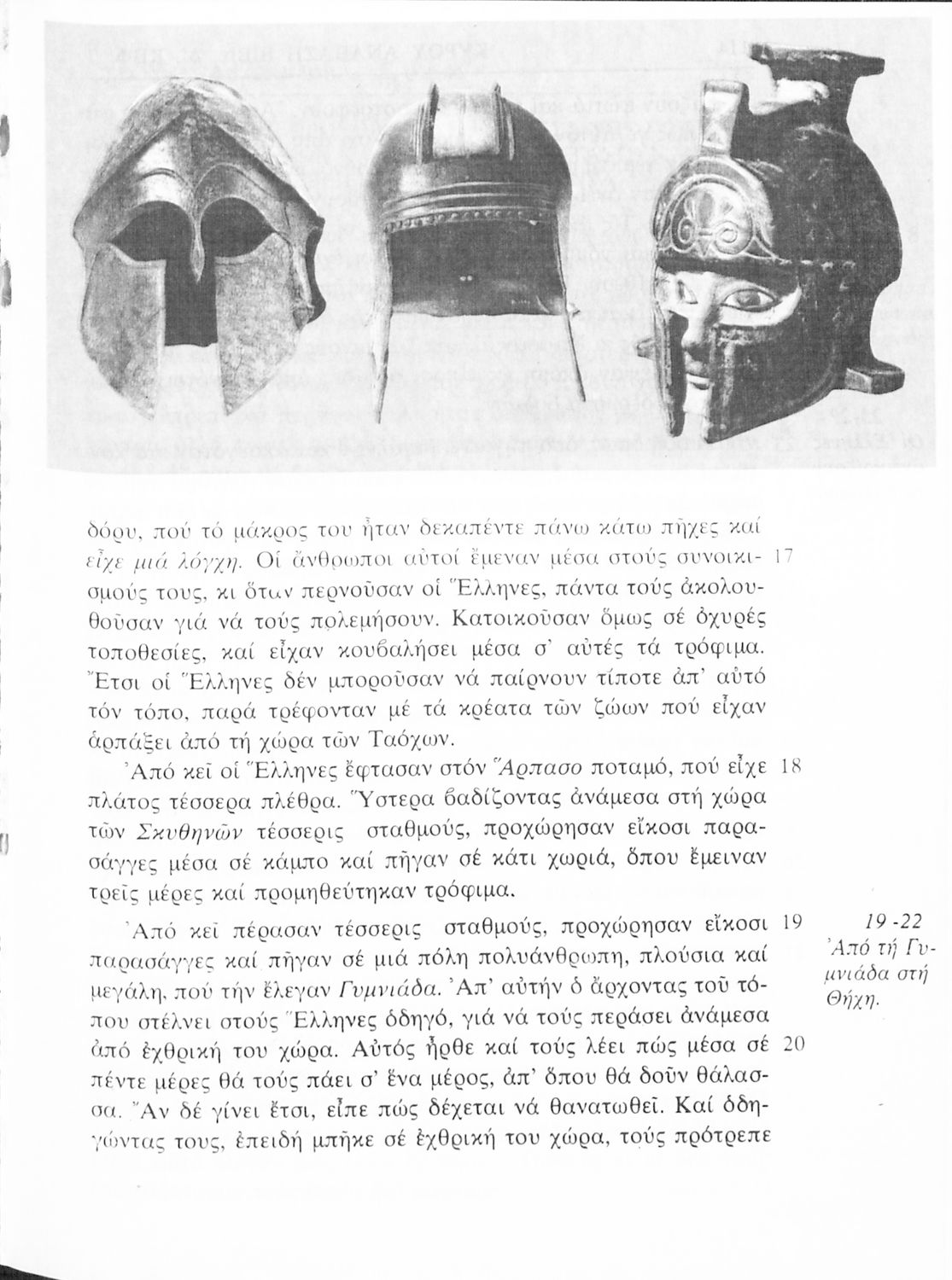 Σχολικό Εγχειρίδιο Αρχαίων Ελληνικών της Β' Γυμνασίου. Το βιβλίο αναφέρεται στο σύγγραμμα του Ξενοφώντα για την εκστρατεία του Κύρου κατά του Αρταξέρξη και κυρίως την κάθοδο ( επιστροφή) των Μυρίων. Στο ...