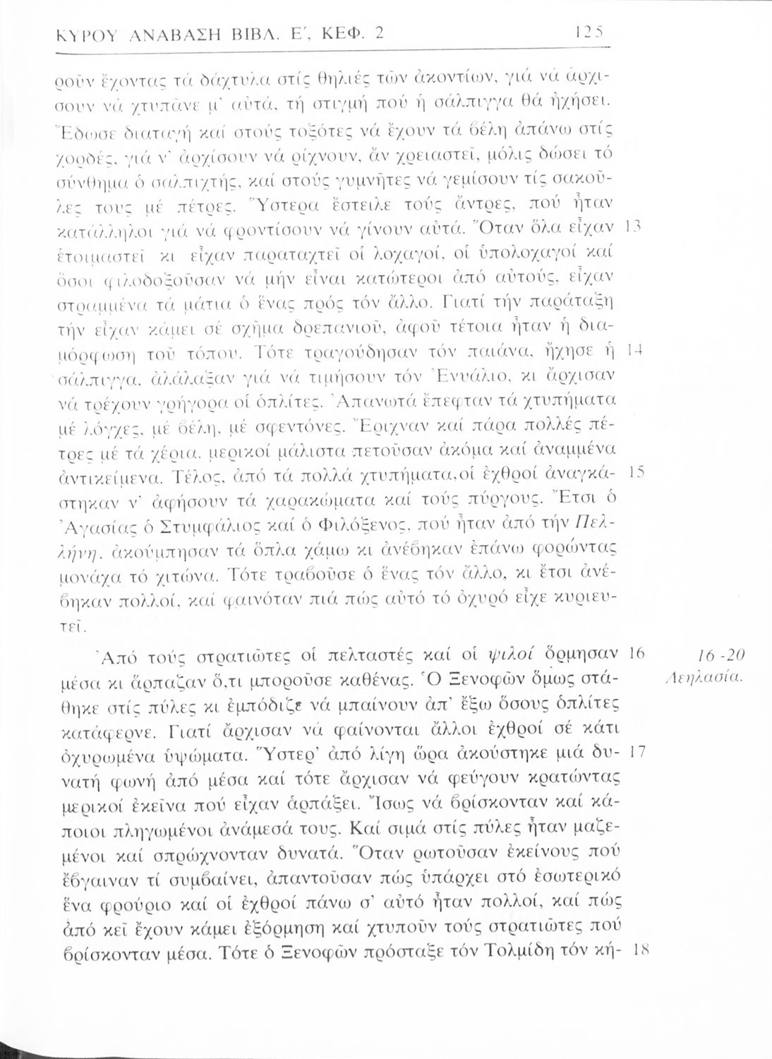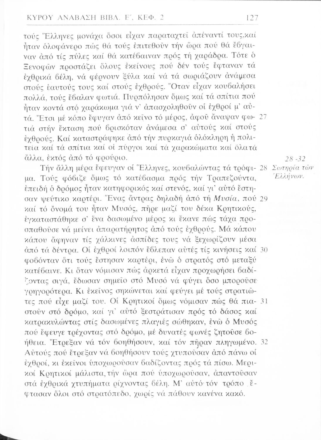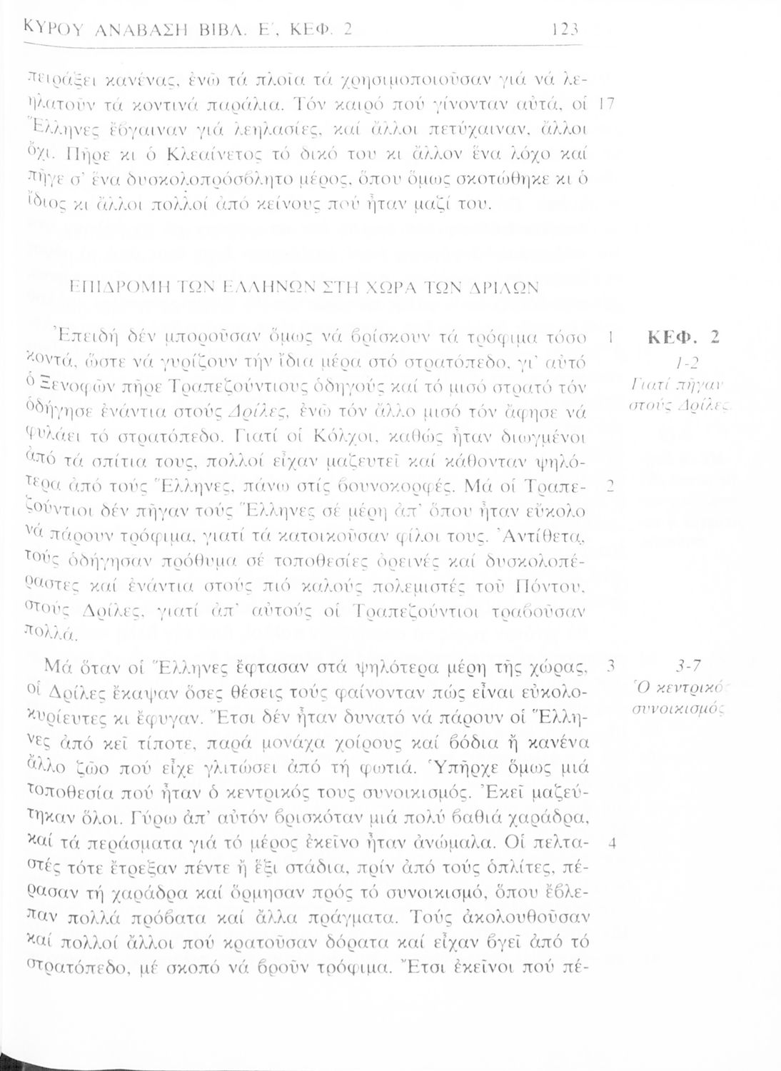 Σχολικό Εγχειρίδιο Αρχαίων Ελληνικών της Β' Γυμνασίου. Το βιβλίο αναφέρεται στο σύγγραμμα του Ξενοφώντα για την εκστρατεία του Κύρου κατά του Αρταξέρξη και κυρίως την κάθοδο ( επιστροφή) των Μυρίων. Στο ...