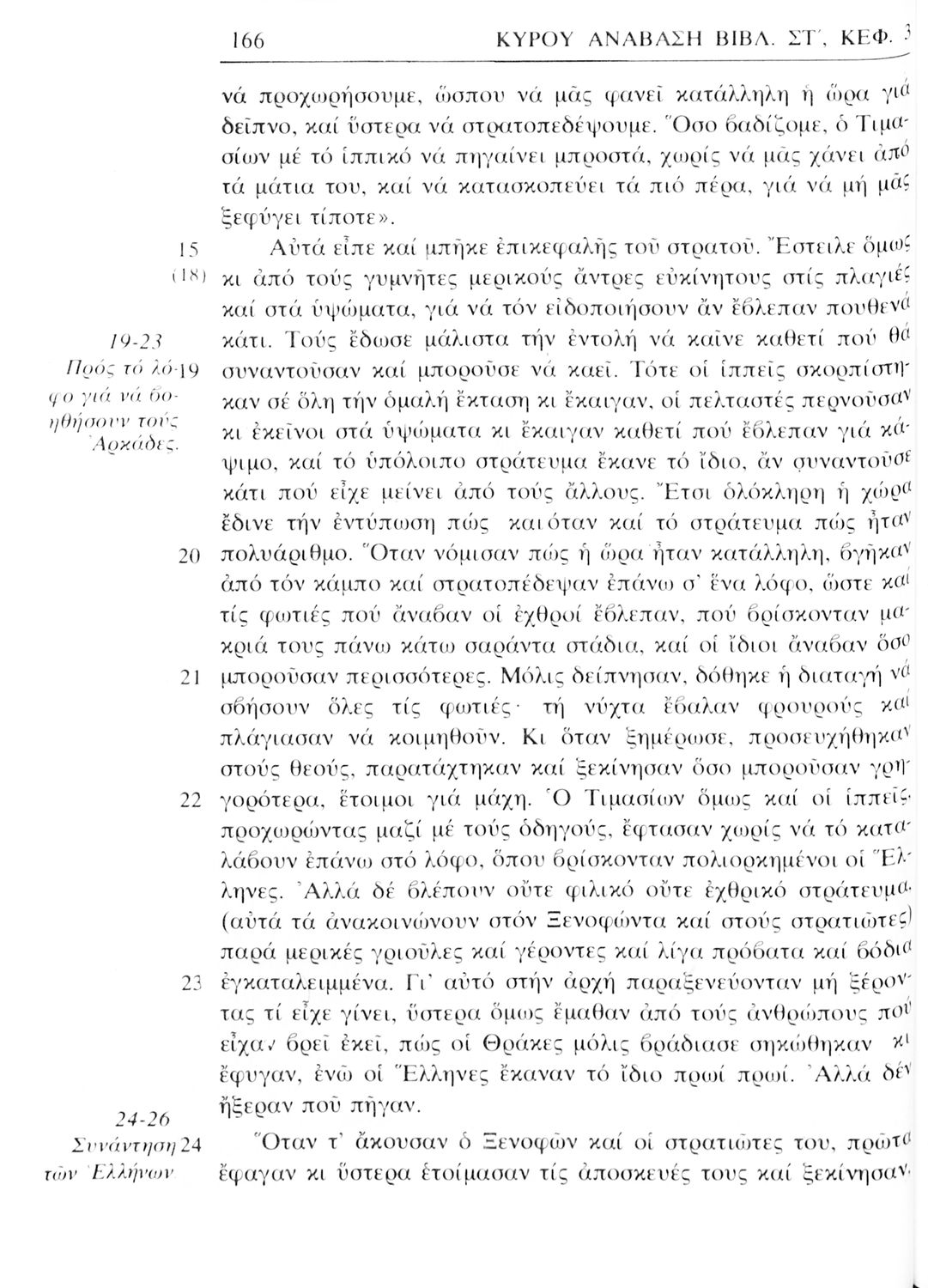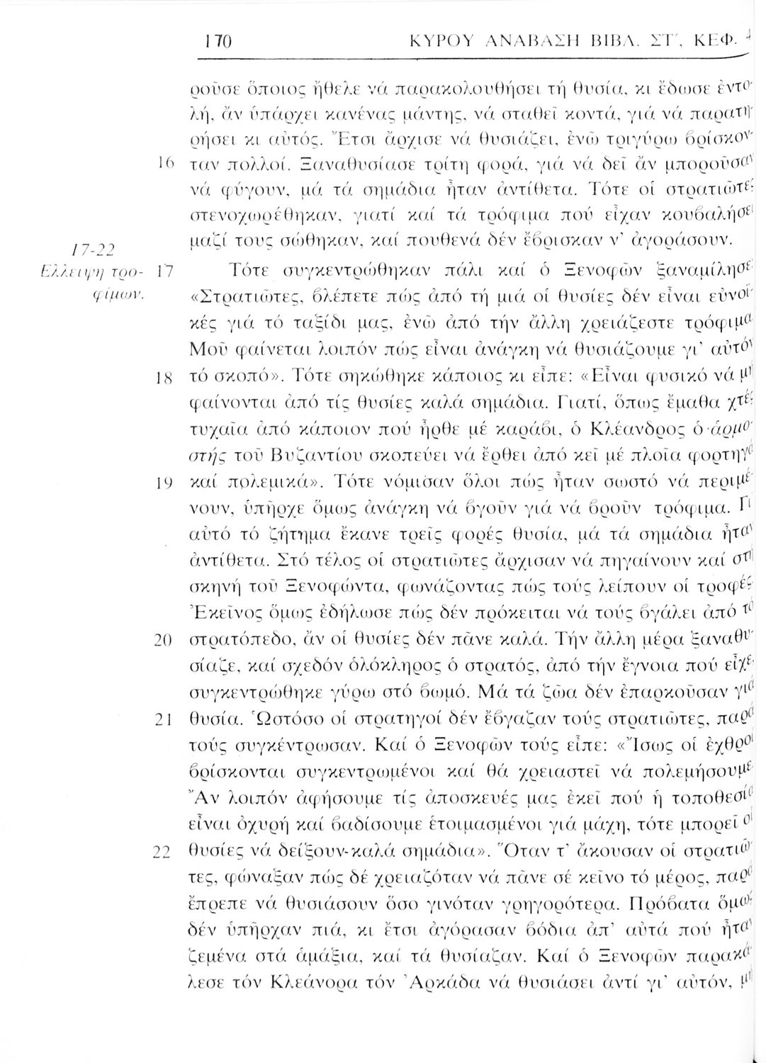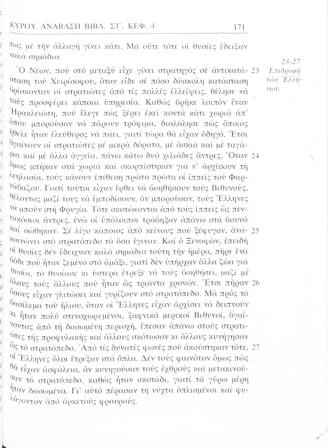 Σχολικό εγχειρίδιο Αρχαίων Ελληνικών α΄ Γυμνασίου που περιλαμβάνει μετάφραση του έργου του Ξενοφώντα Κύρου Ανάβασις, εισαγωγικά σχόλια για τη ζωή και το έργο του, και ερμηνευτικές παρατηρήσεις.