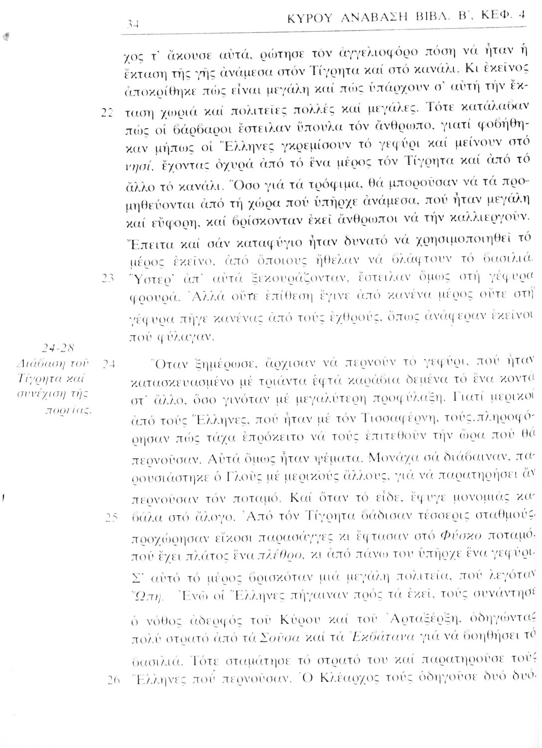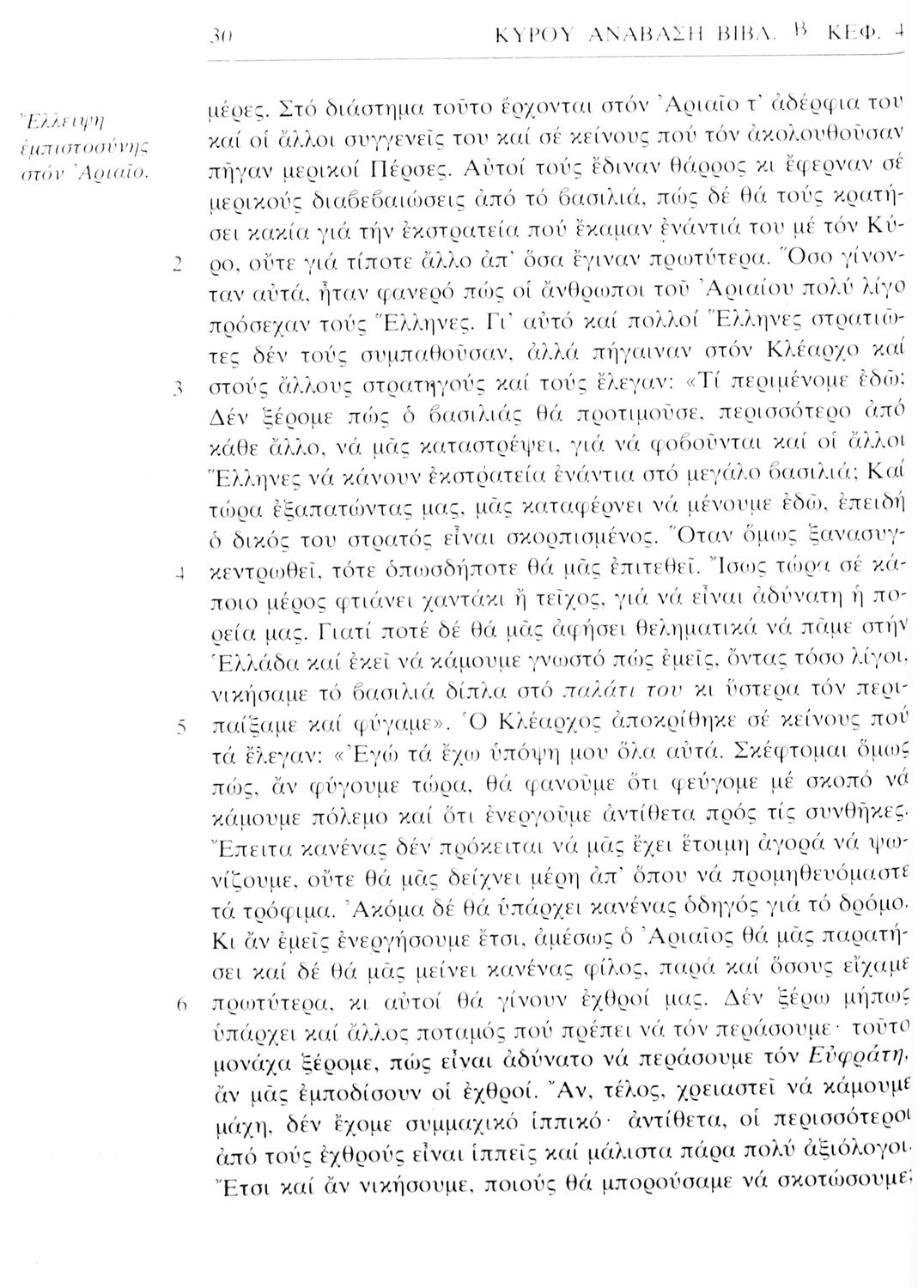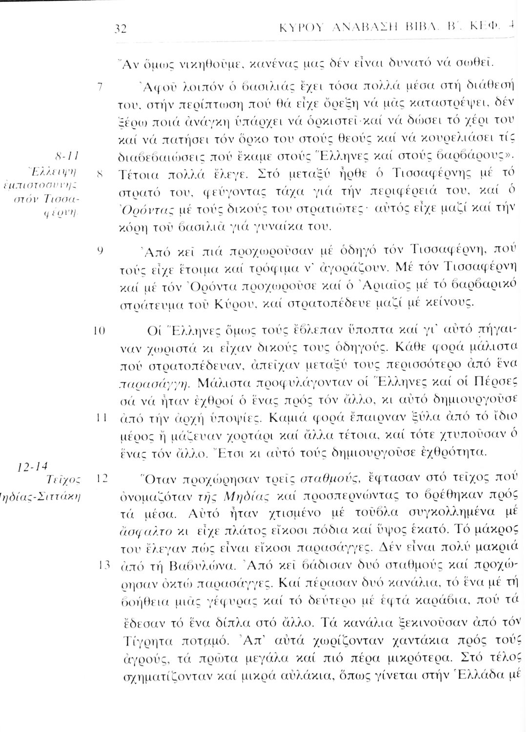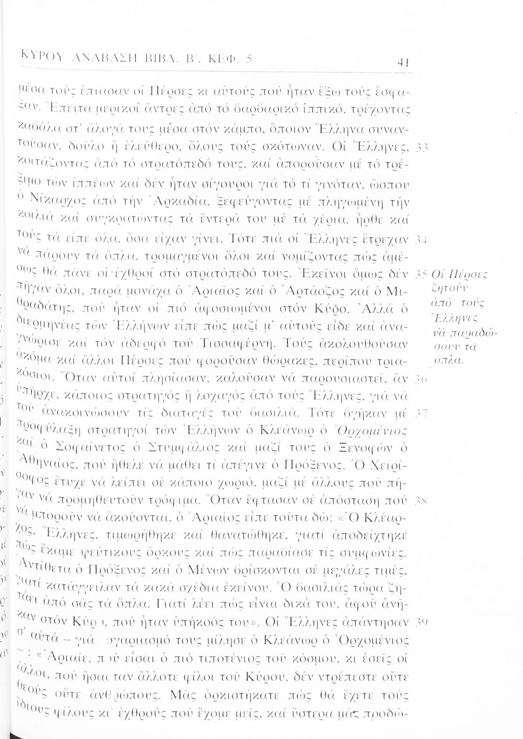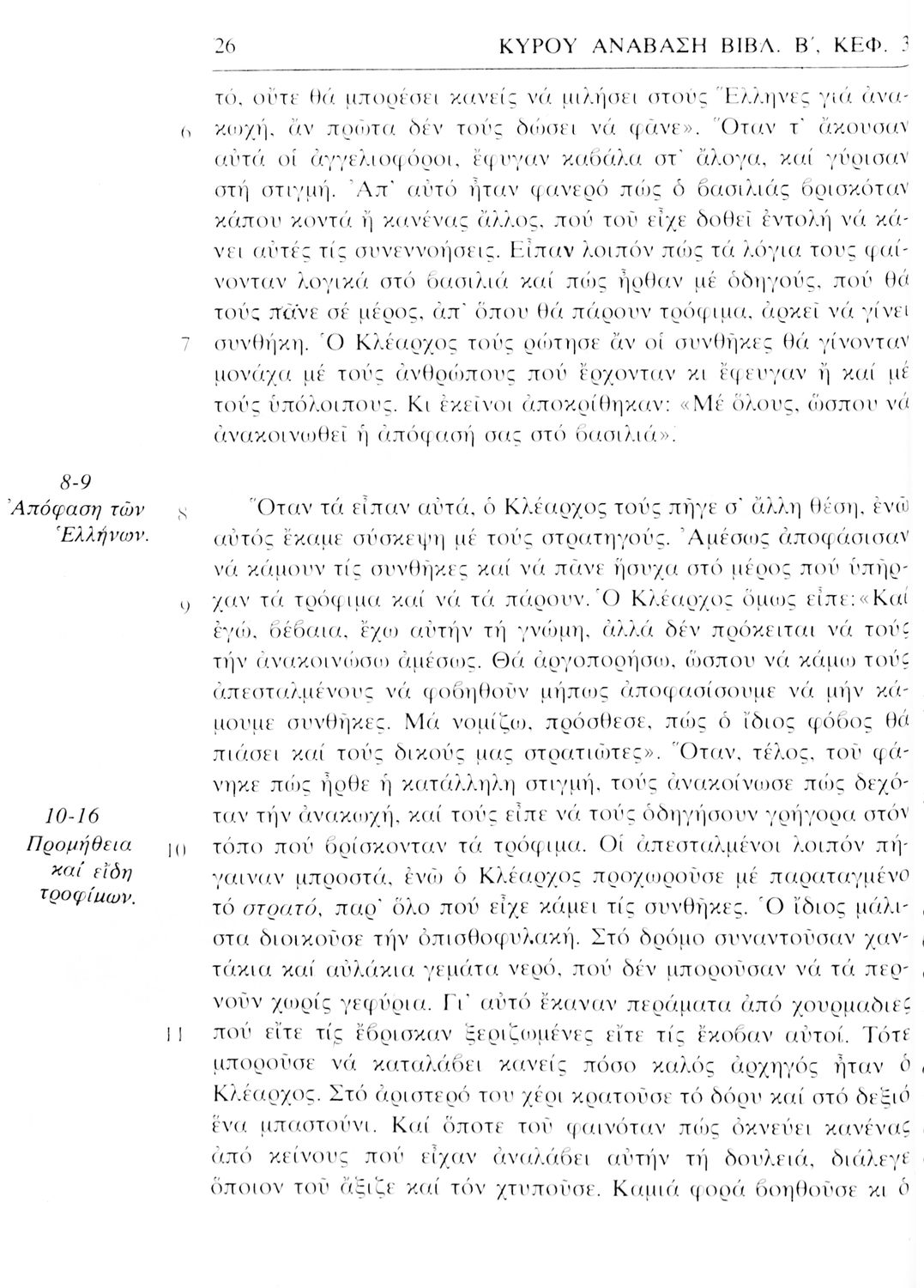 Σχολικό εγχειρίδιο Αρχαίων Ελληνικών α΄ Γυμνασίου που περιλαμβάνει μετάφραση του έργου του Ξενοφώντα Κύρου Ανάβασις, εισαγωγικά σχόλια για τη ζωή και το έργο του, και ερμηνευτικές παρατηρήσεις.