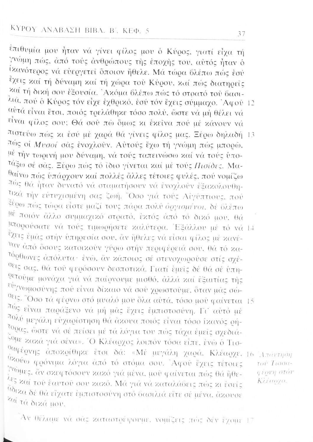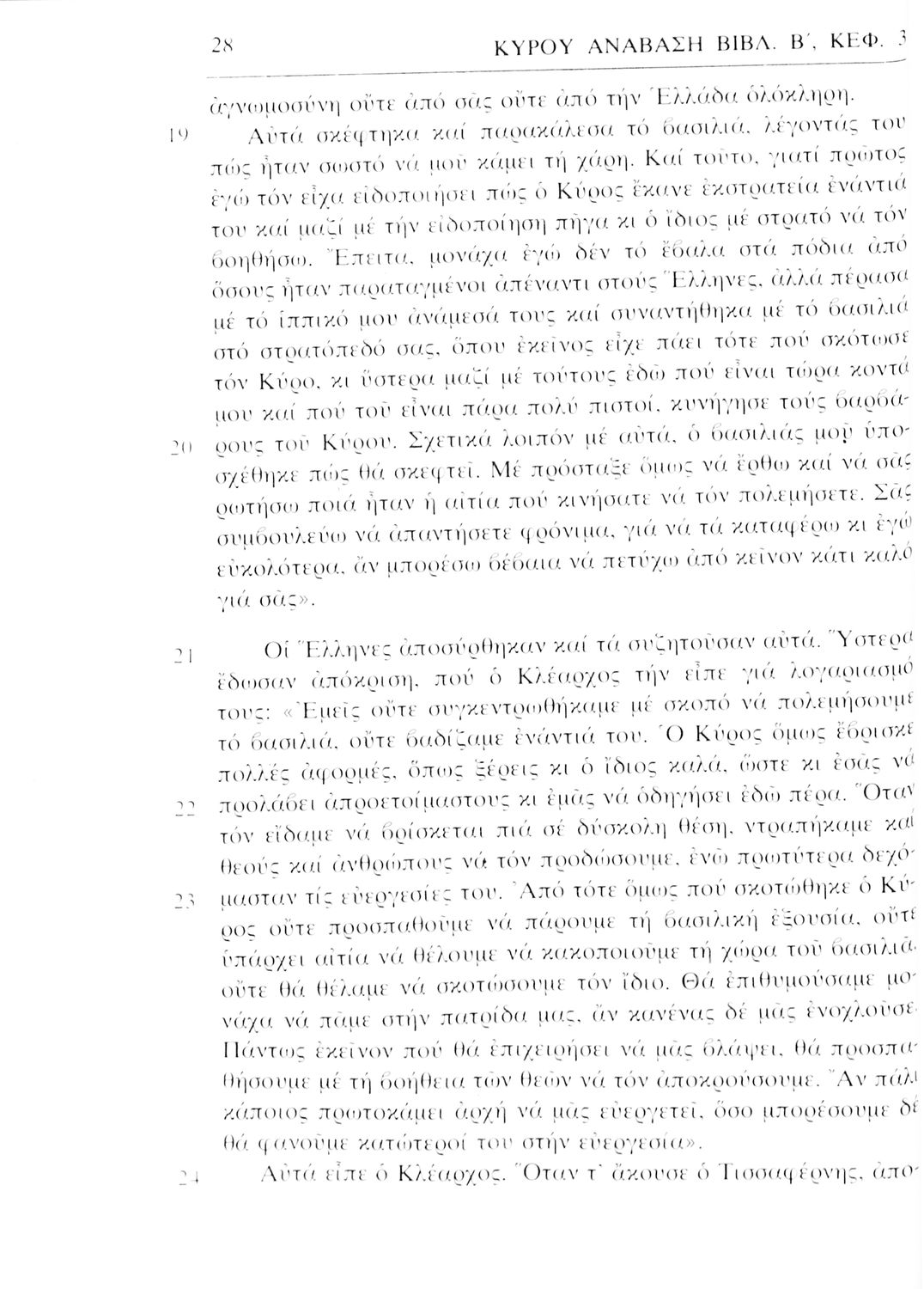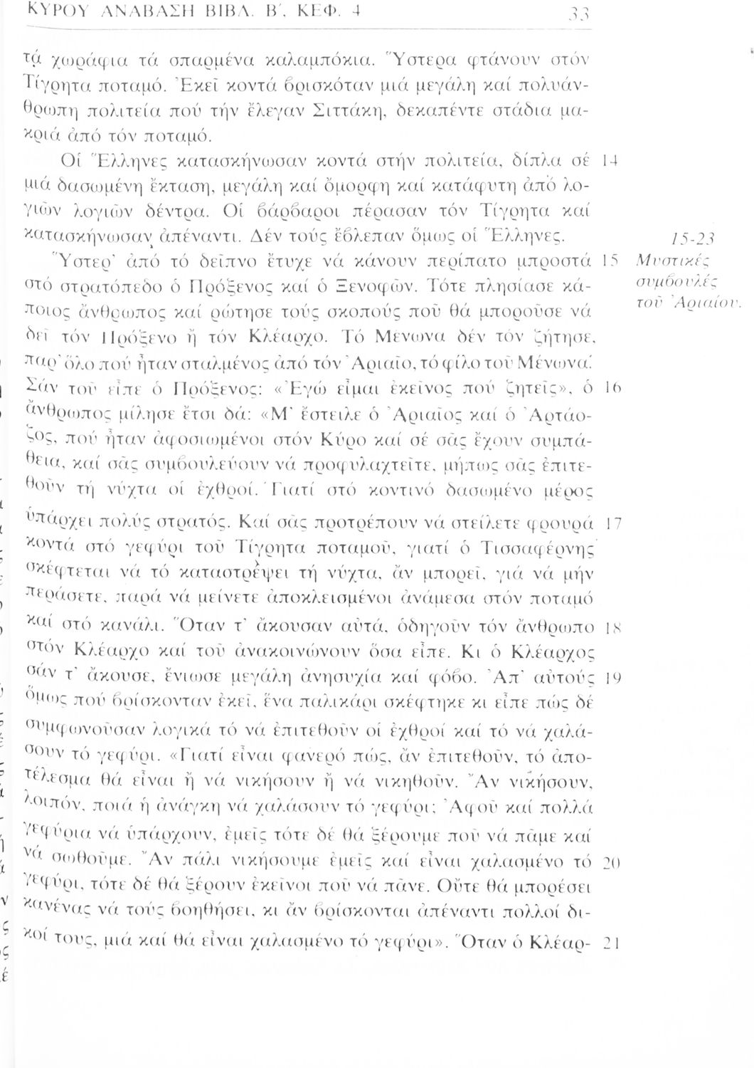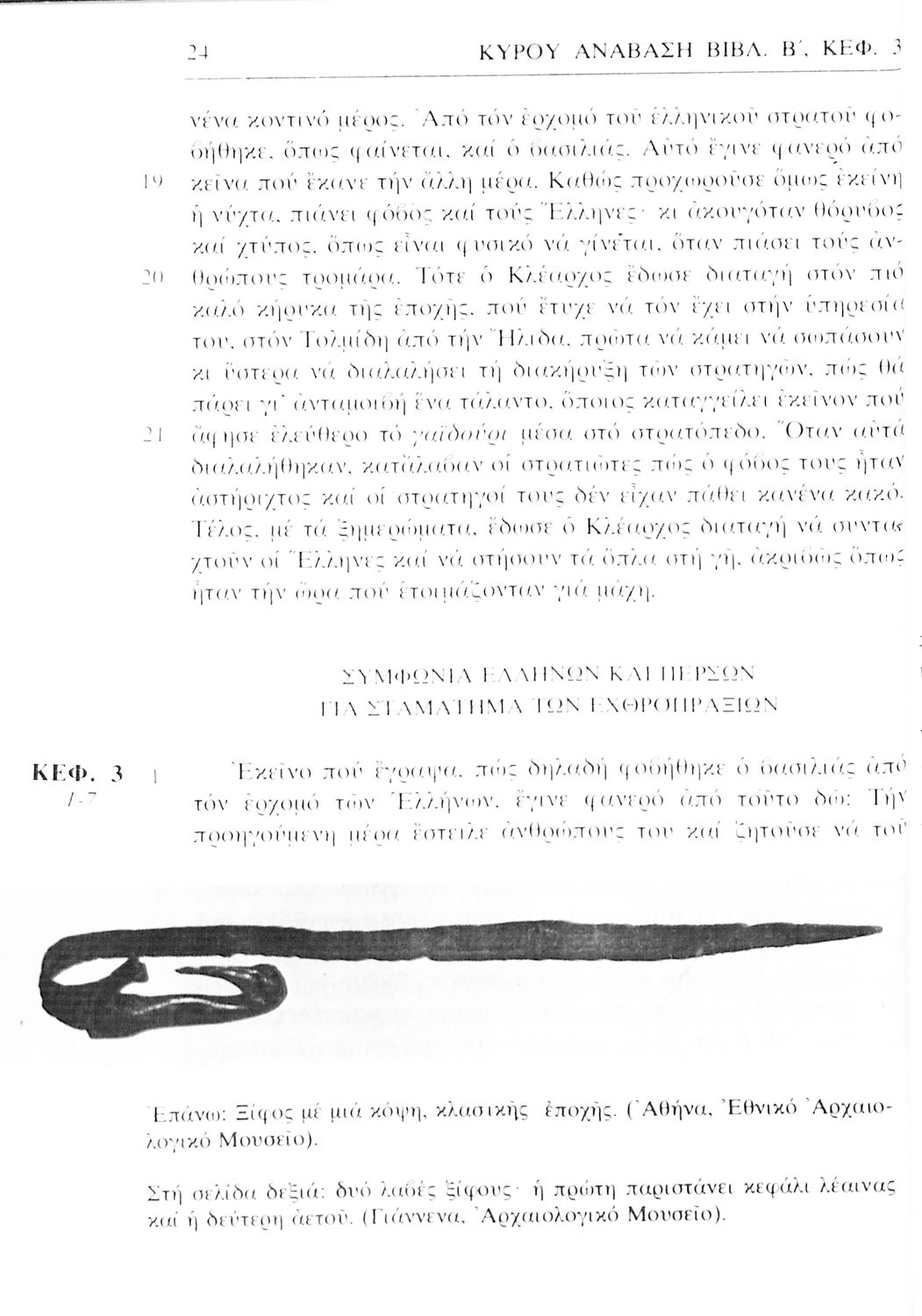Σχολικό Εγχειρίδιο Αρχαίων Ελληνικών της Β' Γυμνασίου. Το βιβλίο αναφέρεται στο σύγγραμμα του Ξενοφώντα για την εκστρατεία του Κύρου κατά του Αρταξέρξη και κυρίως την κάθοδο ( επιστροφή) των Μυρίων. Στο ...