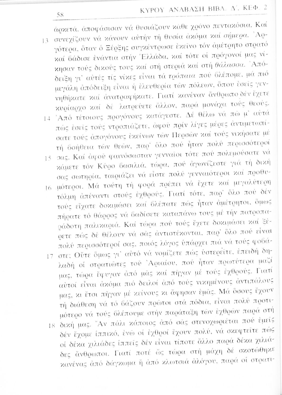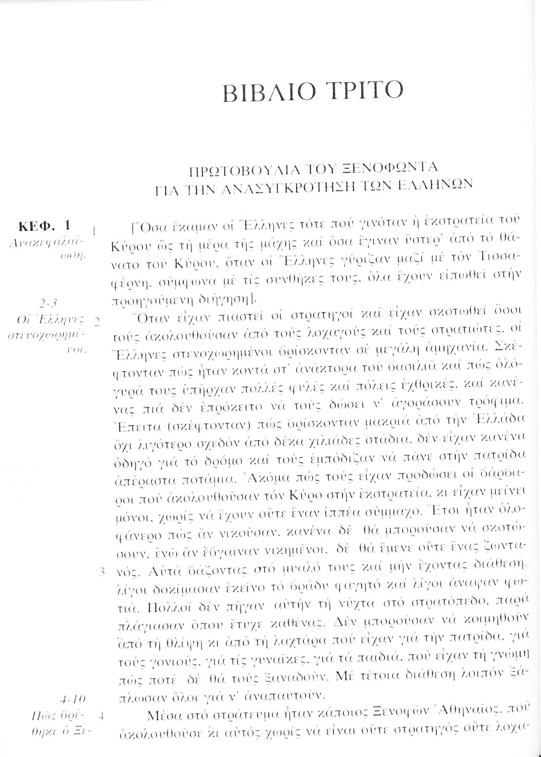 Σχολικό Εγχειρίδιο Αρχαίων Ελληνικών της Β' Γυμνασίου. Το βιβλίο αναφέρεται στο σύγγραμμα του Ξενοφώντα για την εκστρατεία του Κύρου κατά του Αρταξέρξη και κυρίως την κάθοδο ( επιστροφή) των Μυρίων. Στο ...