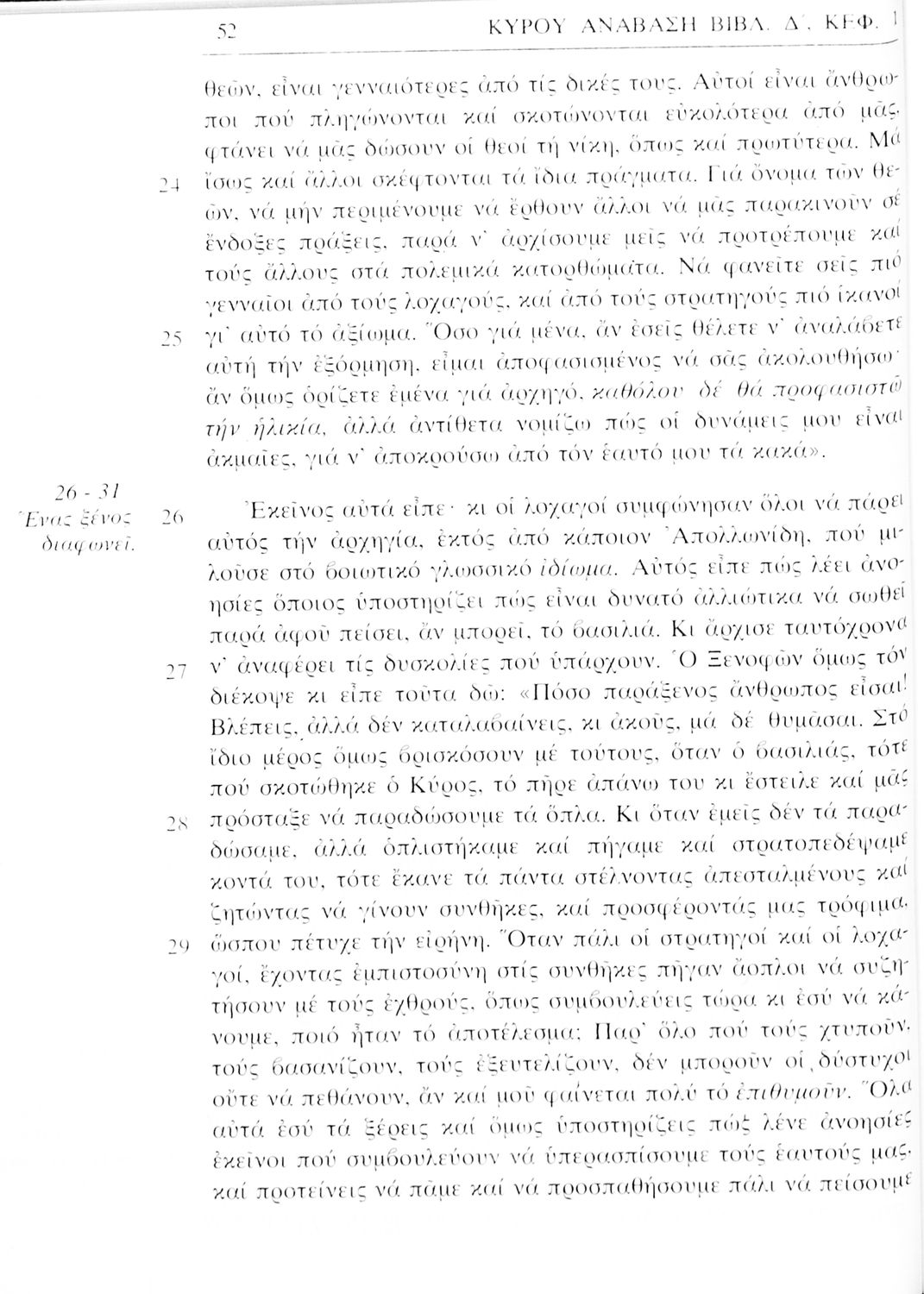 Σχολικό εγχειρίδιο Αρχαίων Ελληνικών της Α' Γυμνασίου. Το βιβλίο παρουσιάζει από μετάφραση το έργο του Ξενοφώντα “Κύρου Ανάβασις” στο οποίο περιγράφεται η εκστρατεία του Κύρου για την κατάληψη της εξουσίας από