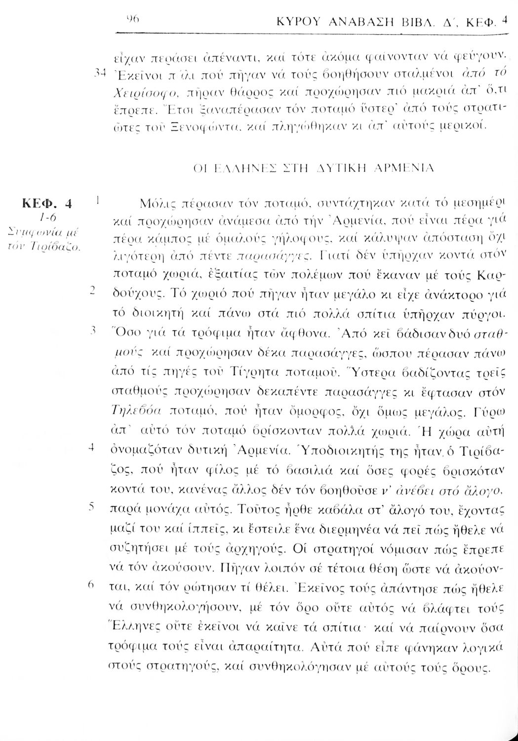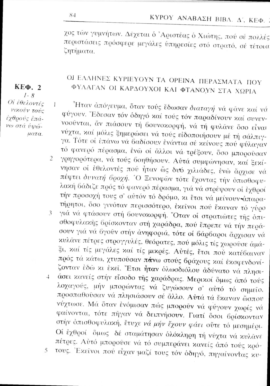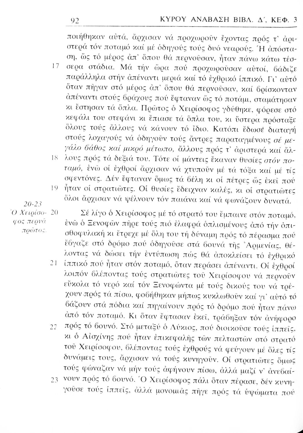 Σχολικό εγχειρίδιο Αρχαίων Ελληνικών α΄ Γυμνασίου που περιλαμβάνει μετάφραση του έργου του Ξενοφώντα Κύρου Ανάβασις, εισαγωγικά σχόλια για τη ζωή και το έργο του, και ερμηνευτικές παρατηρήσεις.