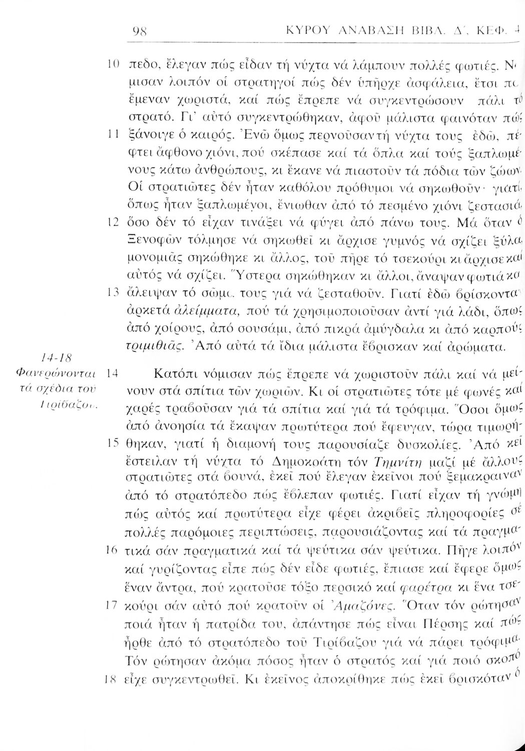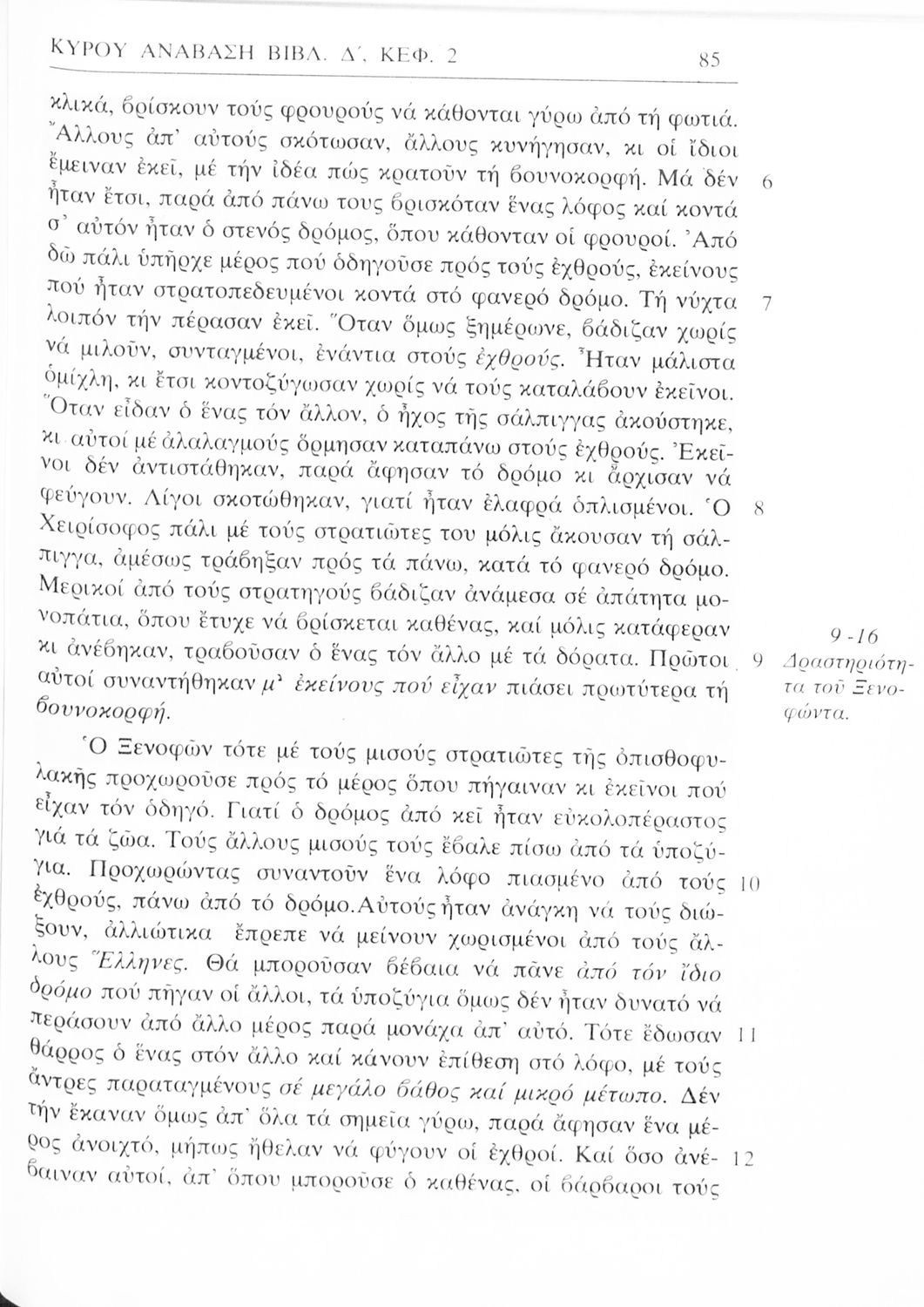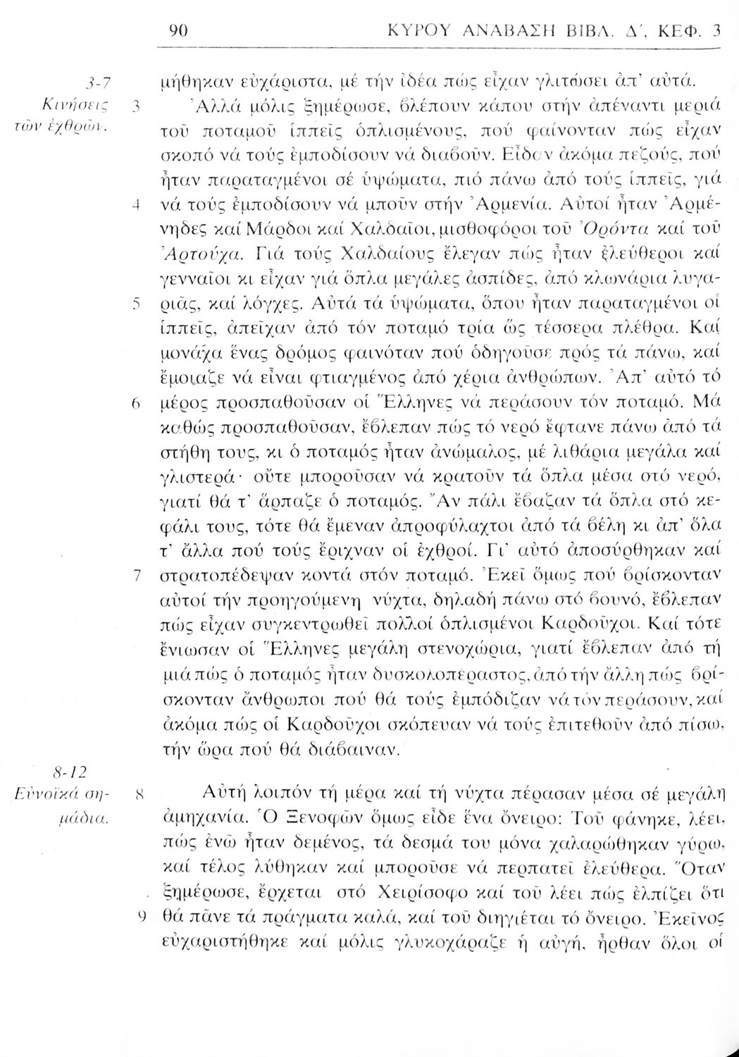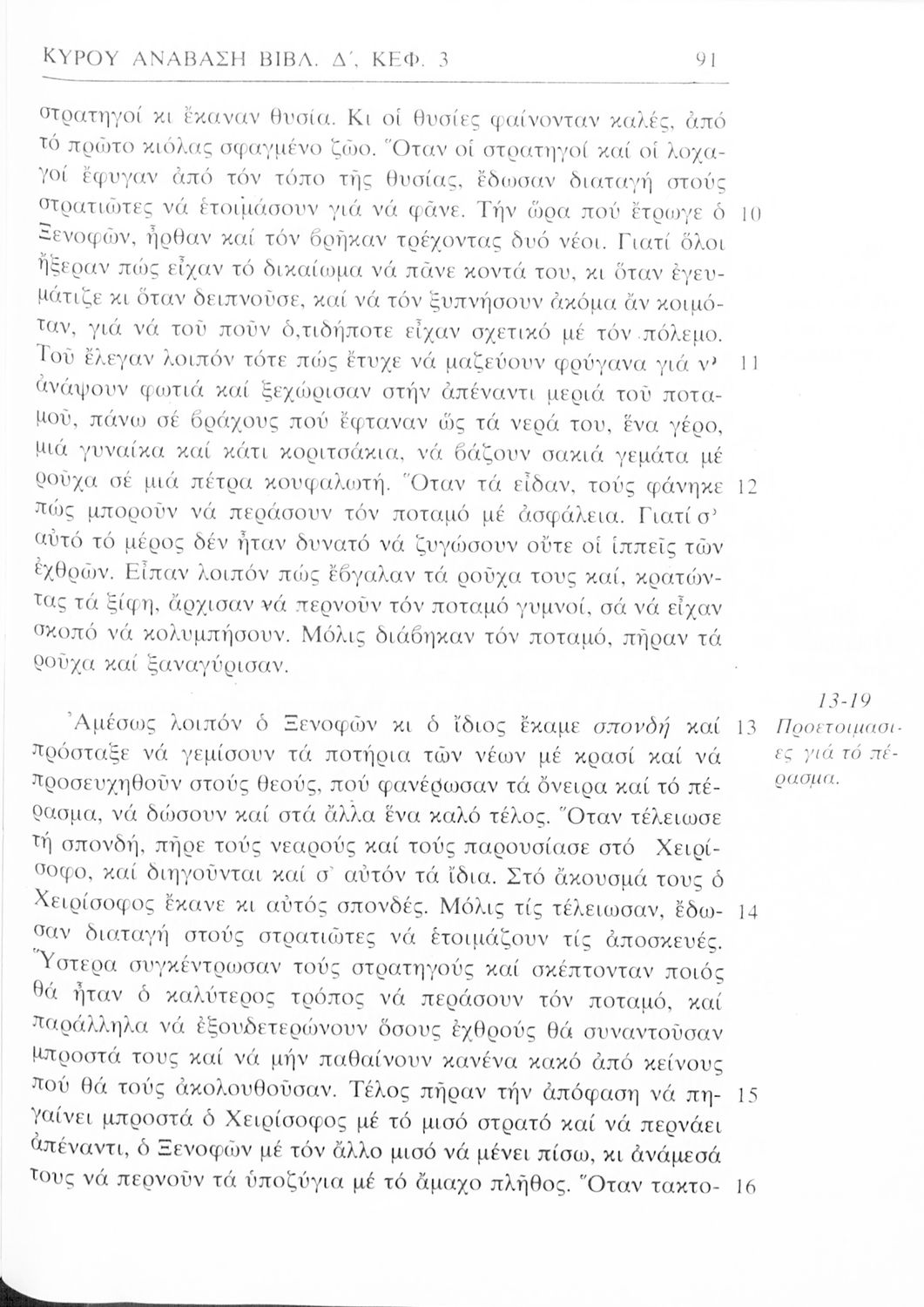 Σχολικό εγχειρίδιο Αρχαίων Ελληνικών α΄ Γυμνασίου που περιλαμβάνει μετάφραση του έργου του Ξενοφώντα Κύρου Ανάβασις, εισαγωγικά σχόλια για τη ζωή και το έργο του, και ερμηνευτικές παρατηρήσεις.