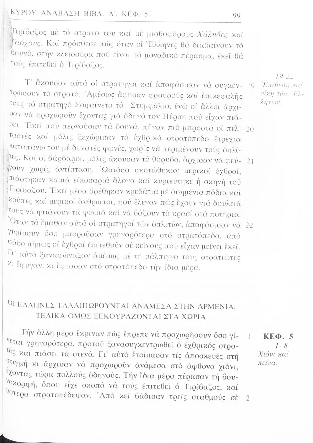 Σχολικό Εγχειρίδιο Αρχαίων Ελληνικών της Β' Γυμνασίου. Το βιβλίο αναφέρεται στο σύγγραμμα του Ξενοφώντα για την εκστρατεία του Κύρου κατά του Αρταξέρξη και κυρίως την κάθοδο ( επιστροφή) των Μυρίων. Στο ...