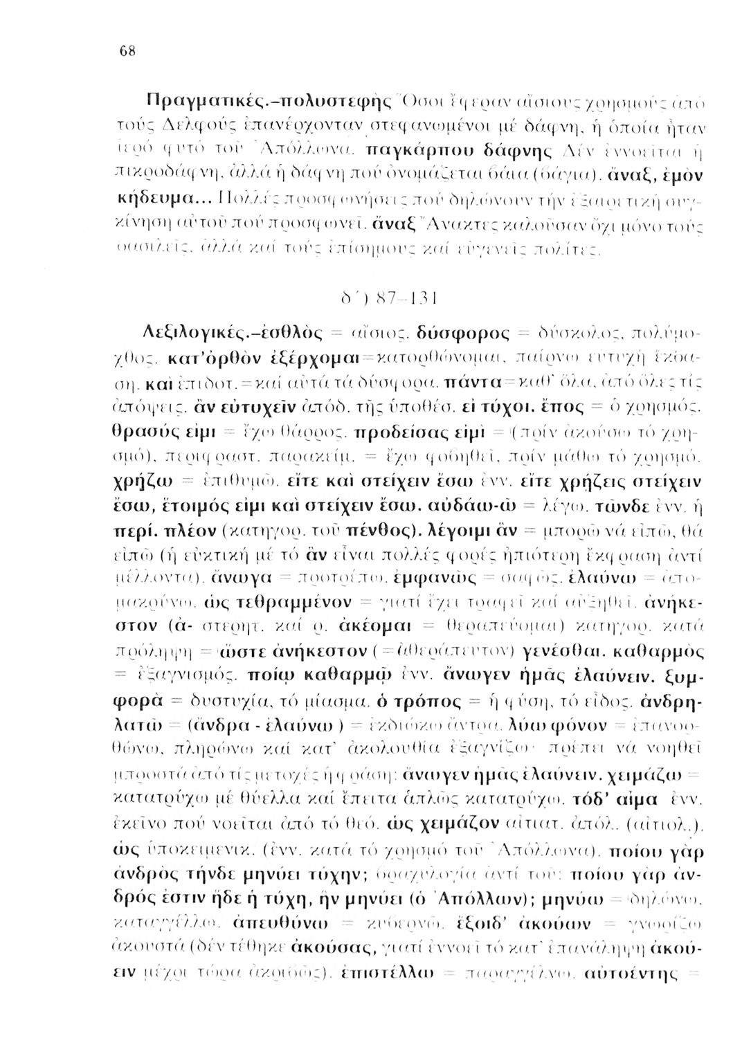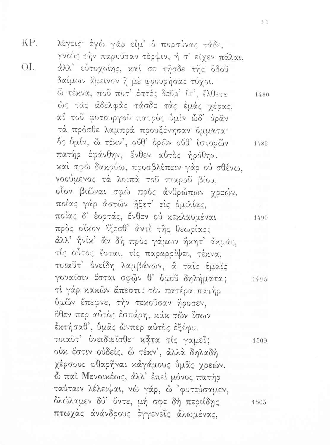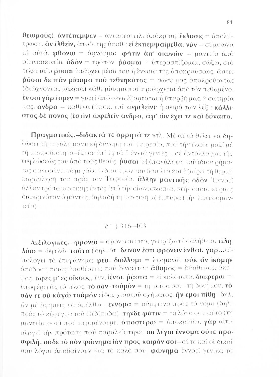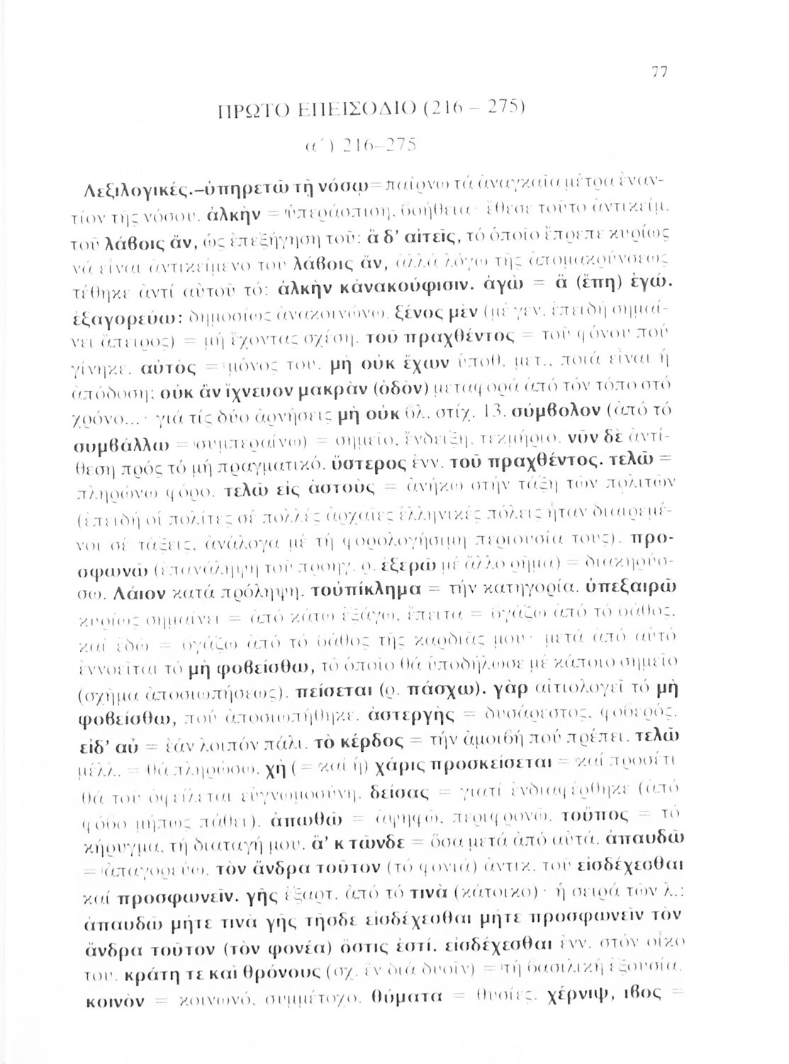Σχολικό εγχειρίδιο Αρχαίων Ελληνικών της Γ΄ Λυκείου το οποίο περιλαμβάνει το έργο του Σοφοκλή 'Οιδίπους Τύραννος'. Το βιβλίο ξεκινάει με μια εισαγωγή στην αρχαία ελληνική τραγωδία και βιογραφικά στοιχεία του Σοφοκλή. Στη συνέχεια παρουσιάζει το εν λόγω κείμενο το οποίο συνοδεύεται από ερμηνευτικές και γλωσσικές σημειώσεις.