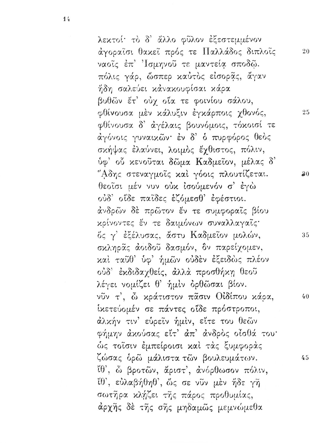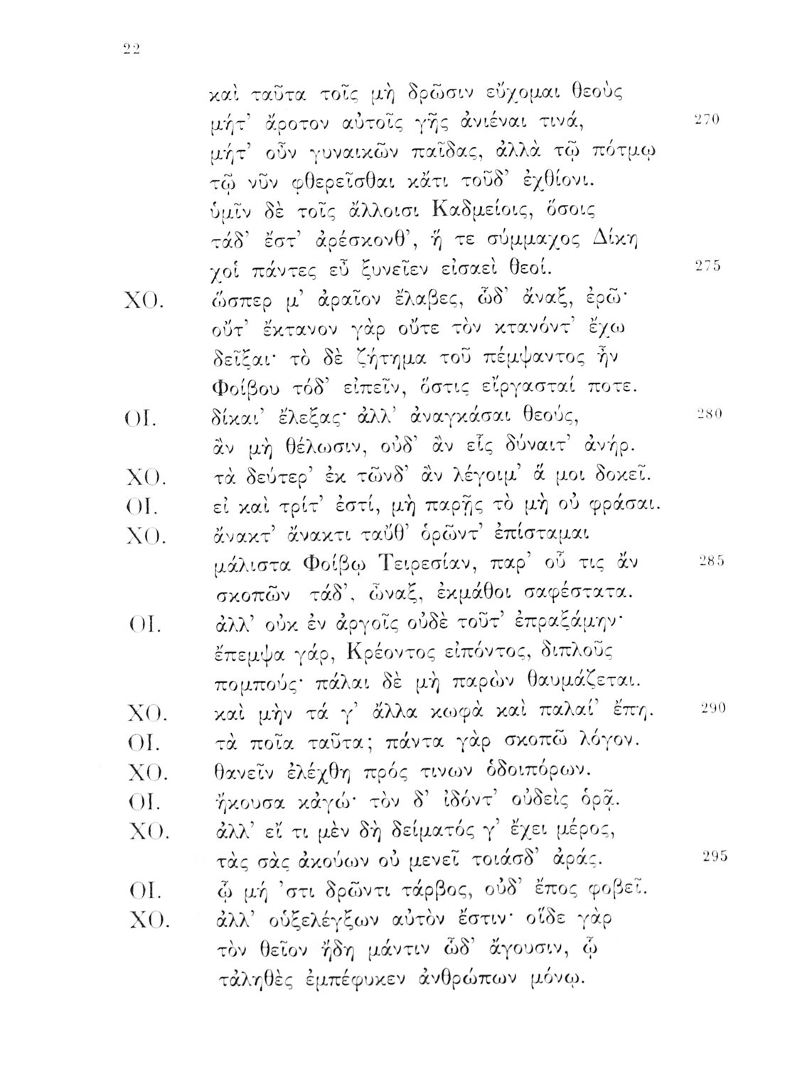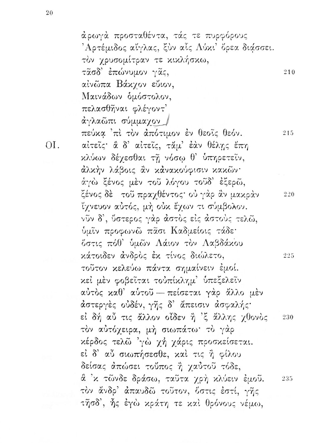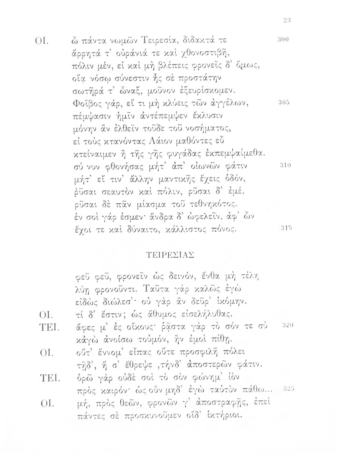 Σχολικό εγχειρίδιο Αρχαίων Ελληνικών της Γ΄ Λυκείου το οποίο περιλαμβάνει το έργο του Σοφοκλή 'Οιδίπους Τύραννος'. Το βιβλίο ξεκινάει με μια εισαγωγή στην αρχαία ελληνική τραγωδία και βιογραφικά στοιχεία του Σοφοκλή. Στη συνέχεια παρουσιάζει το εν λόγω κείμενο το οποίο συνοδεύεται από ερμηνευτικές και γλωσσικές σημειώσεις.