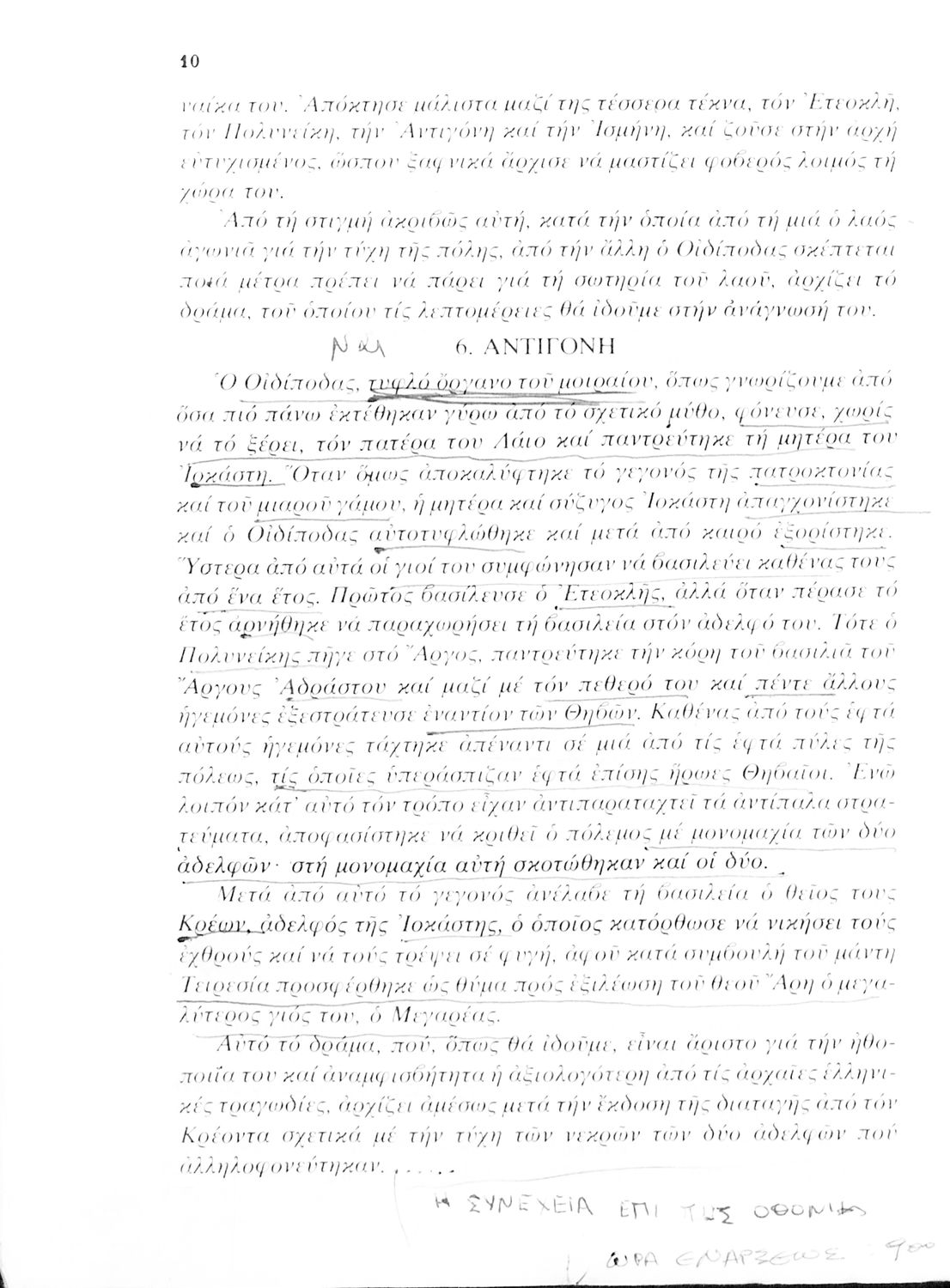 Σχολικό εγχειρίδιο Αρχαίων Ελληνικών που περιλαμβάνει τις τραγωδίες του Σοφοκλή Οιδίπους Τύραννος και Αντιγόνη, εισαγωγή και ερμηνευτικά σχόλια.