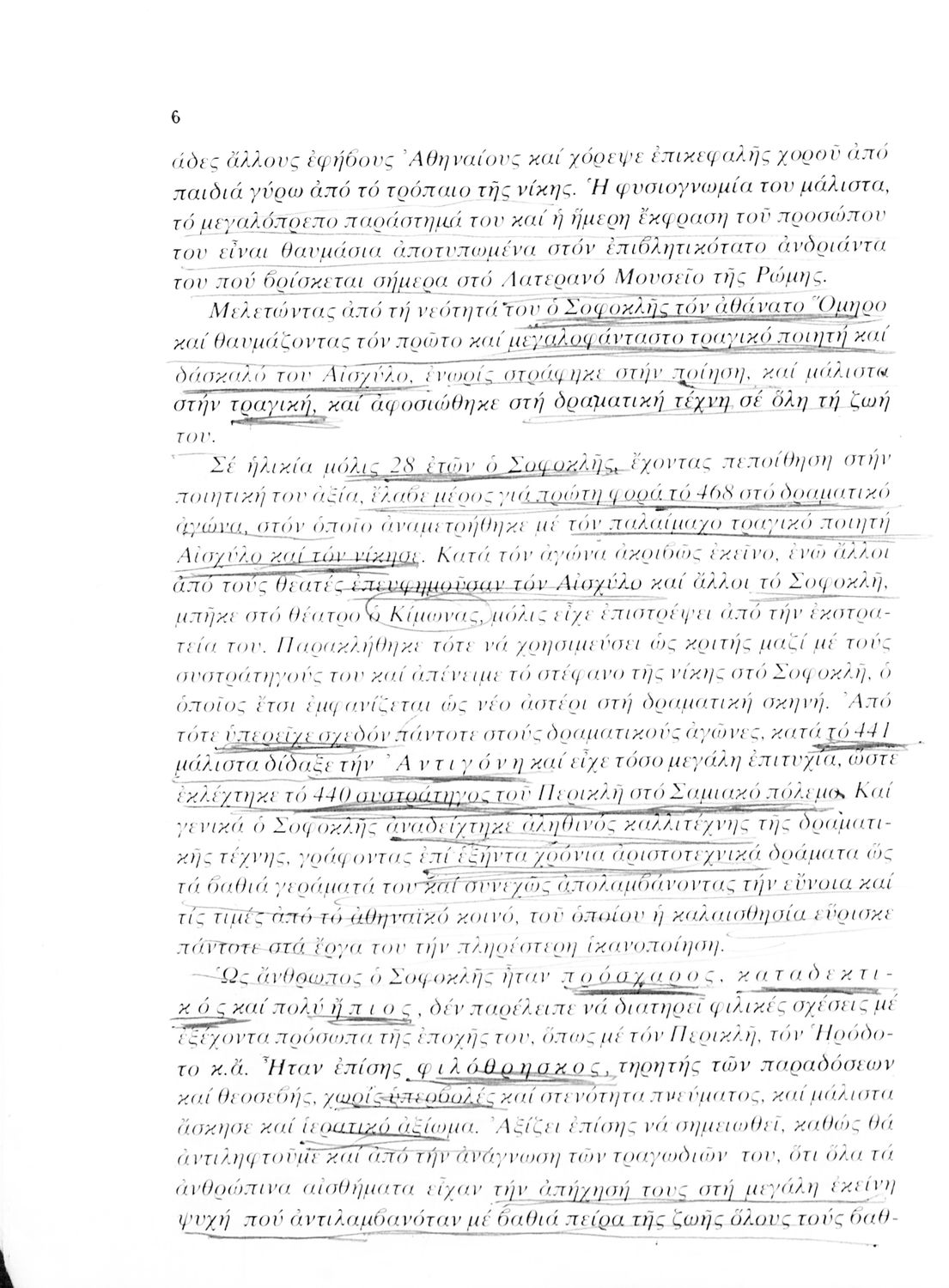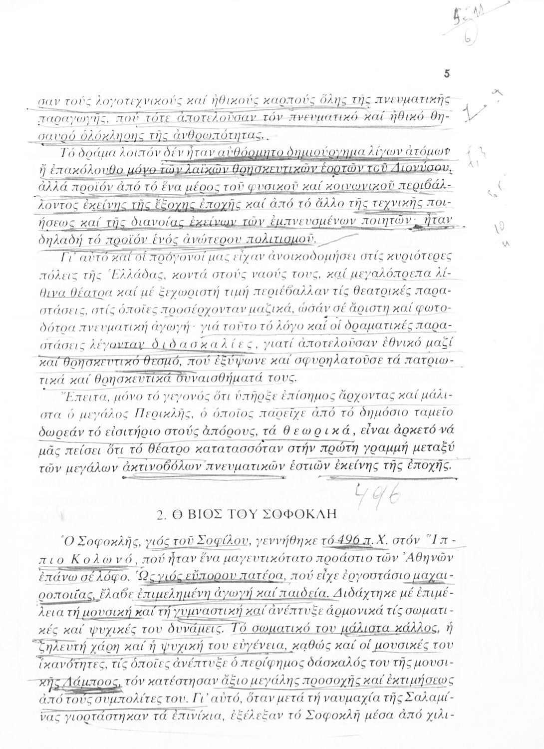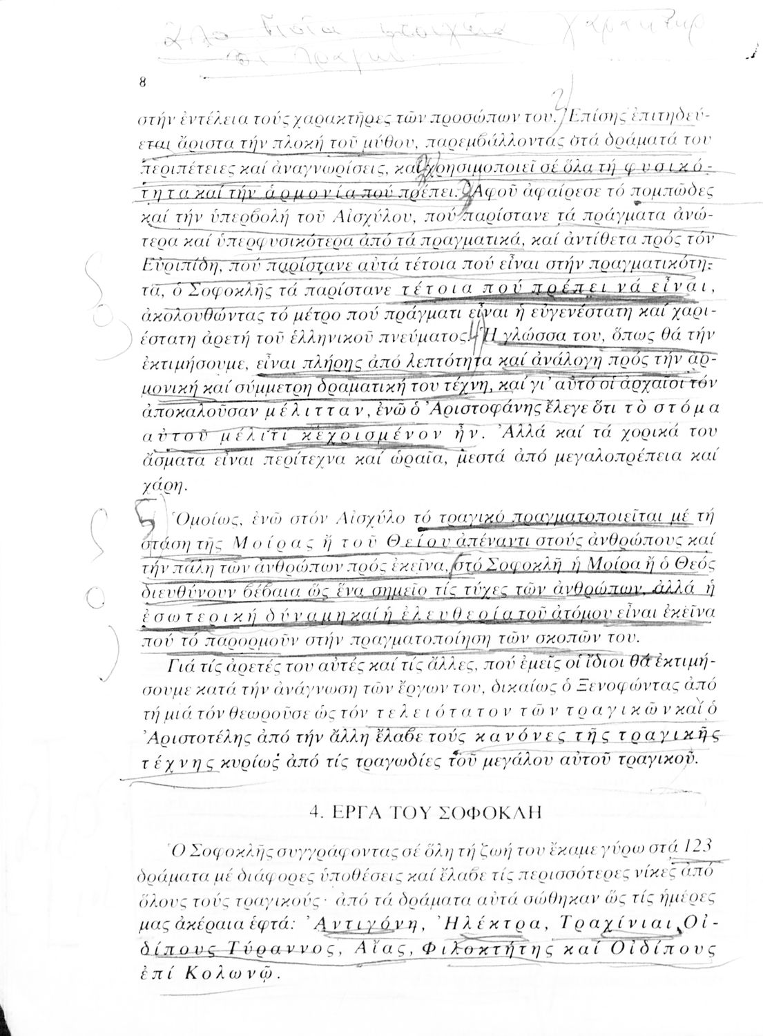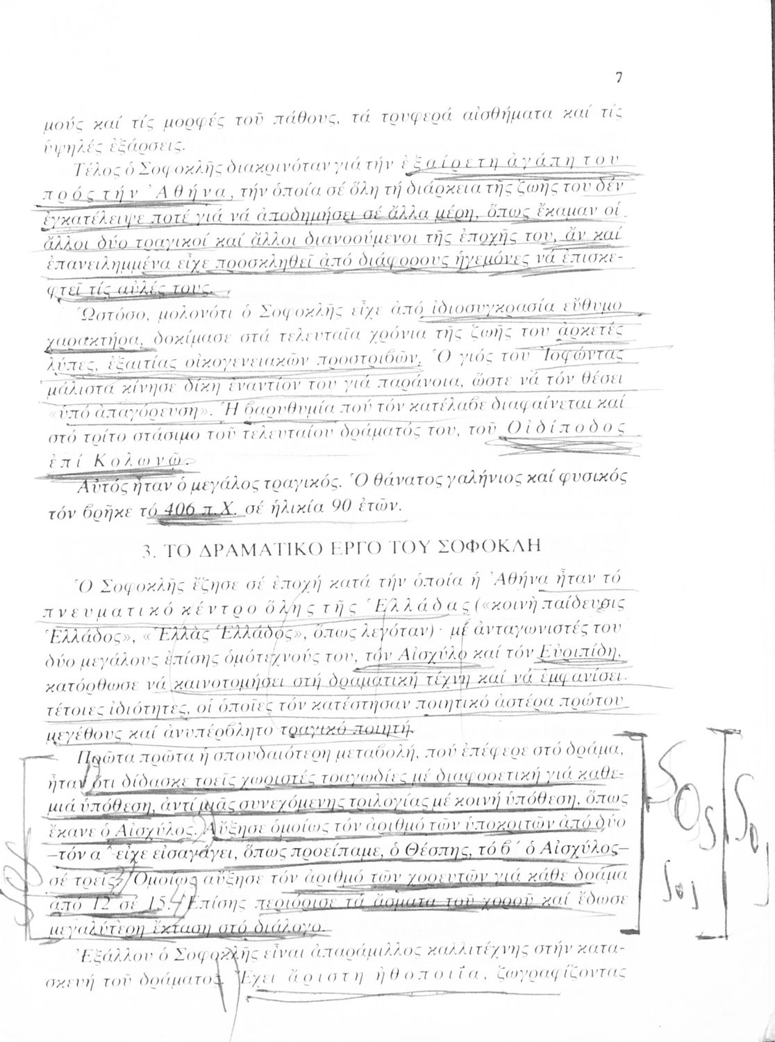 Σχολικό εγχειρίδιο Αρχαίων Ελληνικών για τη Γ΄ Λυκείου με πρωτότυπο κείμενο του Σοφοκλή. Το βιβλίο περιλαμβάνει εισαγωγή και ερμηνευτικές σημειώσεις στη Δημοτική. Σχόλια μαθητή στα περιθώρια.