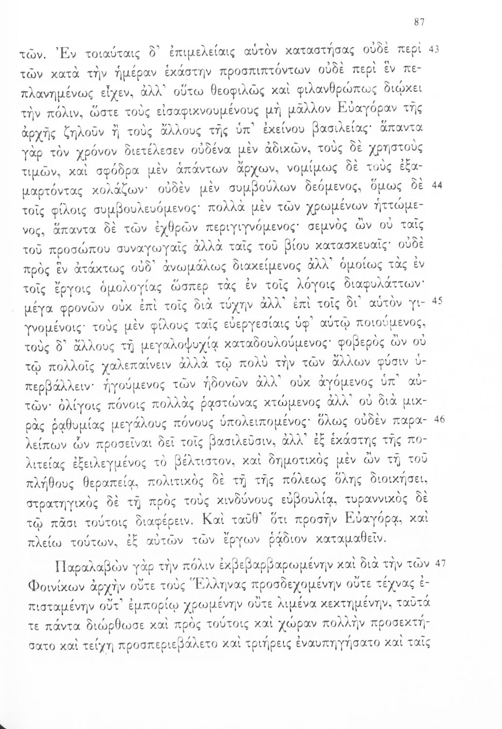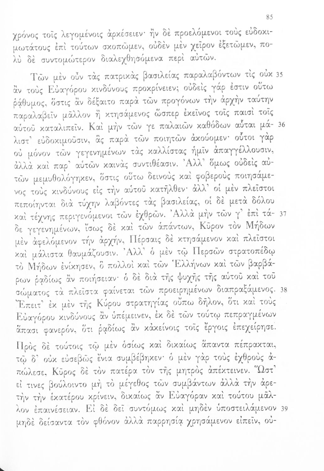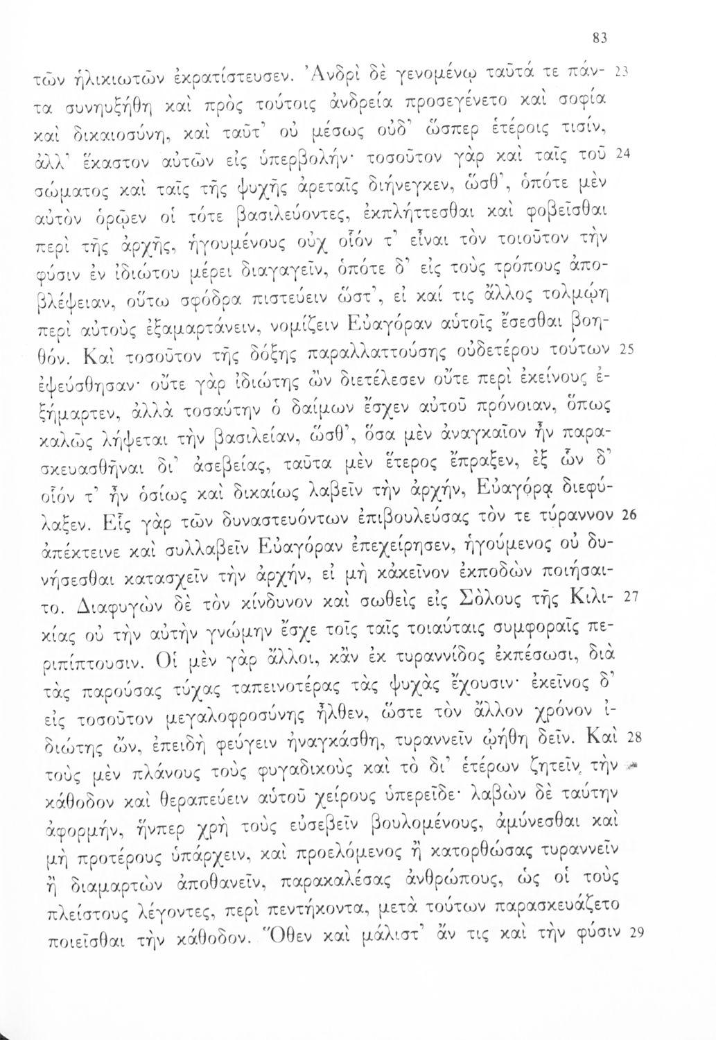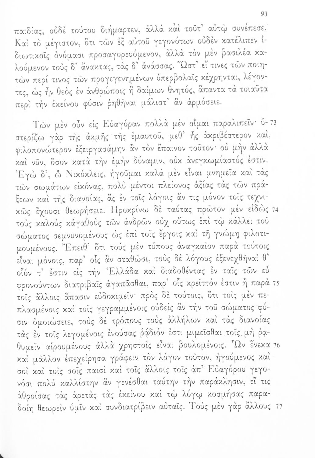 Σχολικό εγχειρίδιο Αρχαίων Ελληνικών Γ΄ Γυμνασίου που περιλαμβάνει εισαγωγή στη ζωή και το έργο του Ισοκράτη, τους Λόγους Προς Δημόνικον και Ευαγόρας και ερμηνευτικές σημειώσεις.