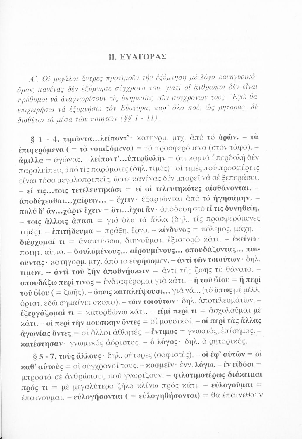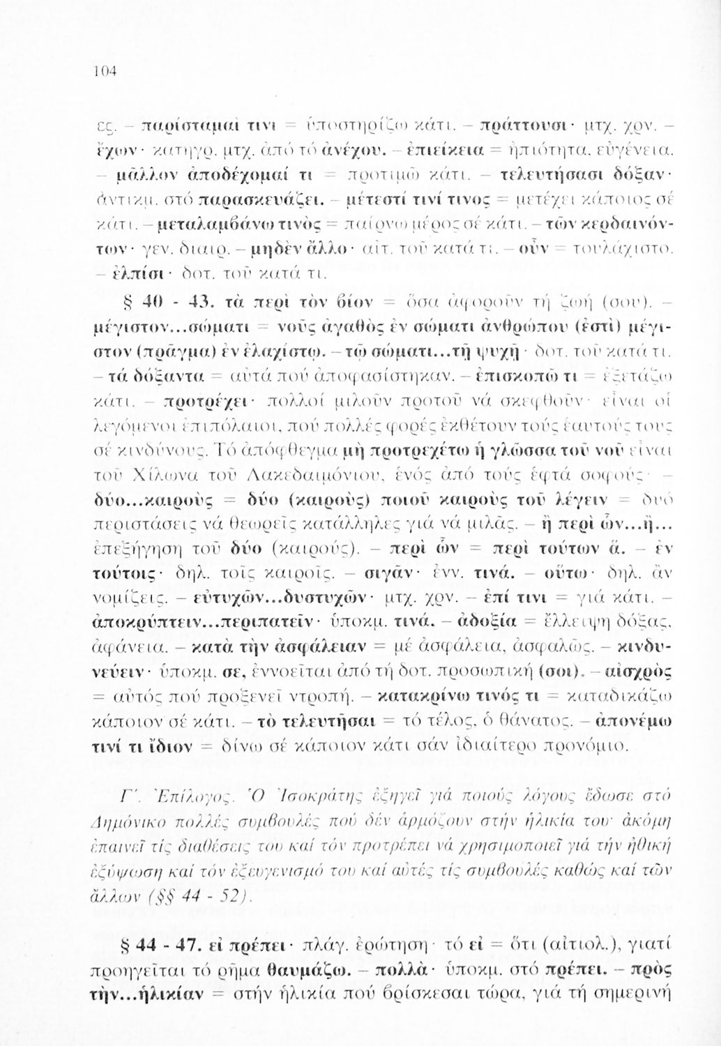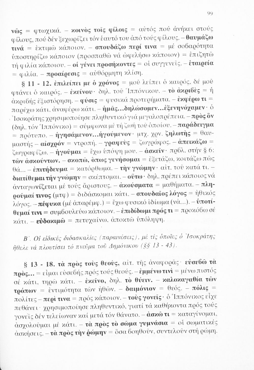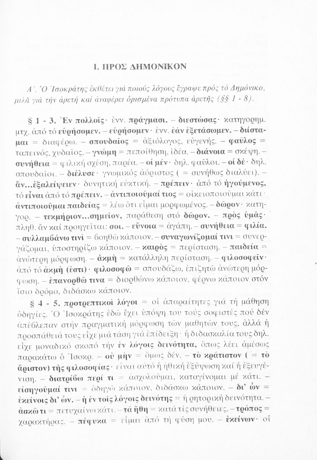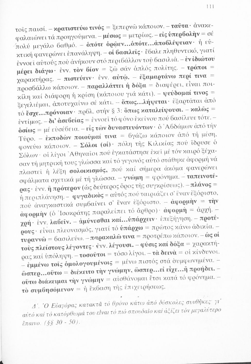 Σχολικό εγχειρίδιο Αρχαίων Ελληνικών Γ΄ Γυμνασίου που περιλαμβάνει εισαγωγή στη ζωή και το έργο του Ισοκράτη, τους Λόγους Προς Δημόνικον και Ευαγόρας και ερμηνευτικές σημειώσεις.
