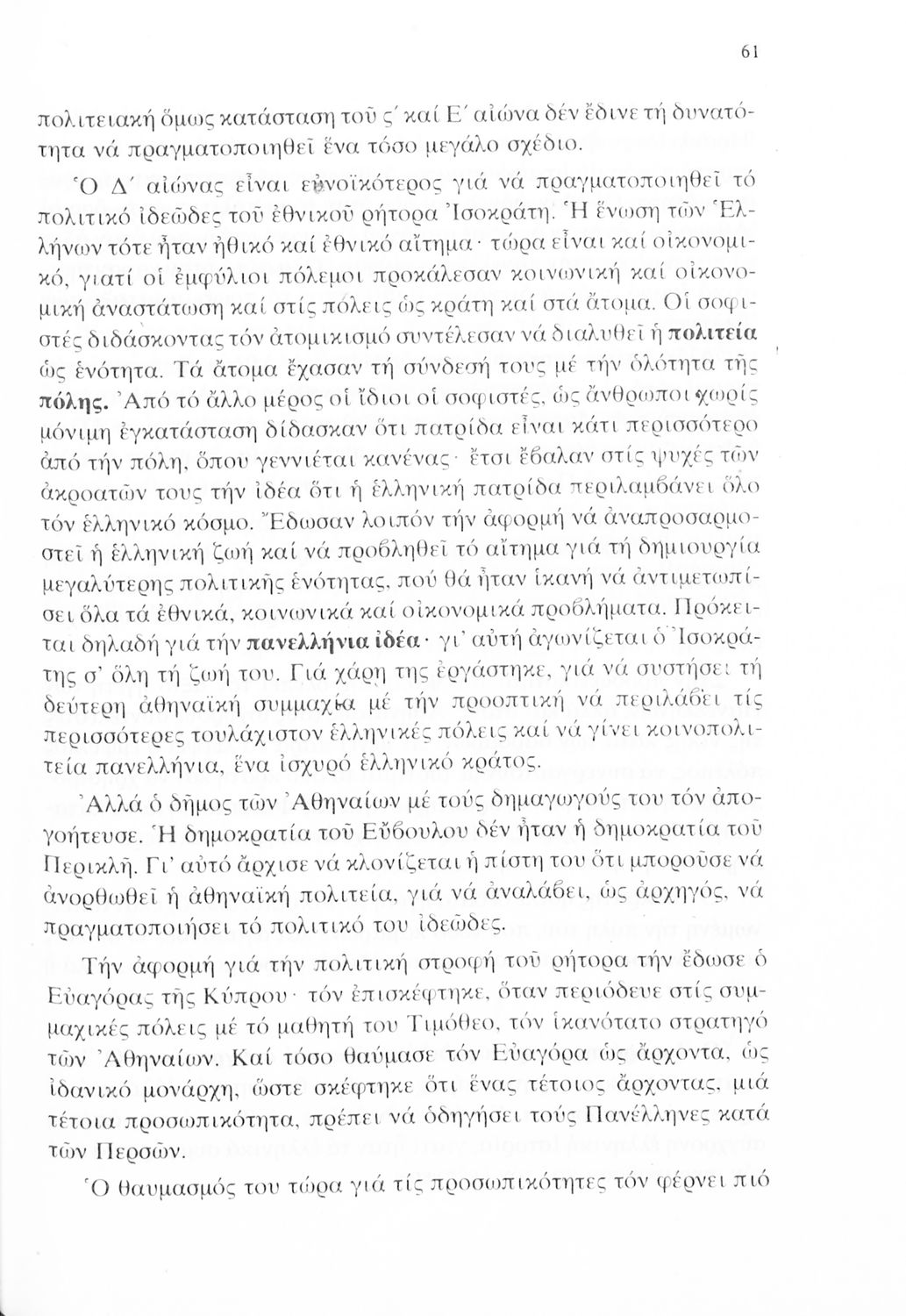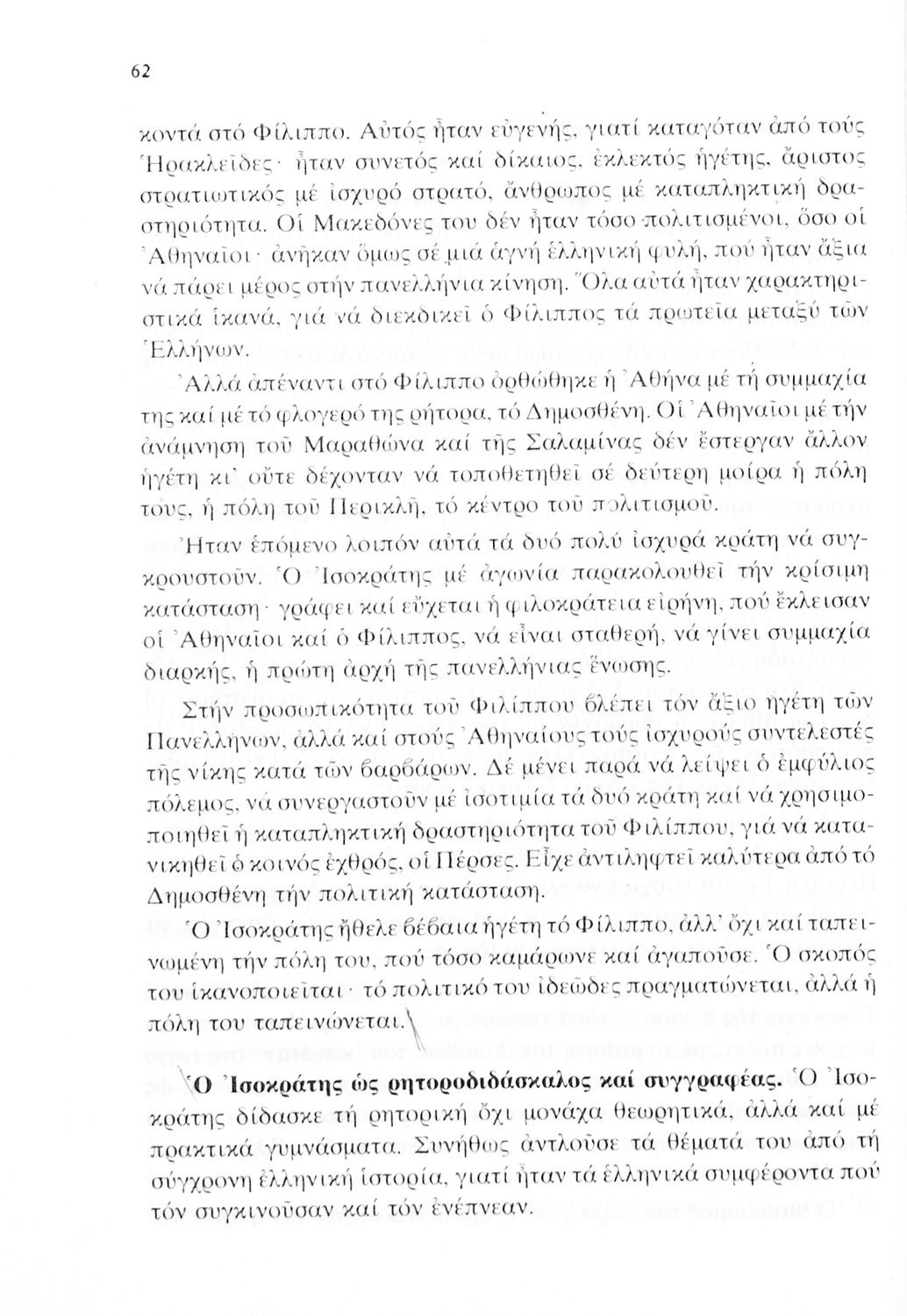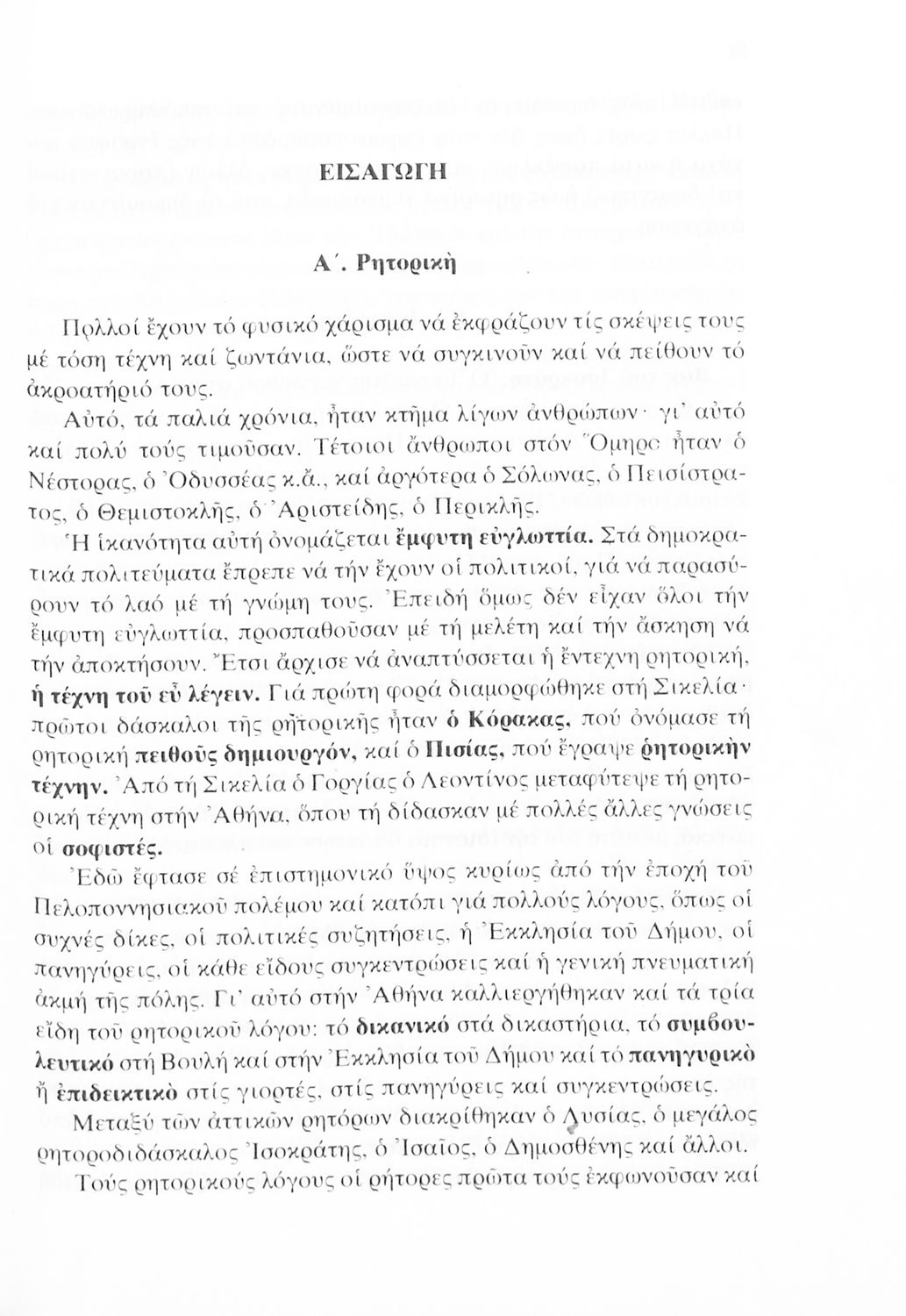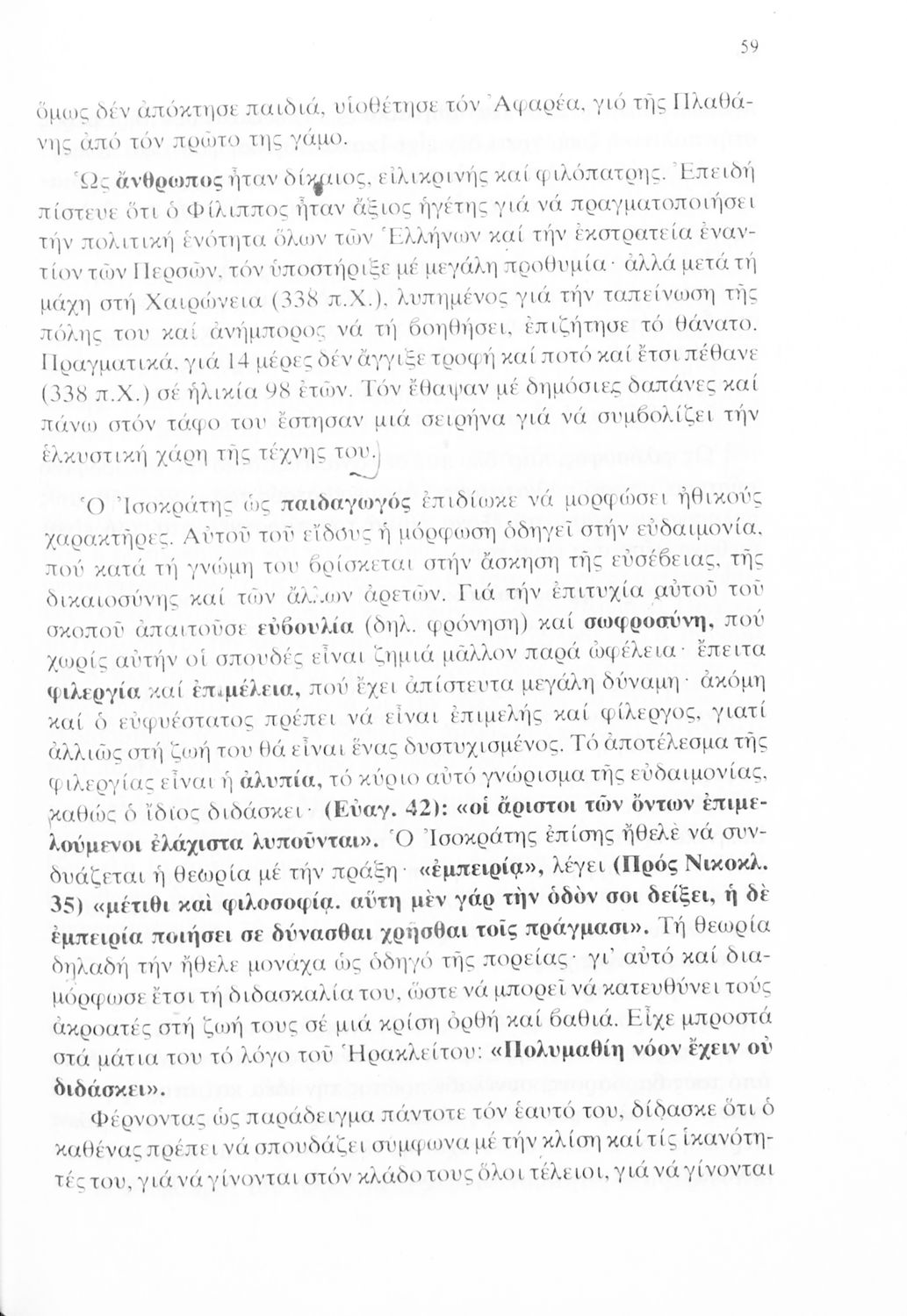 Σχολικό εγχειρίδιο Αρχαίων Ελληνικών Γ΄ Γυμνασίου που περιλαμβάνει εισαγωγή στη ζωή και το έργο του Ισοκράτη, τους Λόγους Προς Δημόνικον και Ευαγόρας και ερμηνευτικές σημειώσεις.