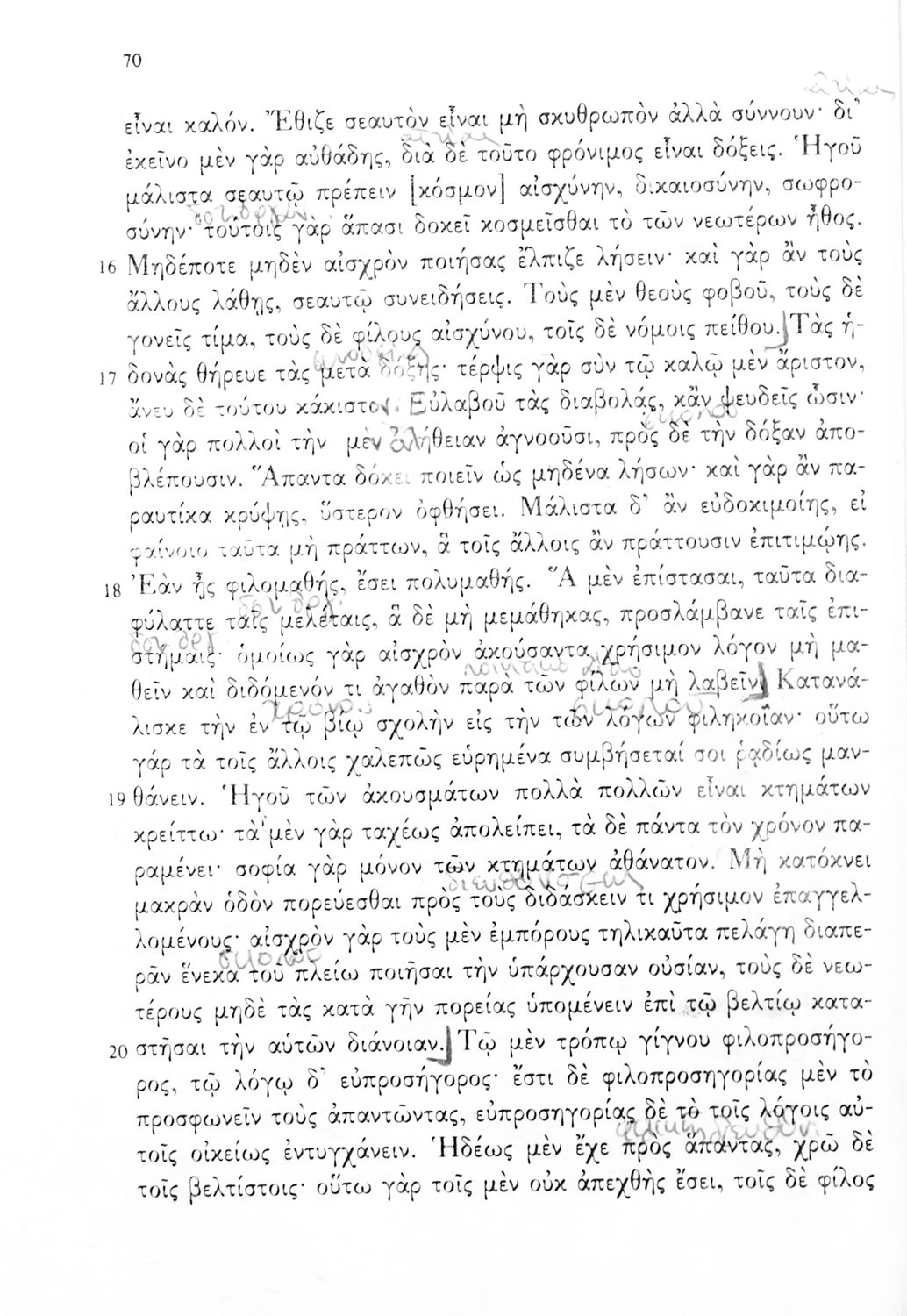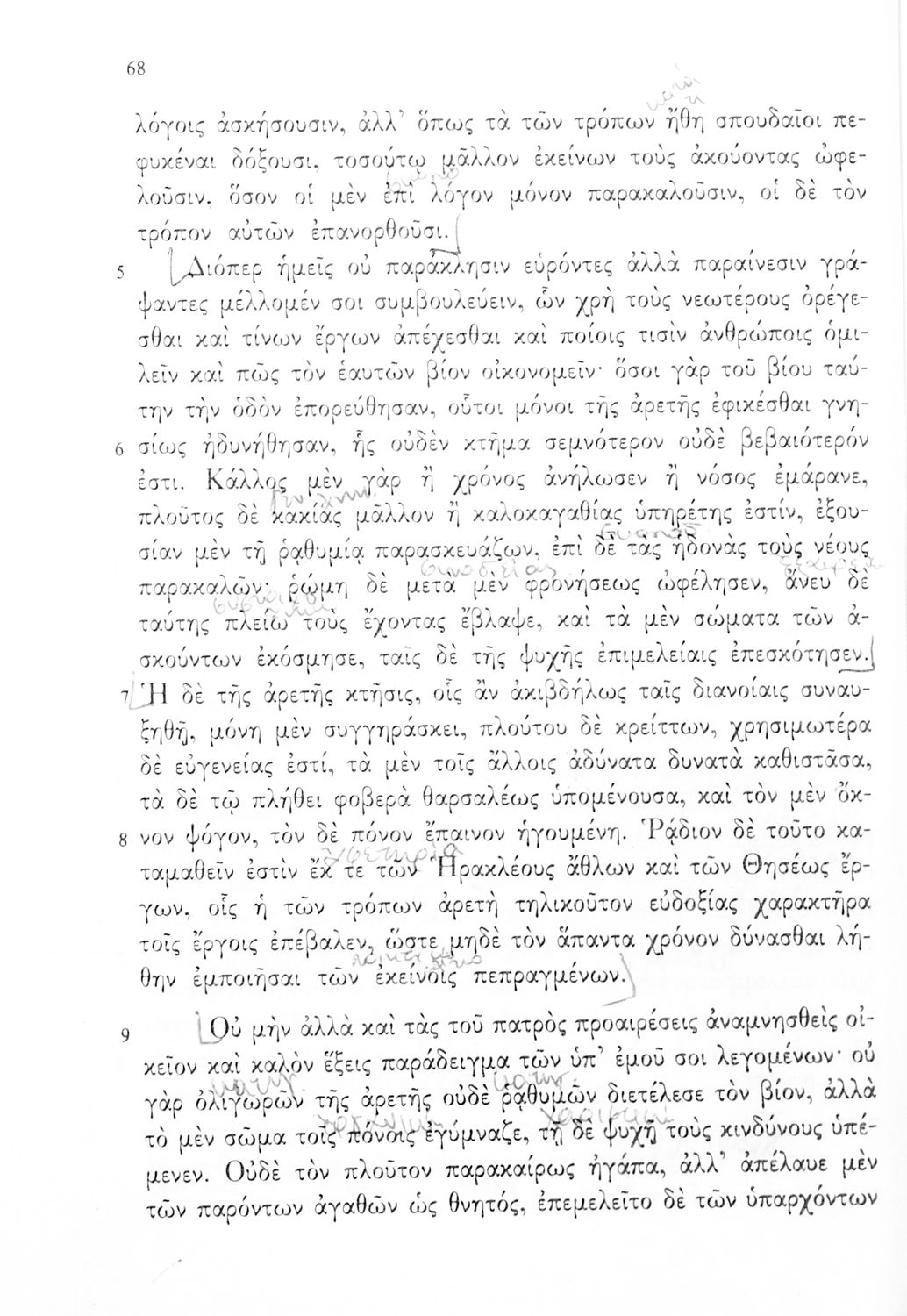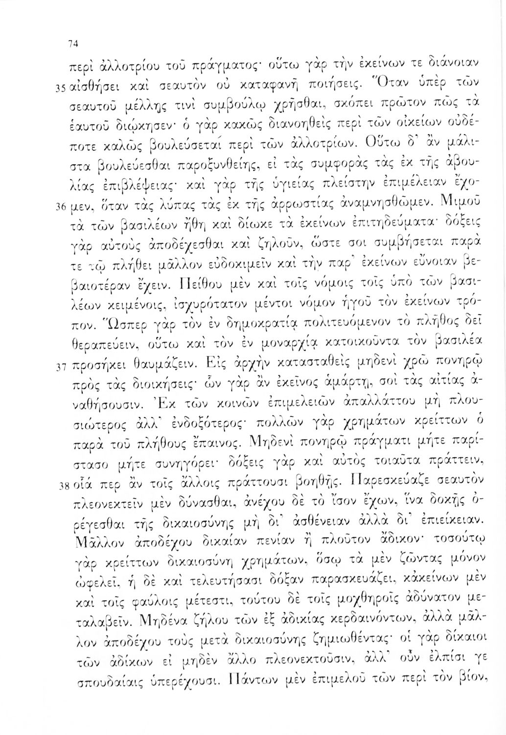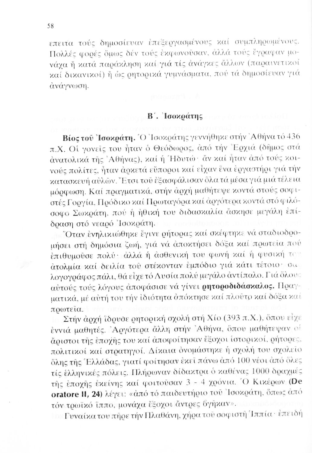 Σχολικό εγχειρίδιο Αρχαίων Ελληνικών Γ΄ Γυμνασίου που περιλαμβάνει εισαγωγή στη ζωή και το έργο του Ισοκράτη, τους Λόγους Προς Δημόνικον και Ευαγόρας και ερμηνευτικές σημειώσεις.