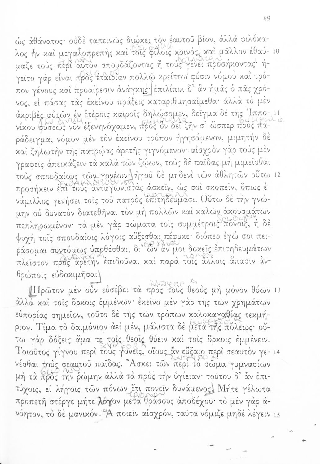 Βαθμίδα εκπαίδευσης: Δευτεροβάθμια Τάξη: Γ' Γυμνασίου Μάθημα: Αρχαία Ελληνικά Γλώσσα: Δημοτική Παρουσίαση περιεχομένου: Σχολικό εγχειρίδιο Αρχαίων Ελληνικών Γ΄ Γυμνασίου που περιλαμβάνει εισαγωγή στη ζωή και το έργο του Ισοκράτη, τους Λόγους Προς Δημόνικον και Ευαγόρας και ερμηνευτικές σημειώσεις. |