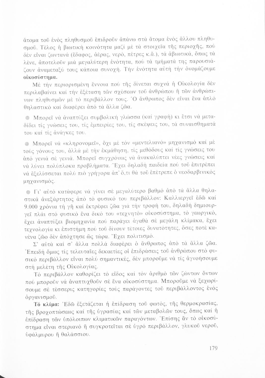 Σχολικό εγχειρίδιο Βιολογίας Γ΄ Γυμνασίου που εστιάζει στις συνθήκες γέννησης, μεταβολής και θανάτου των έμβιων οργανισμών. Περιέχει στοιχεία οικολογίας και λεξιλόγιο όρων.