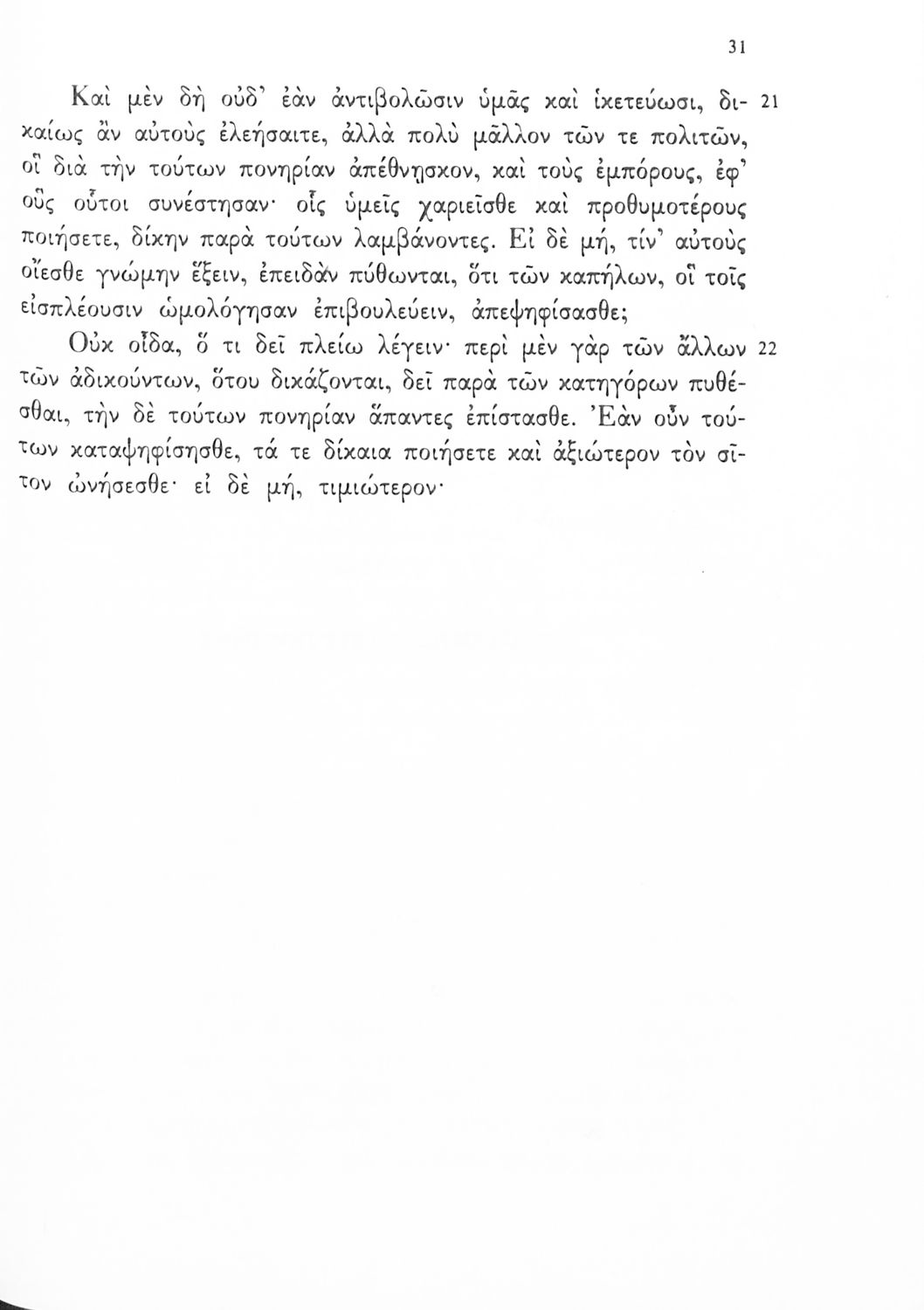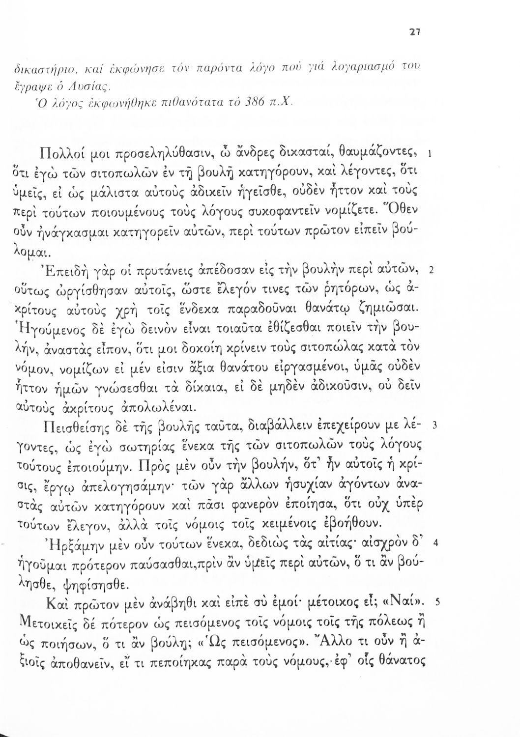 Σχολικό εγχειρίδιο Αρχαίων Ελληνικών Γ΄ Γυμνασίου που περιλαμβάνει τους Λόγους του Λυσία Περί του σηκού απολογία, Υπέρ του αδυνάτου, Κατά των σιτοπωλών και του Ισοκράτη Προς Δημόνικον, Προς Νικοκλέα και Ευαγόρας, εισαγωγή στους Λόγους και ερμηνευτικά σχόλια.