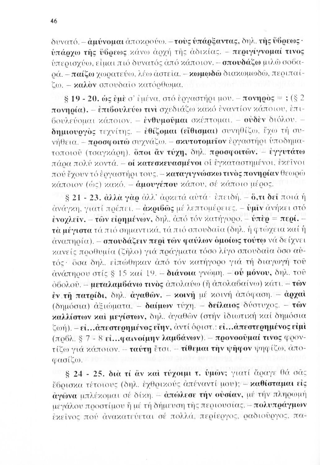 Σχολικό εγχειρίδιο της Γ΄ Γυμνασίου για τα Αρχαία Ελληνικά. Περιλαμβάνει Λόγους του Λυσία, Υπέρ Μαντιθέου, Κατά Εργοκλέους, Περί του σηκού απολογία, Υπέρ του αδυνάτου, Κατά των σιτοπωλών και ερμηνευτικές, ...