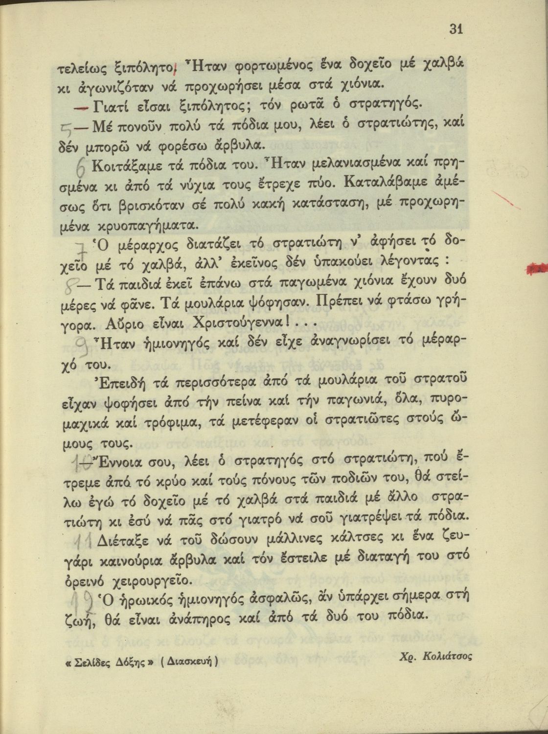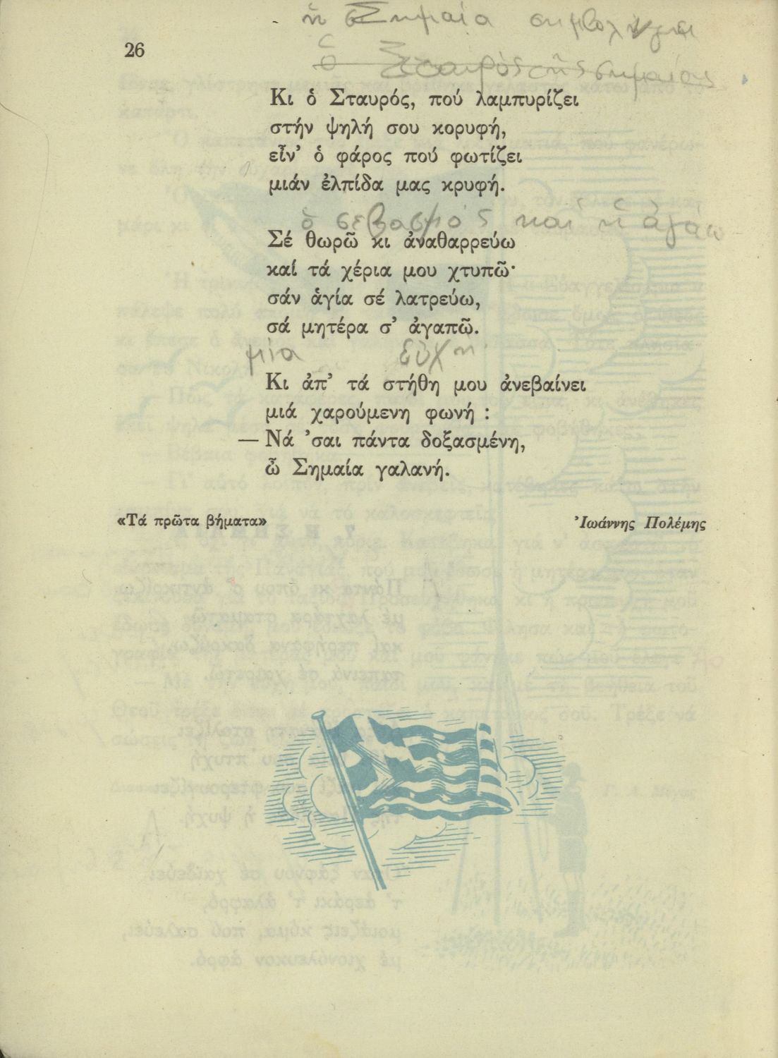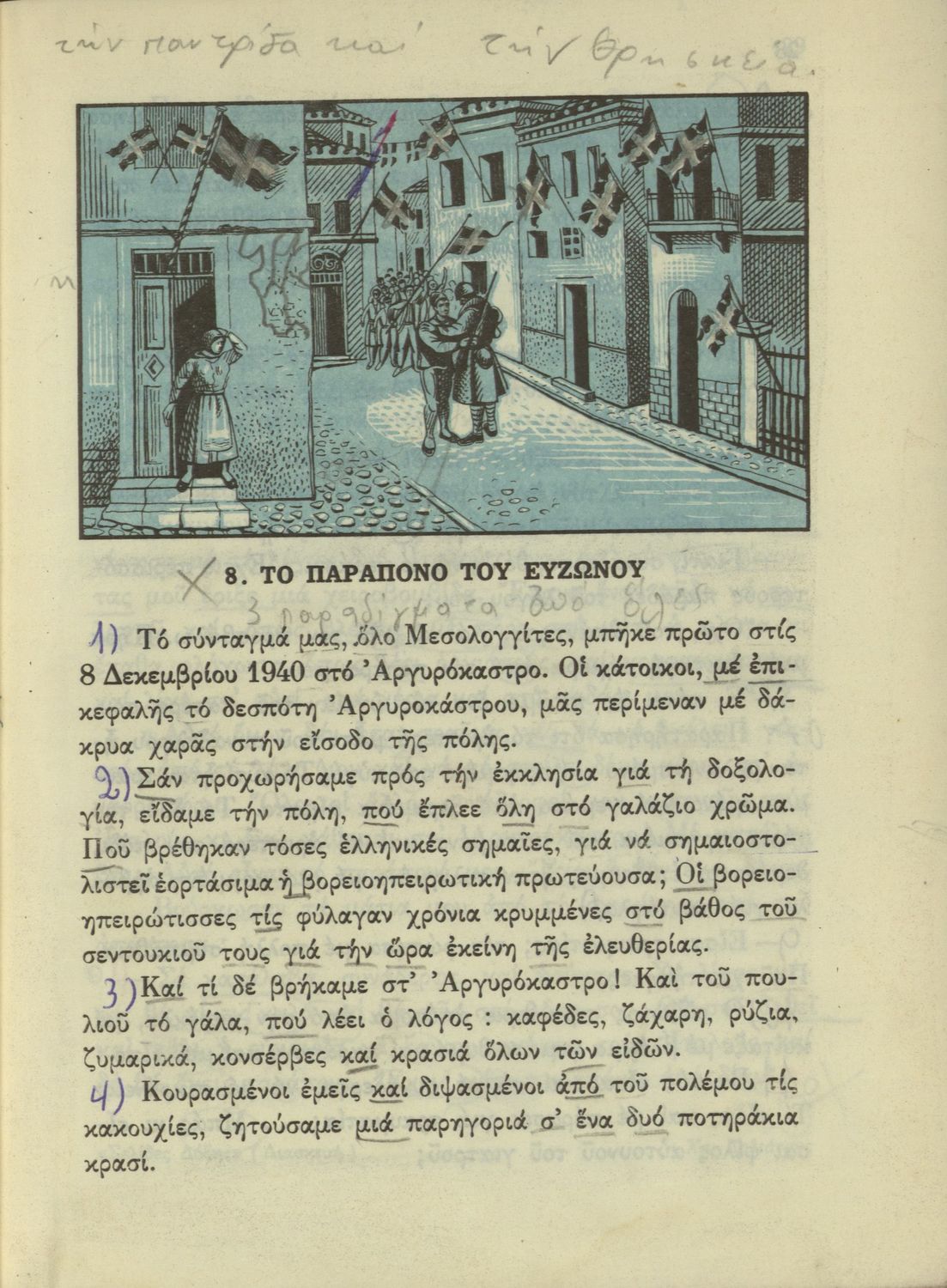 520 ## _aΑναγνωστικό Δ' Δημοτικού που είναι χωρισμένο σύμφωνα με τις εποχές του χρόνου και περιλαμβάνει κείμενα εμπνευσμένα από τη θρησκευτική, εθνική, κοινωνική και οικογενειακή ζωή και την ελληνική ιστορία και μυθολογία.