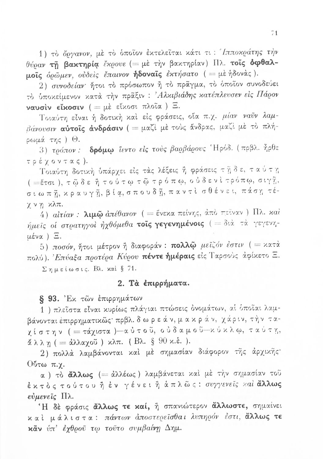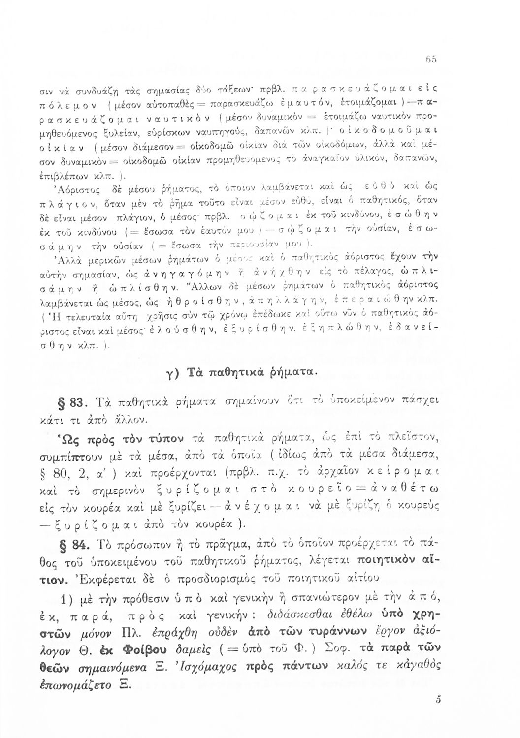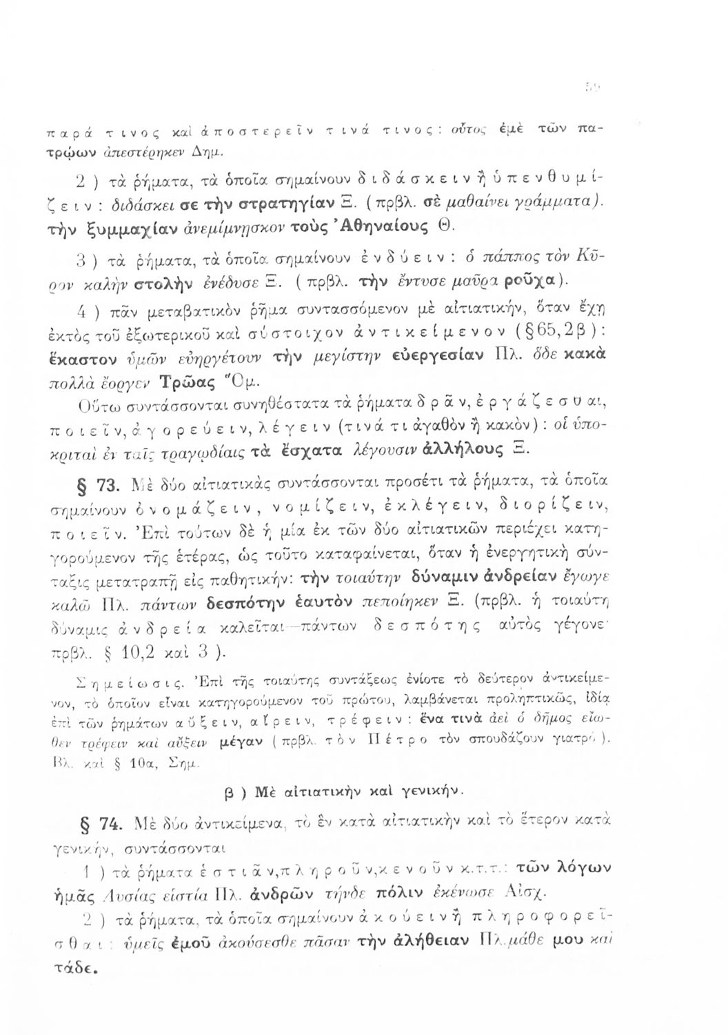 Σχολικό εγχειρίδιο Αρχαίων Ελληνικών Γ΄ Γυμνασίου και Α΄ Λυκείου που εξετάζει τα μέρη του λόγου και την σύνταξή τους.
