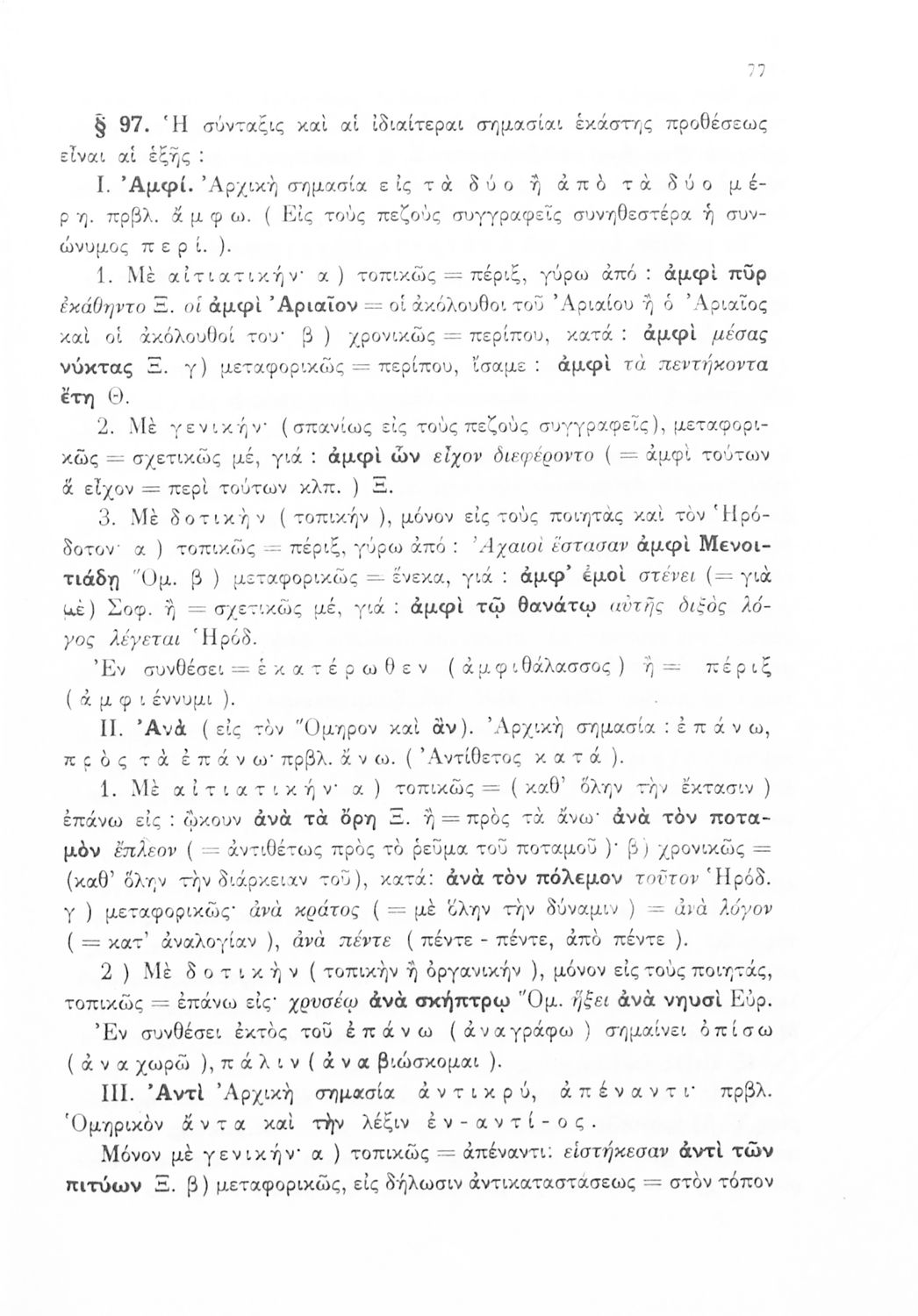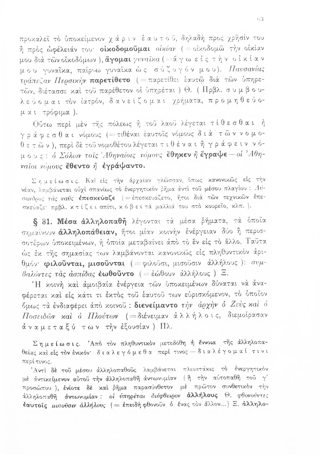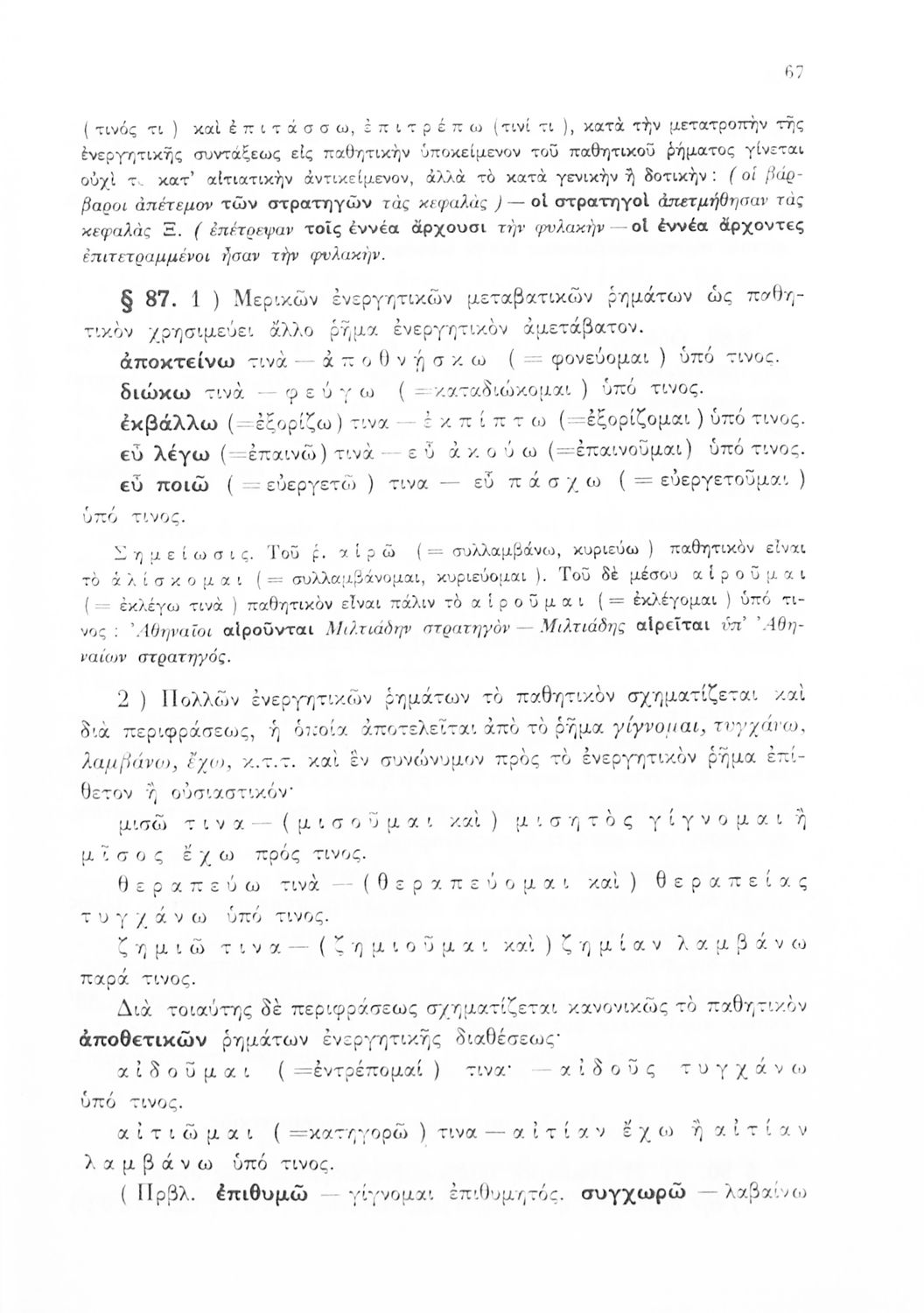 Σχολικό εγχειρίδιο Αρχαίων Ελληνικών Γ΄ Γυμνασίου και Α΄ Λυκείου που εξετάζει τα μέρη του λόγου και την σύνταξή τους.