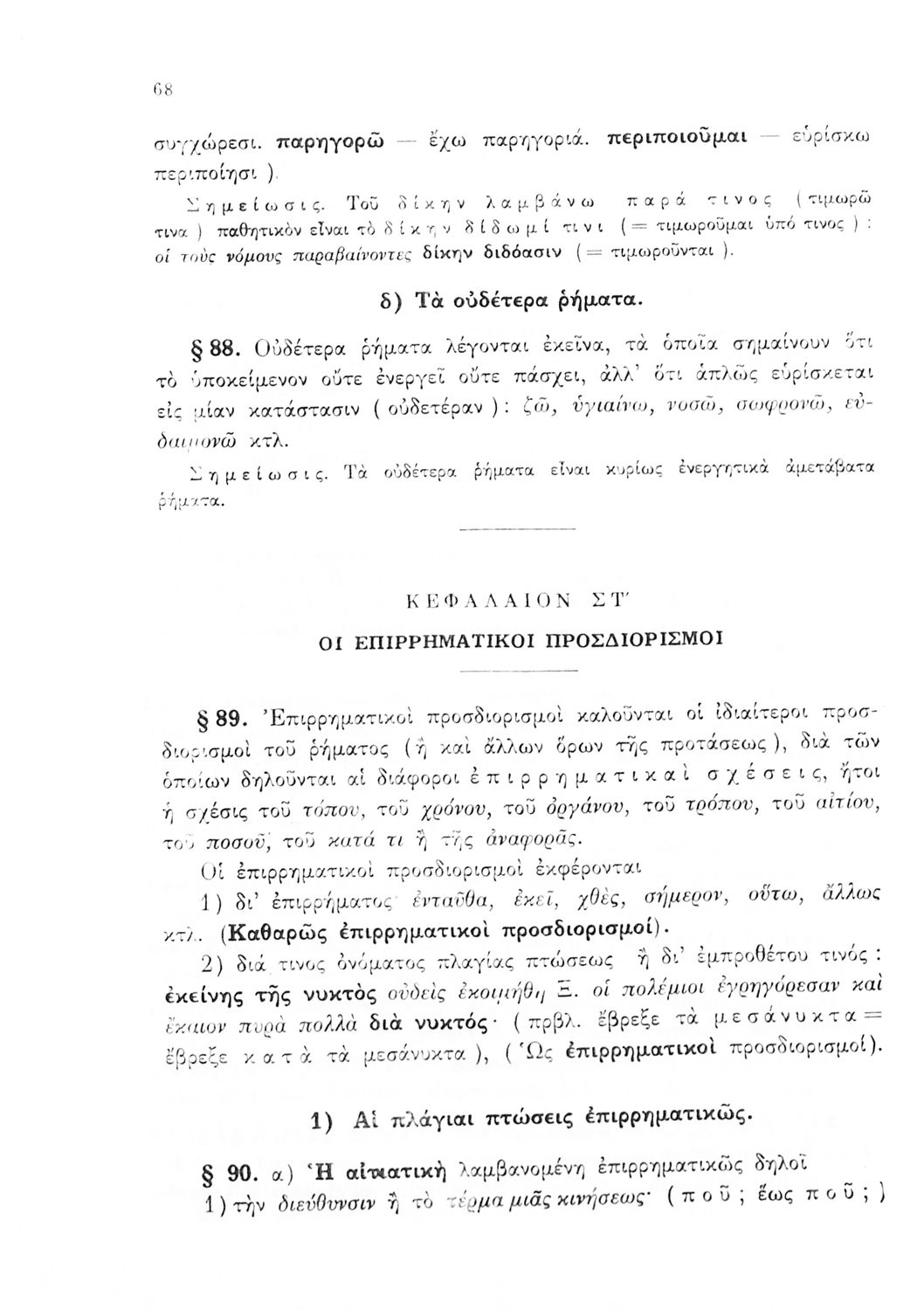 Κωδικός αναγνώρισης: 02-00451 Τίτλος: Συντακτικόν της αρχαίας ελληνικής γλώσσης, Γ΄ Γυμνασίου και Α΄ Λυκείου Συγγραφέας: Αχιλλέας Α. Τζάρτζανος Μέγεθος και υπόστρωμα: Σχολικό εγχειρίδιο, μαλακό εξώφυλλο, 184 σελίδες. |