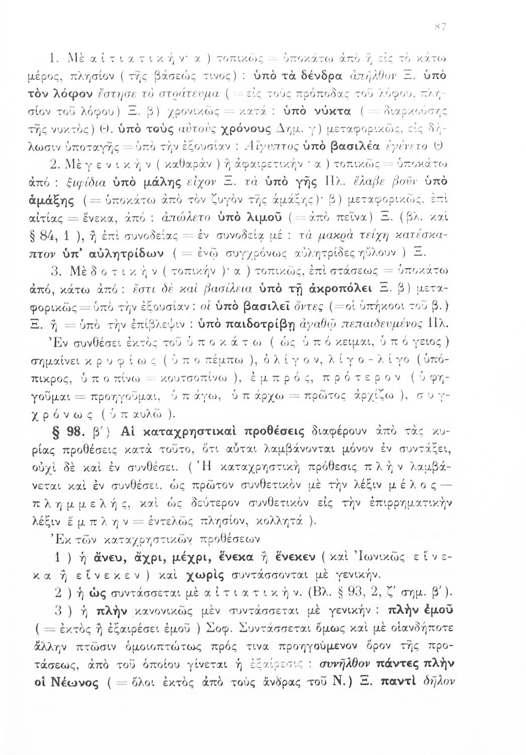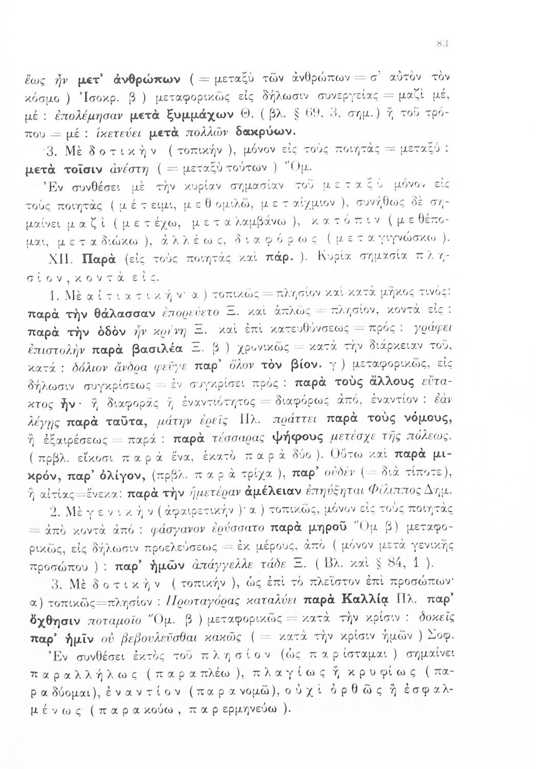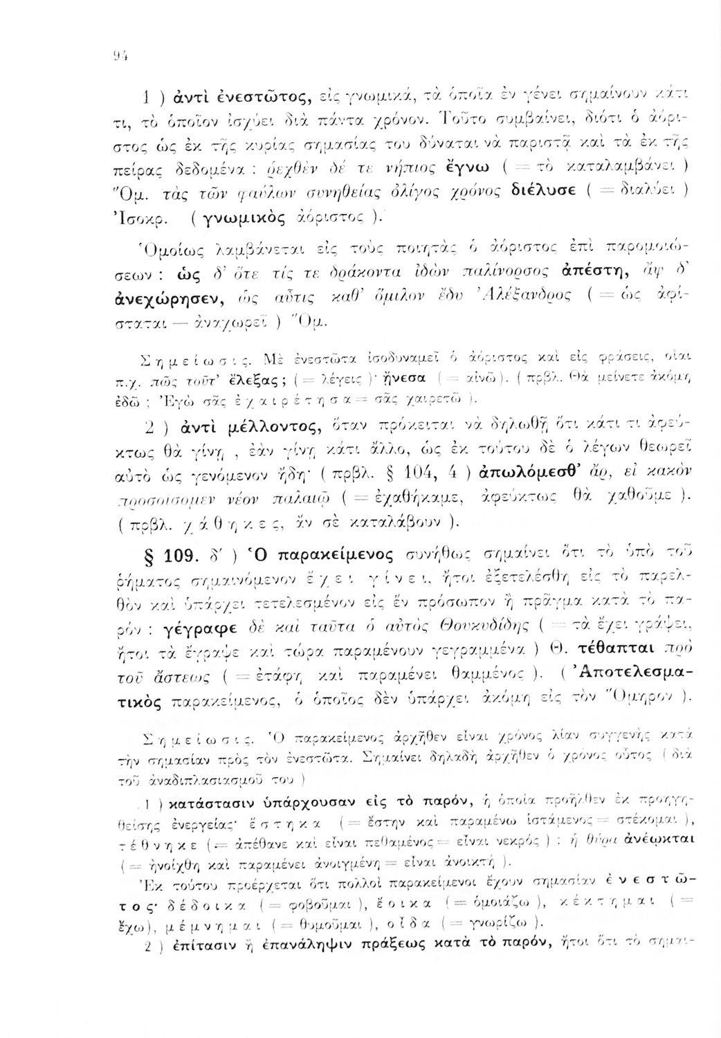 Σχολικό εγχειρίδιο Αρχαίων Ελληνικών Γ΄ Γυμνασίου και Α΄ Λυκείου που εξετάζει τα μέρη του λόγου και την σύνταξή τους.