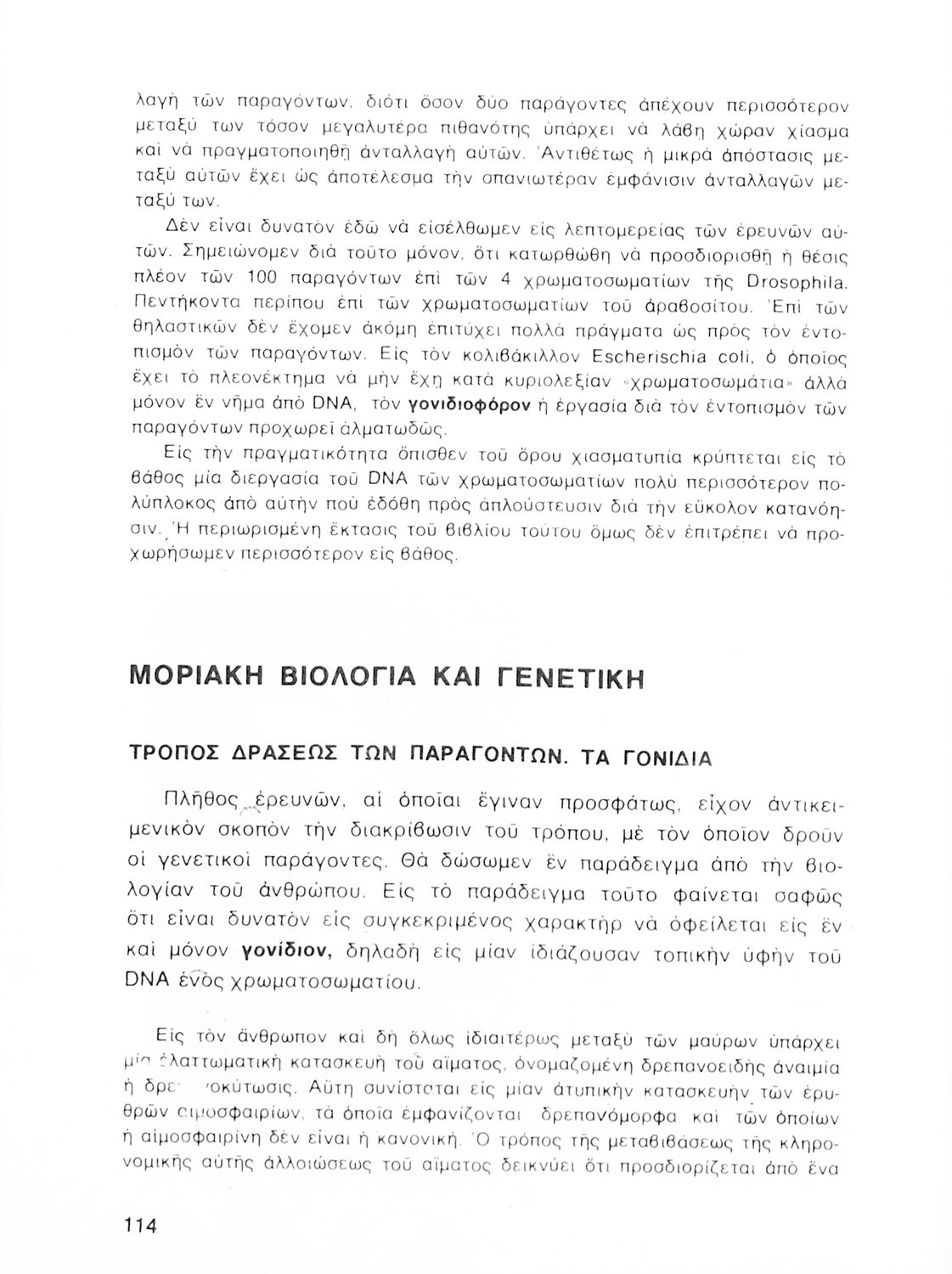 Σχολικό εγχειρίδιο Βιολογίας ΣΤ΄ Γυμνασίου που εστιάζει στις συνθήκες γέννησης, μεταβολής και θανάτου των έμβιων οργανισμών. Φέρει το σύμβολο της δικτατορίας. Ο συγγραφέας ήταν υφηγητής του Πανεπιστημίου ...