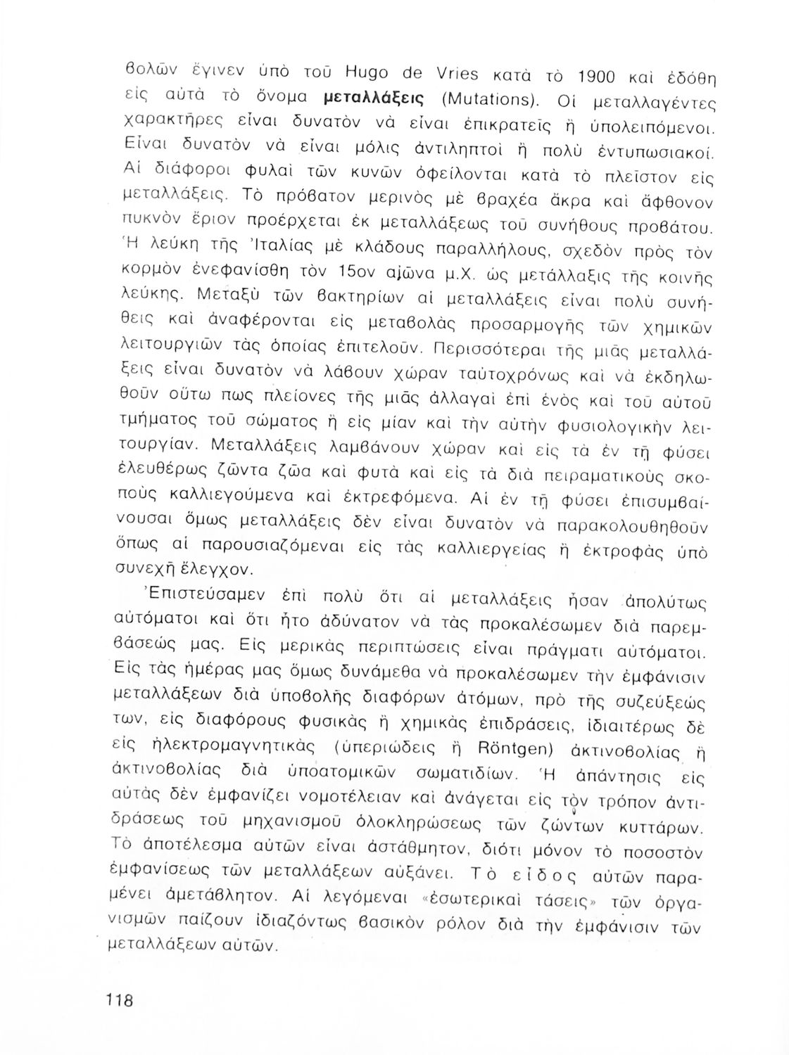 Σχολικό εγχειρίδιο Βιολογίας Δ΄ Γυμνασίου που εστιάζει στις συνθήκες γέννησης, μεταβολής και θανάτου των έμβιων οργανισμών. Ο συγγραφέας ήταν καθηγητής της γενικής Βιολογίας στο Πανεπιστήμιο Αθηνών.